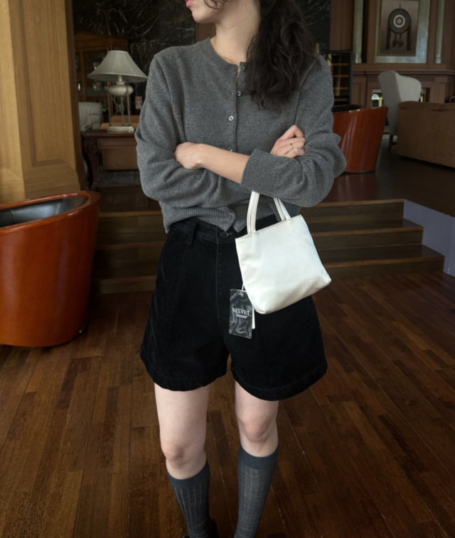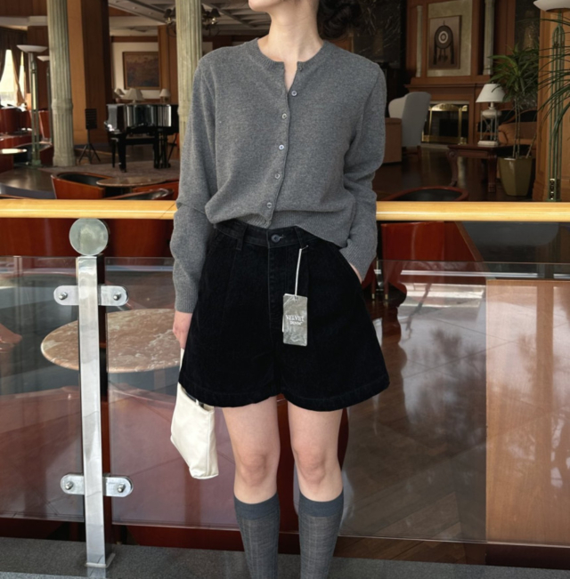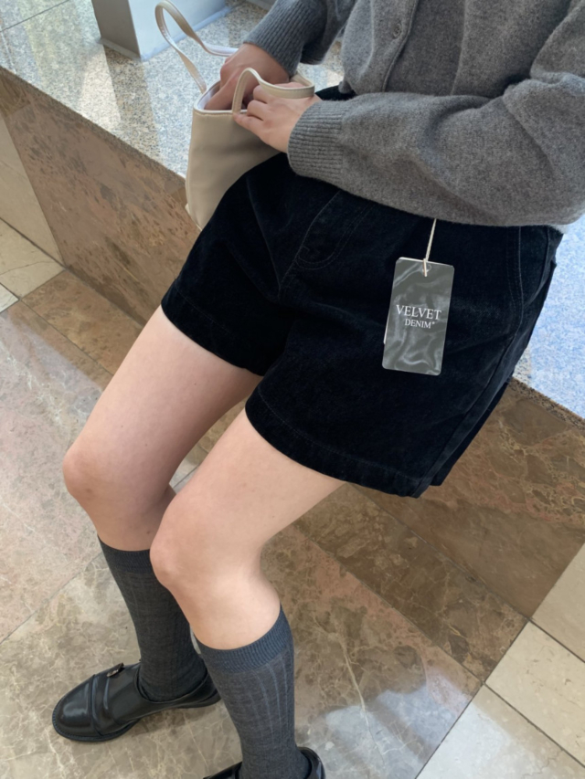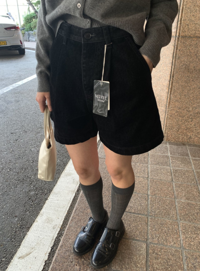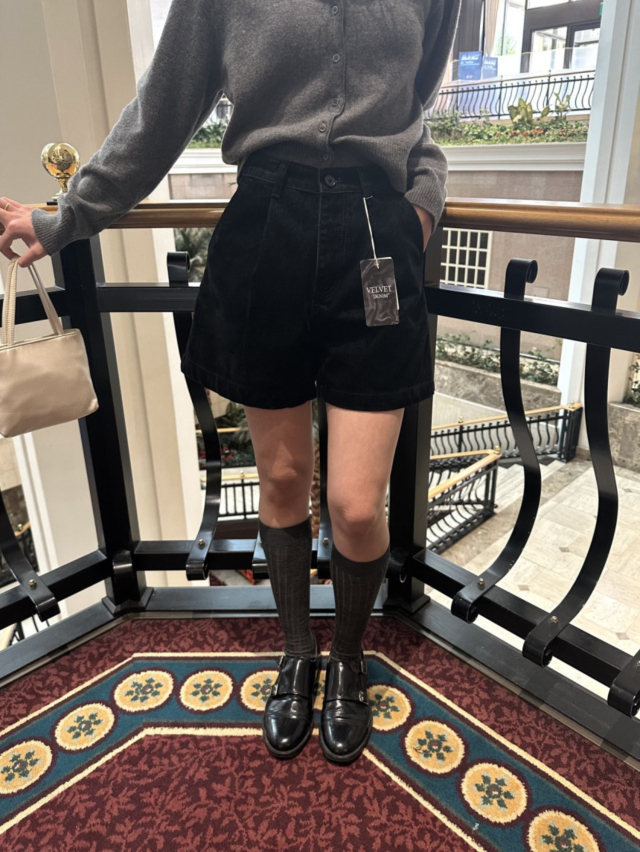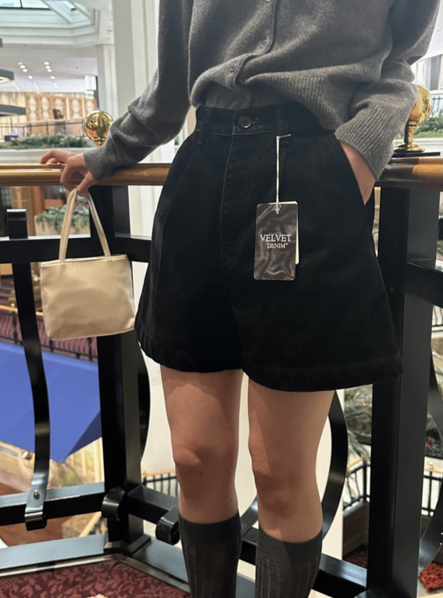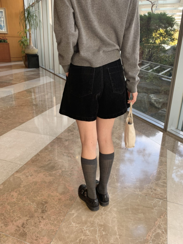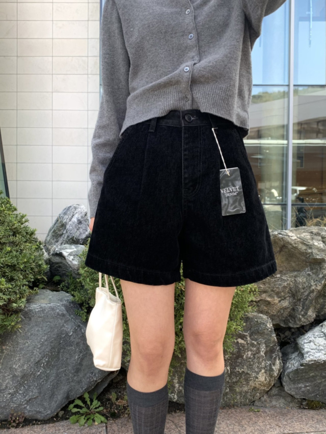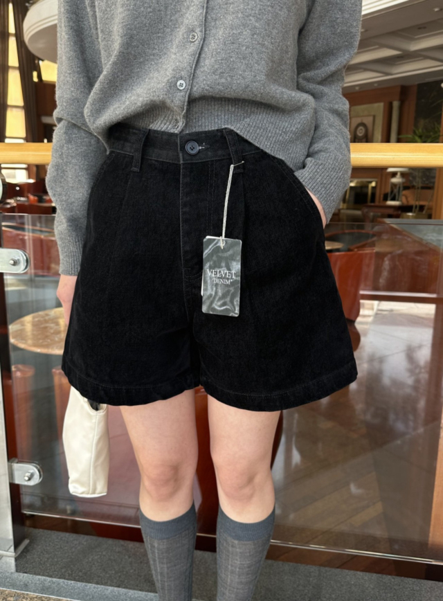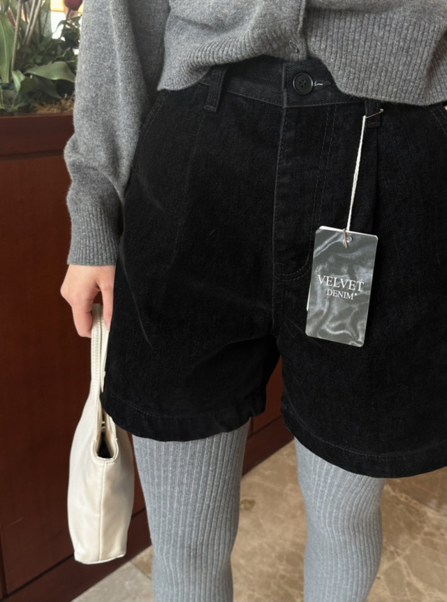 ベルベッド裏起毛ワイドデニムパンツ