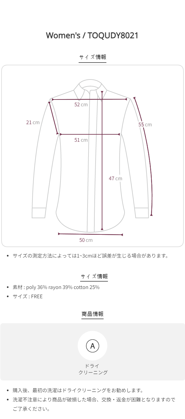 ニット類の場合、他の素材より誤差が生じる場合があります。