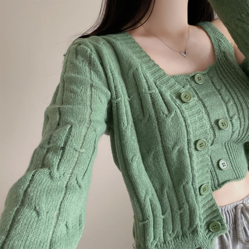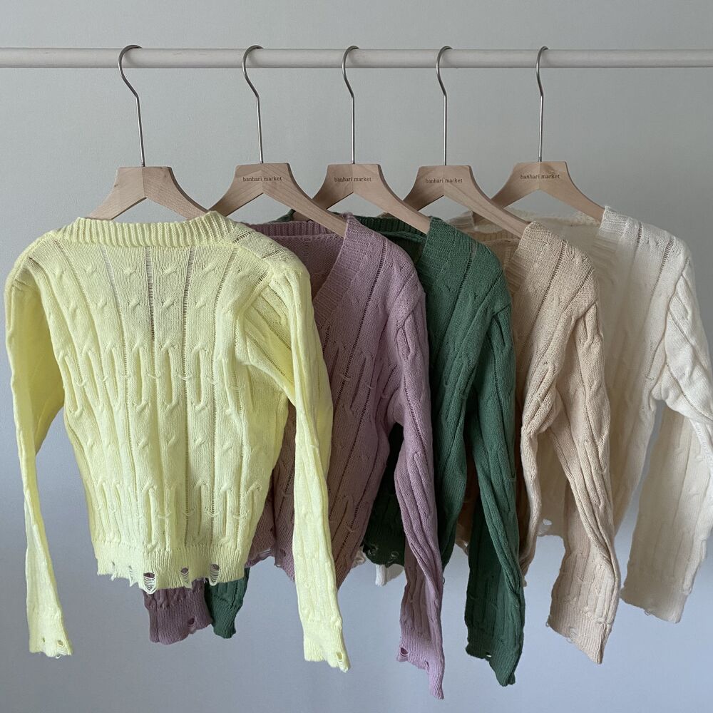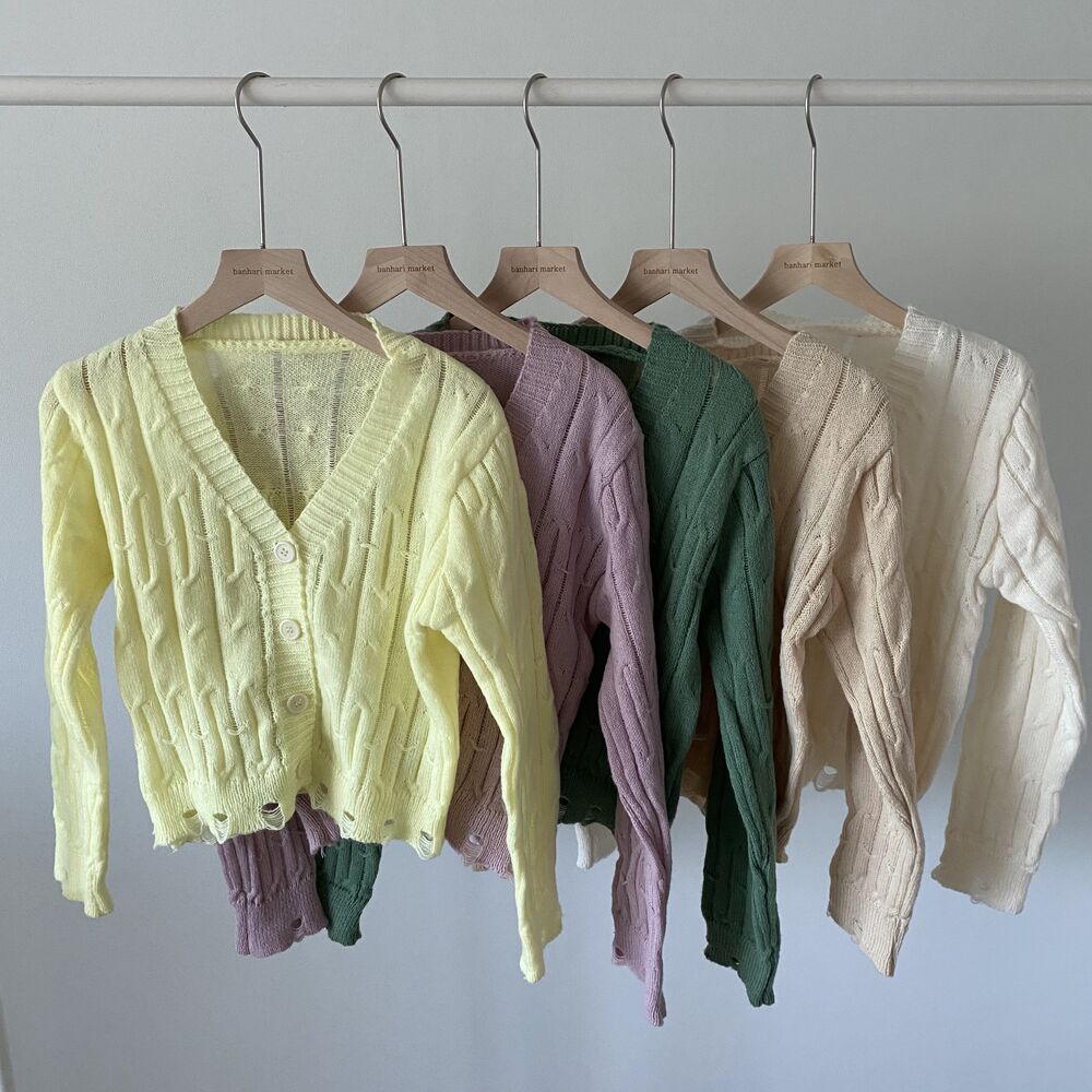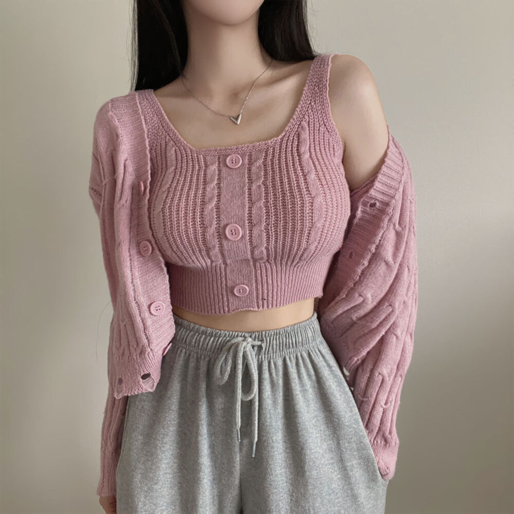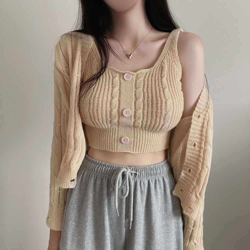 (SET)クロップドダメージニットキャミソール+カーディガン