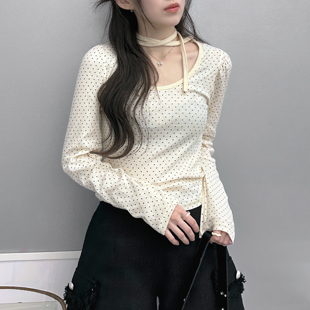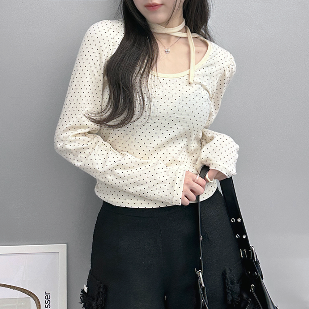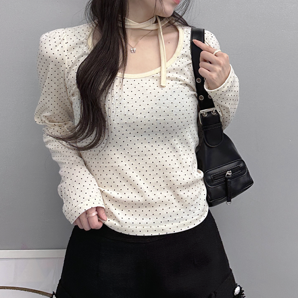 ドットリボンパフシャーリングTシャツ
