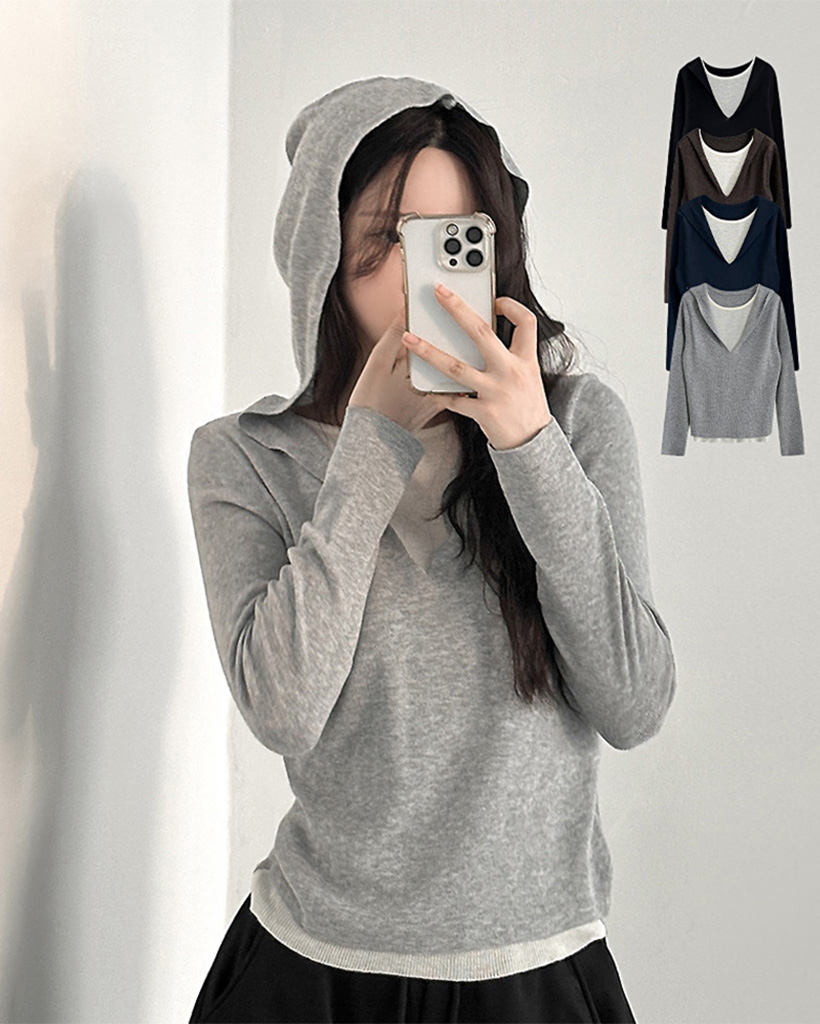 (4color) レイヤード フード ニット