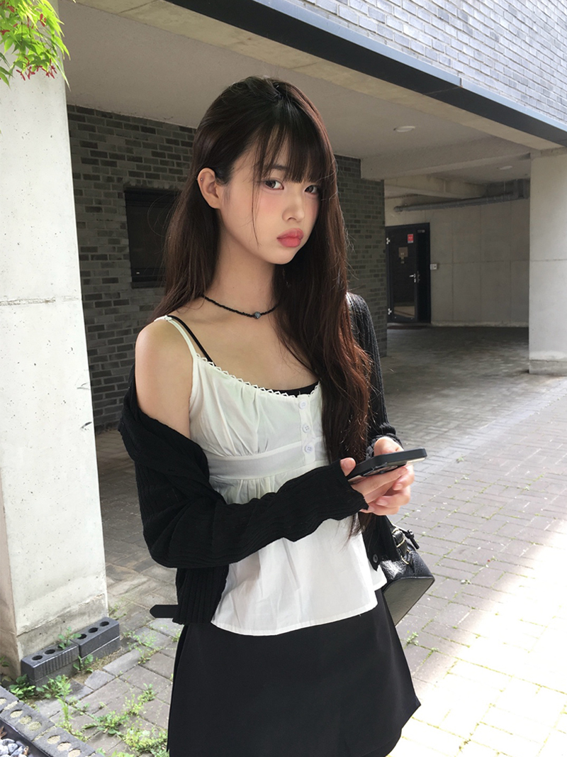 レースネックバックリボンシャーリングボタンキャミブラウス