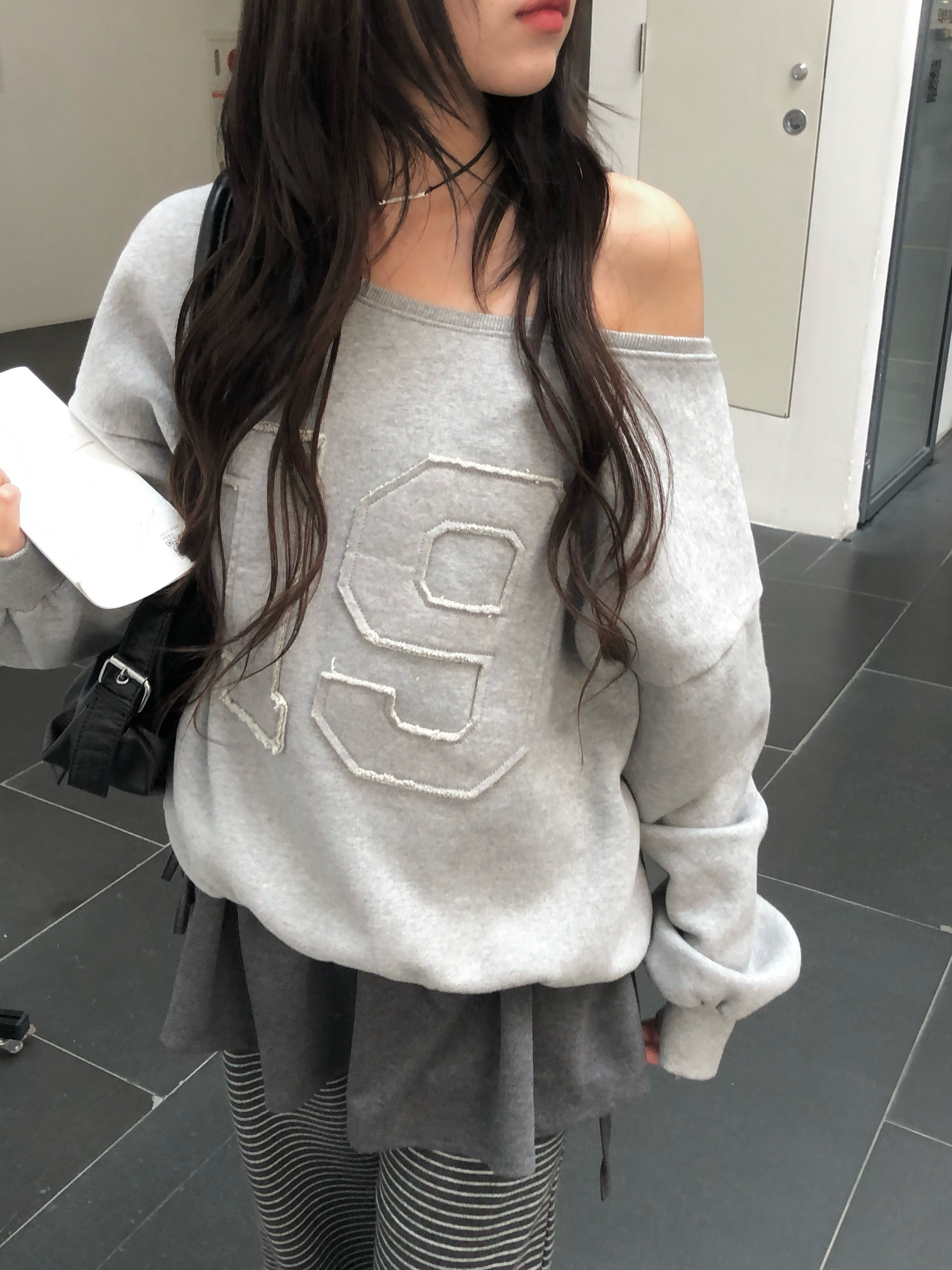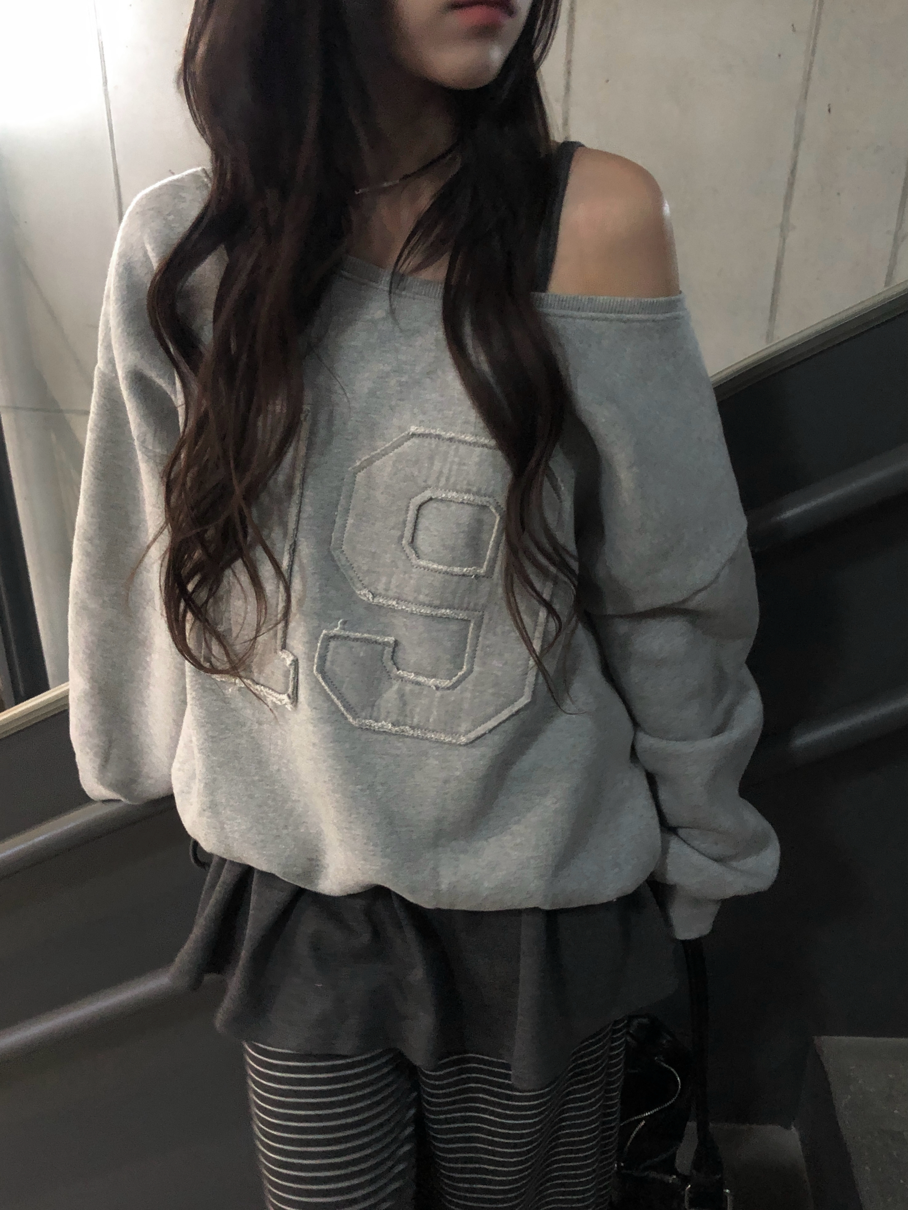ナンバーパッチワンショルダー裏起毛スウェット