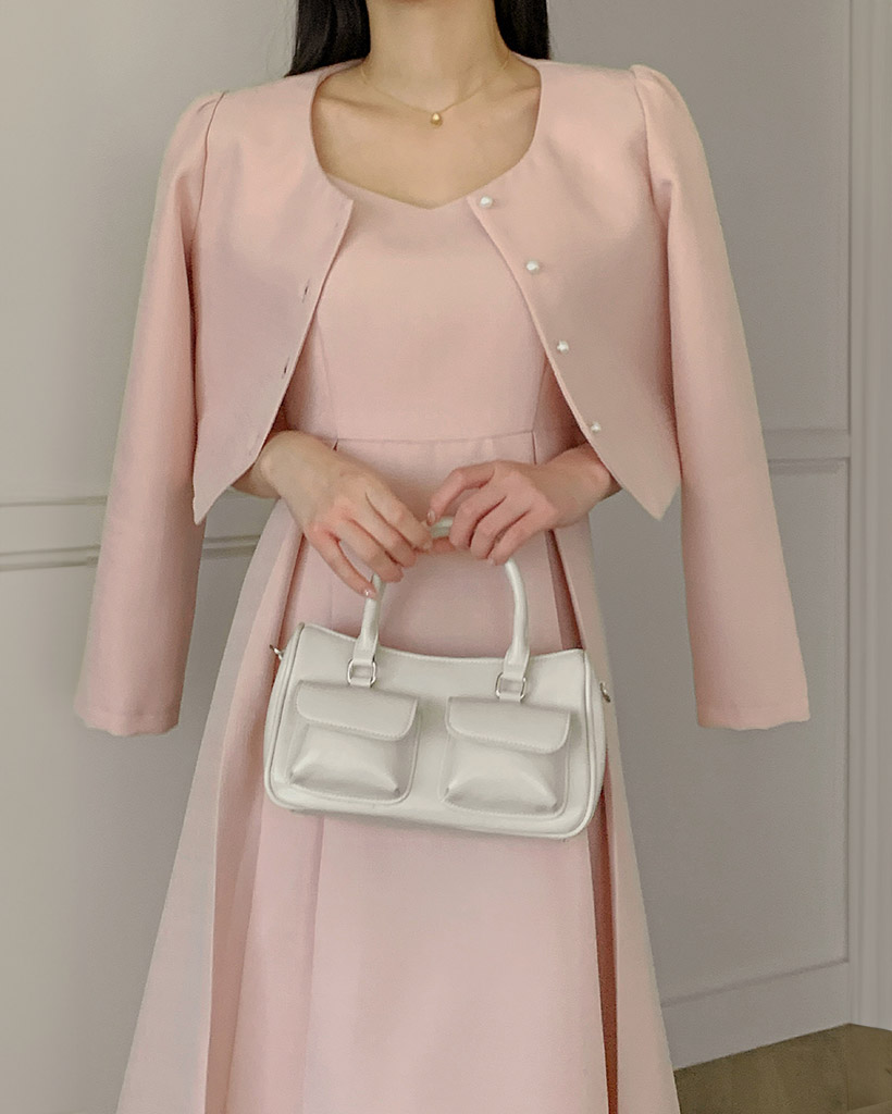 【オケージョン】ツイードジャケット&プリーツロングビスチェツーピースセット