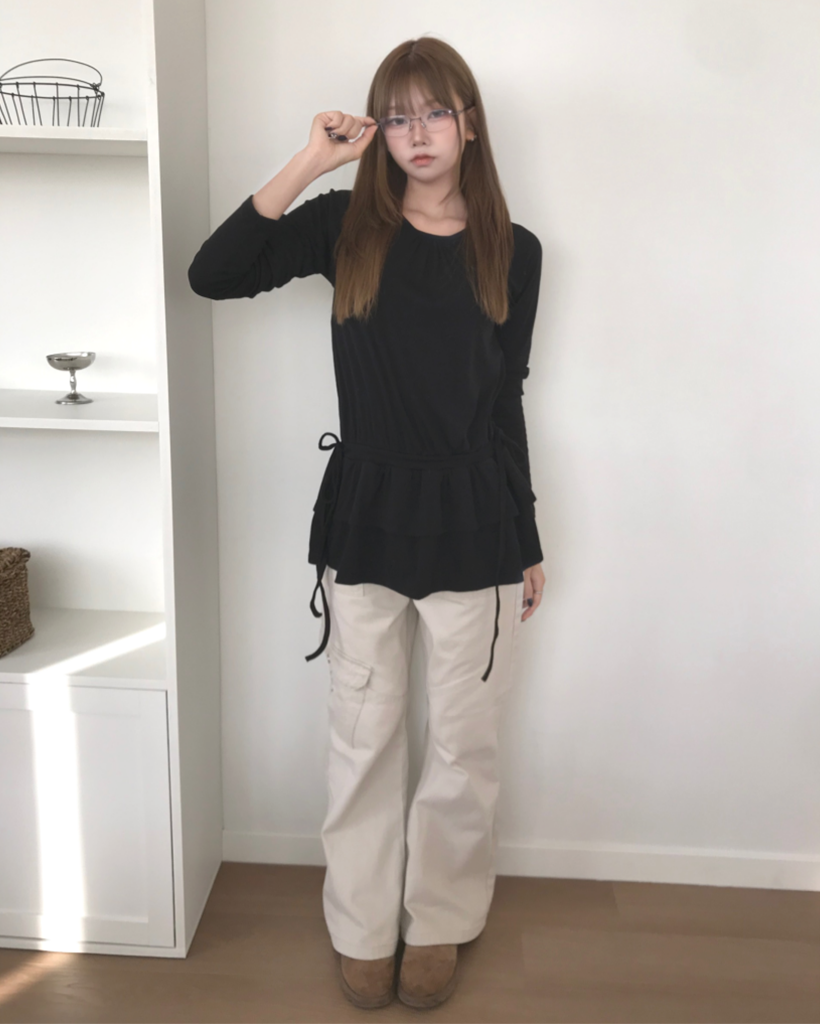 フリル レイヤード 長袖 Tシャツ (3色)