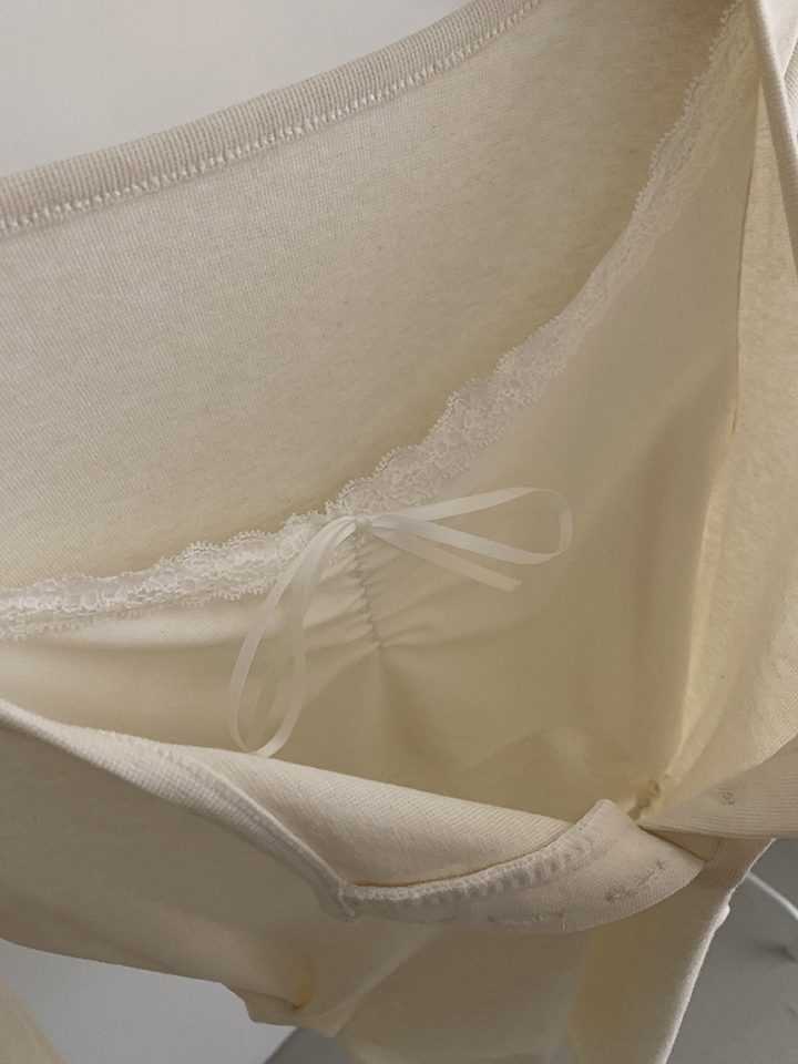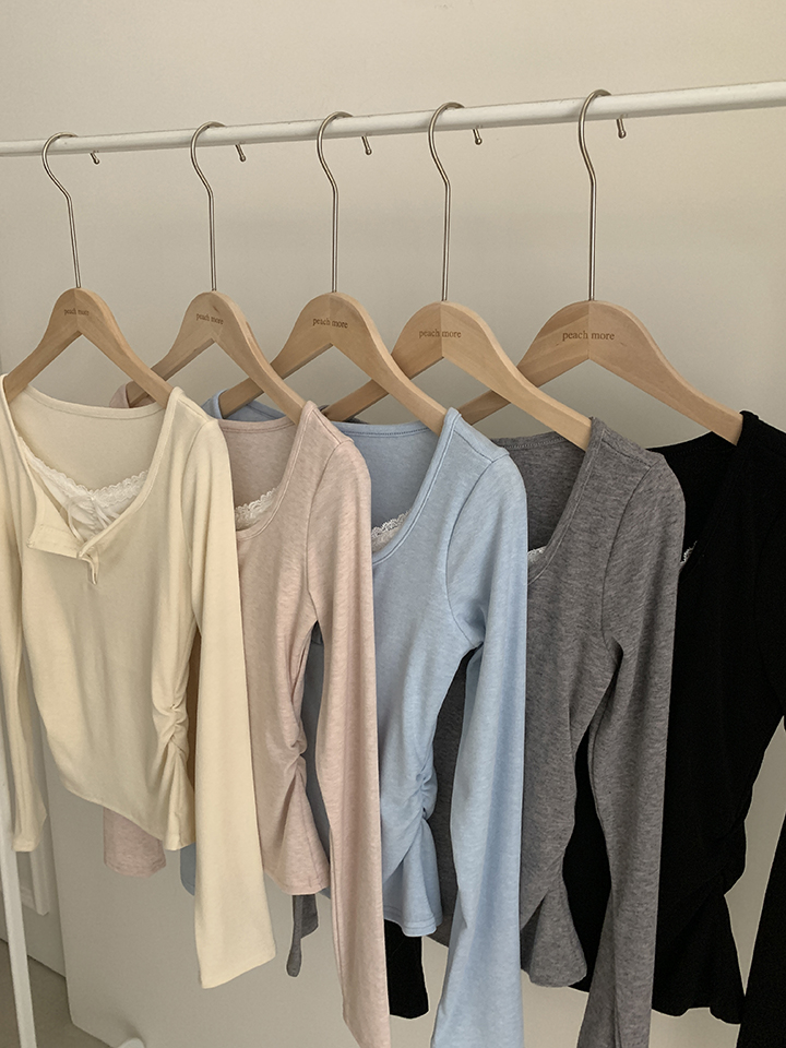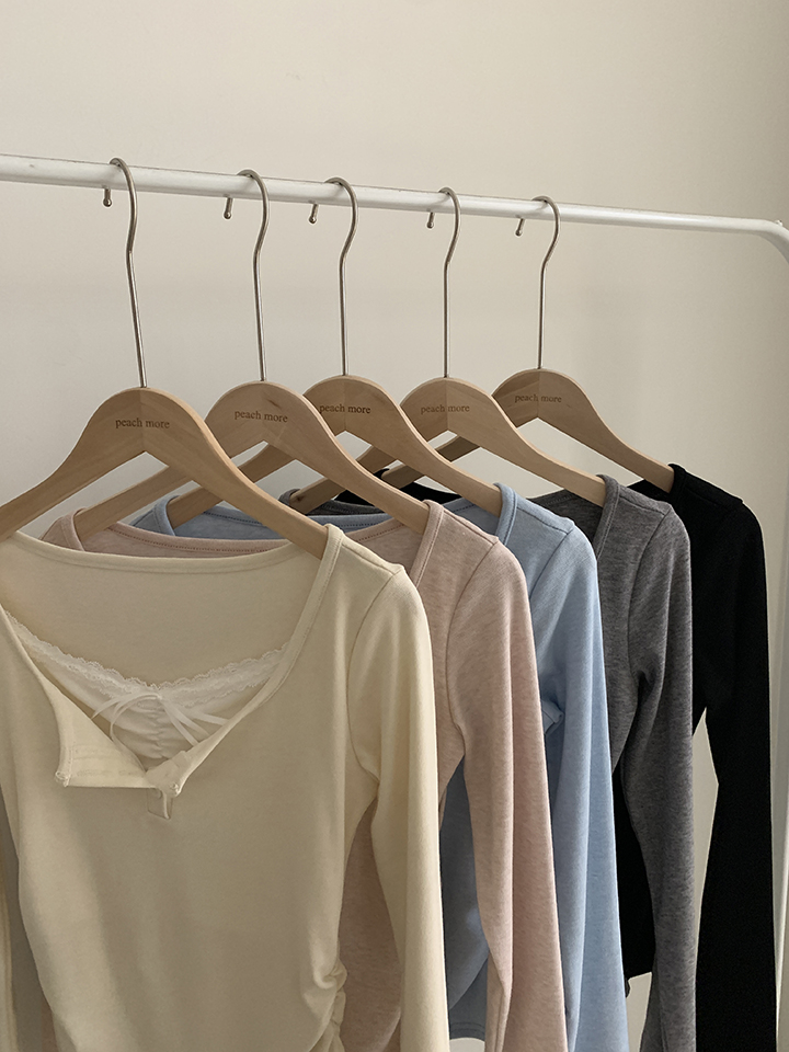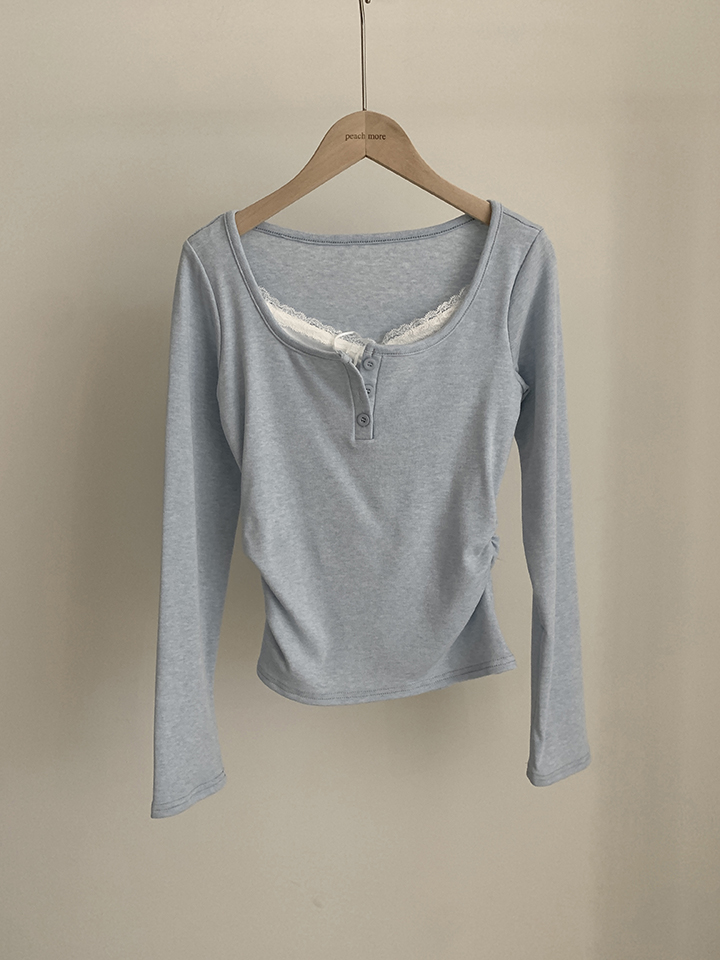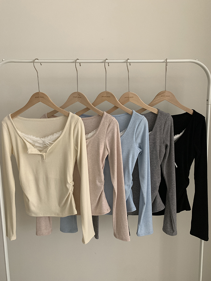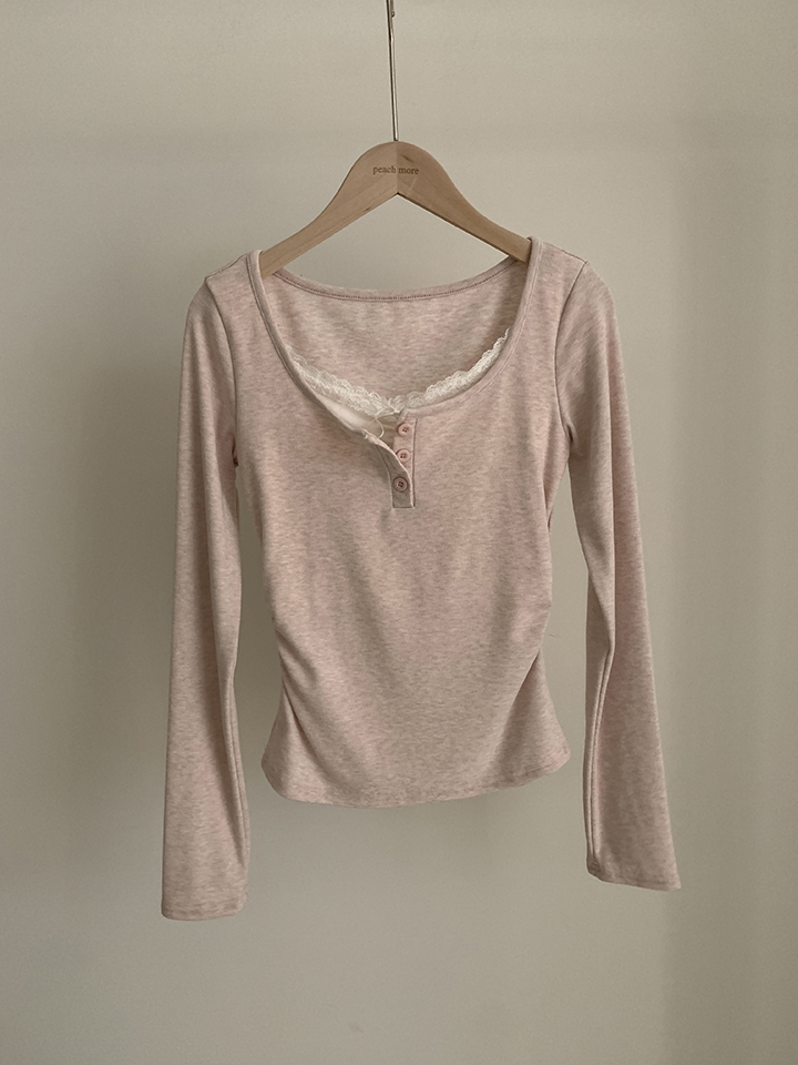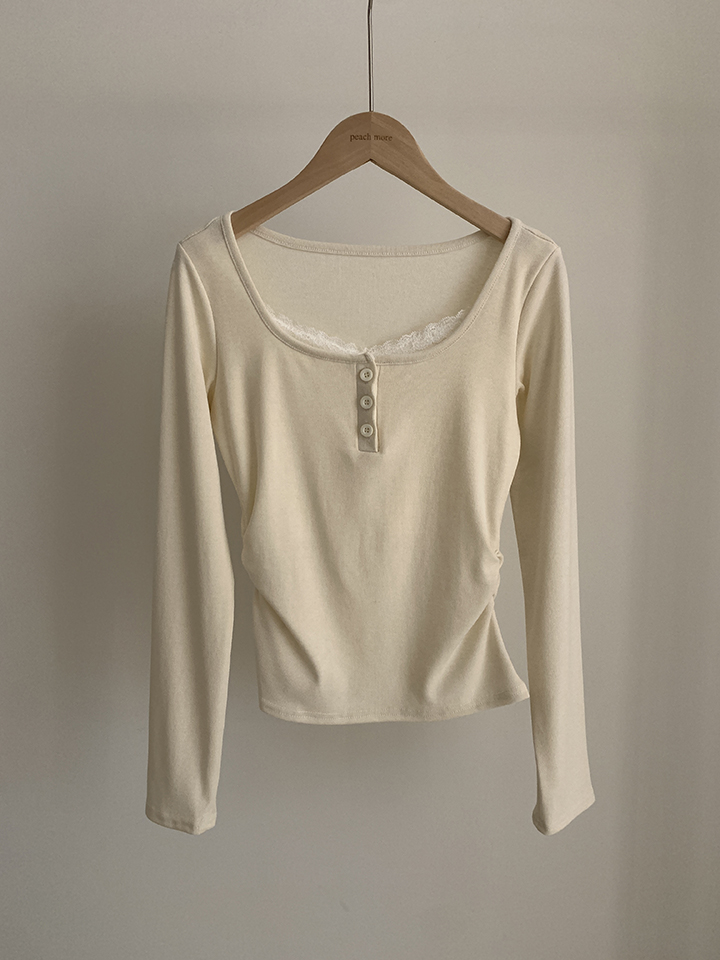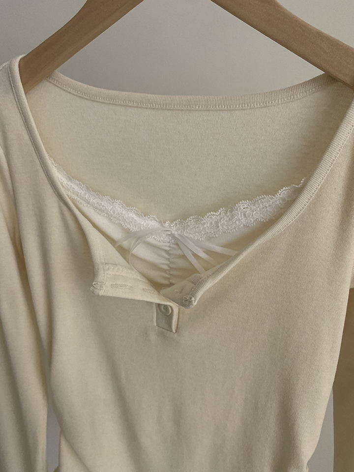 (一体型)レースキャミソールレイヤード風フロントボタンTシャツ