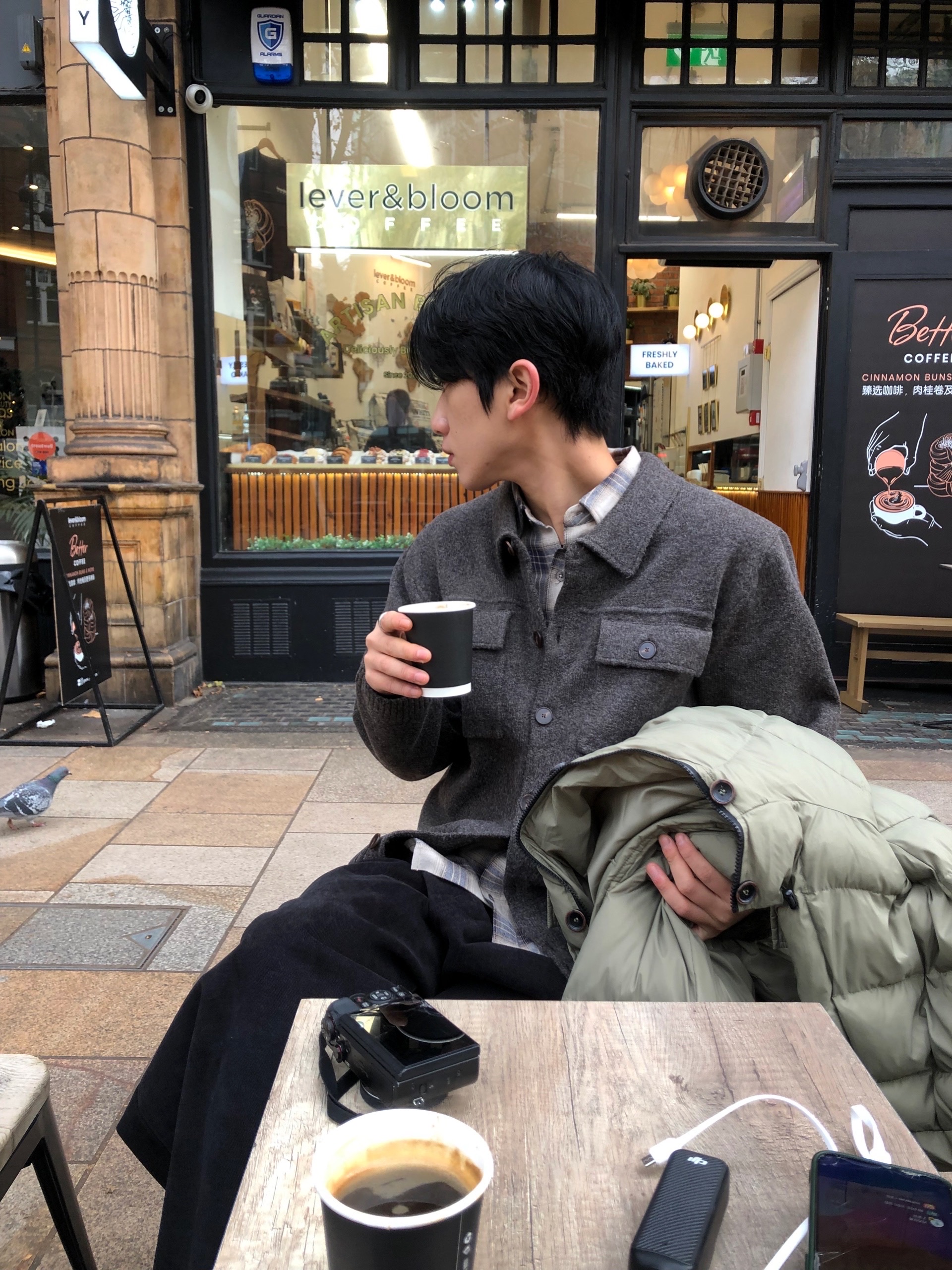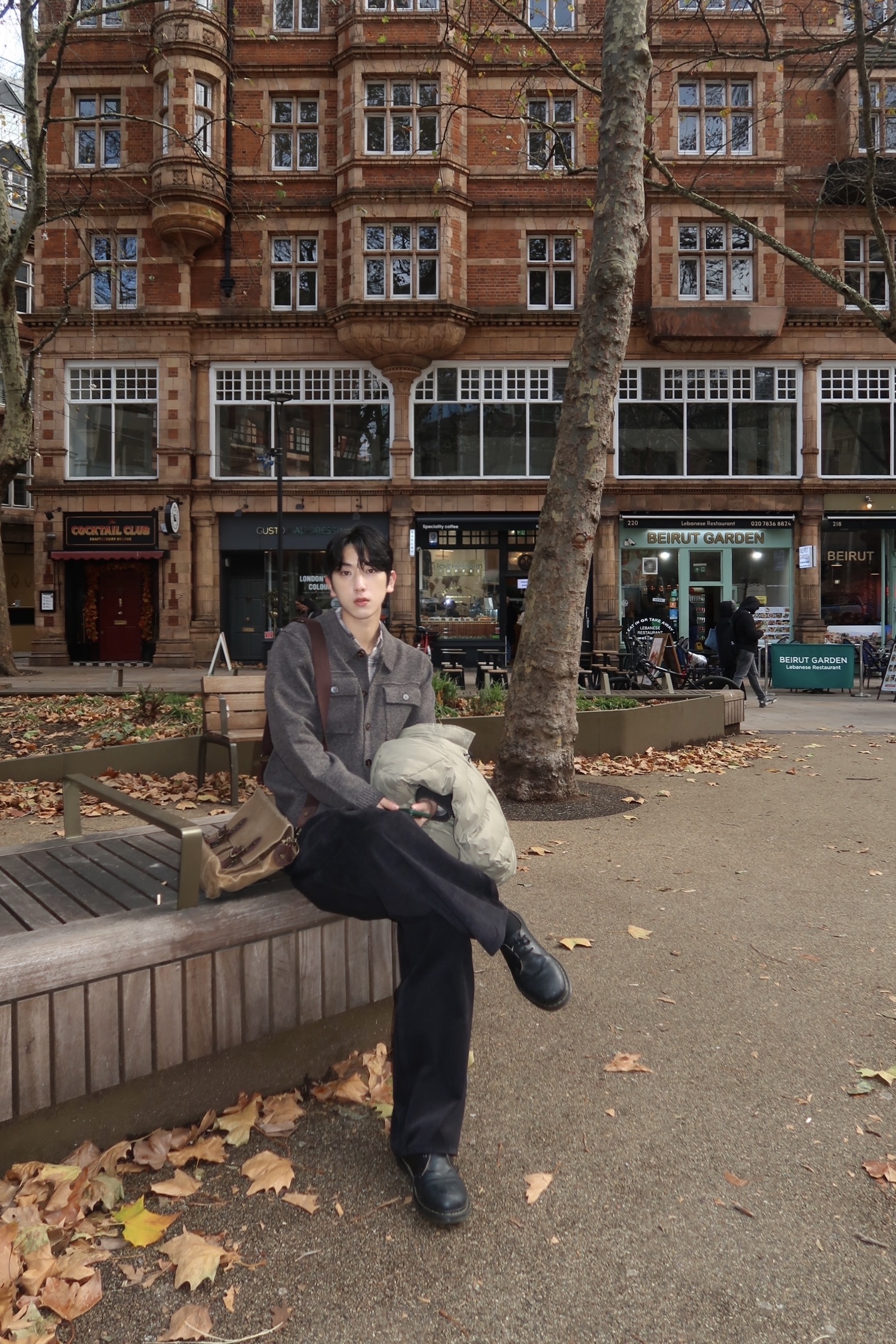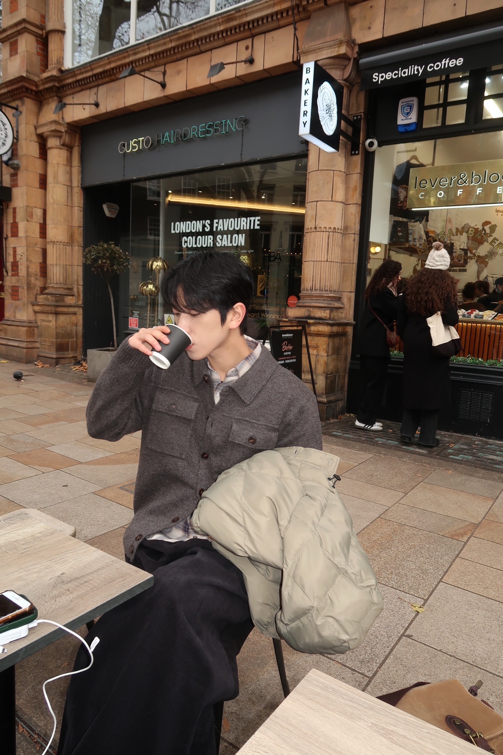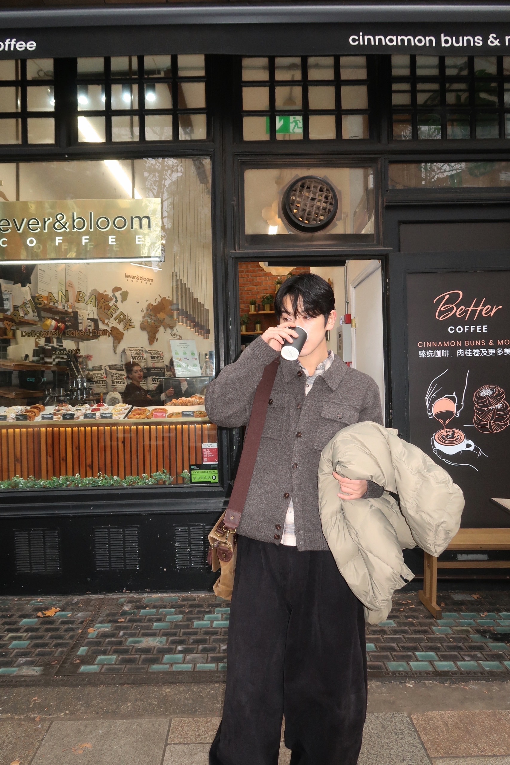 charcoal, beige, brown, black