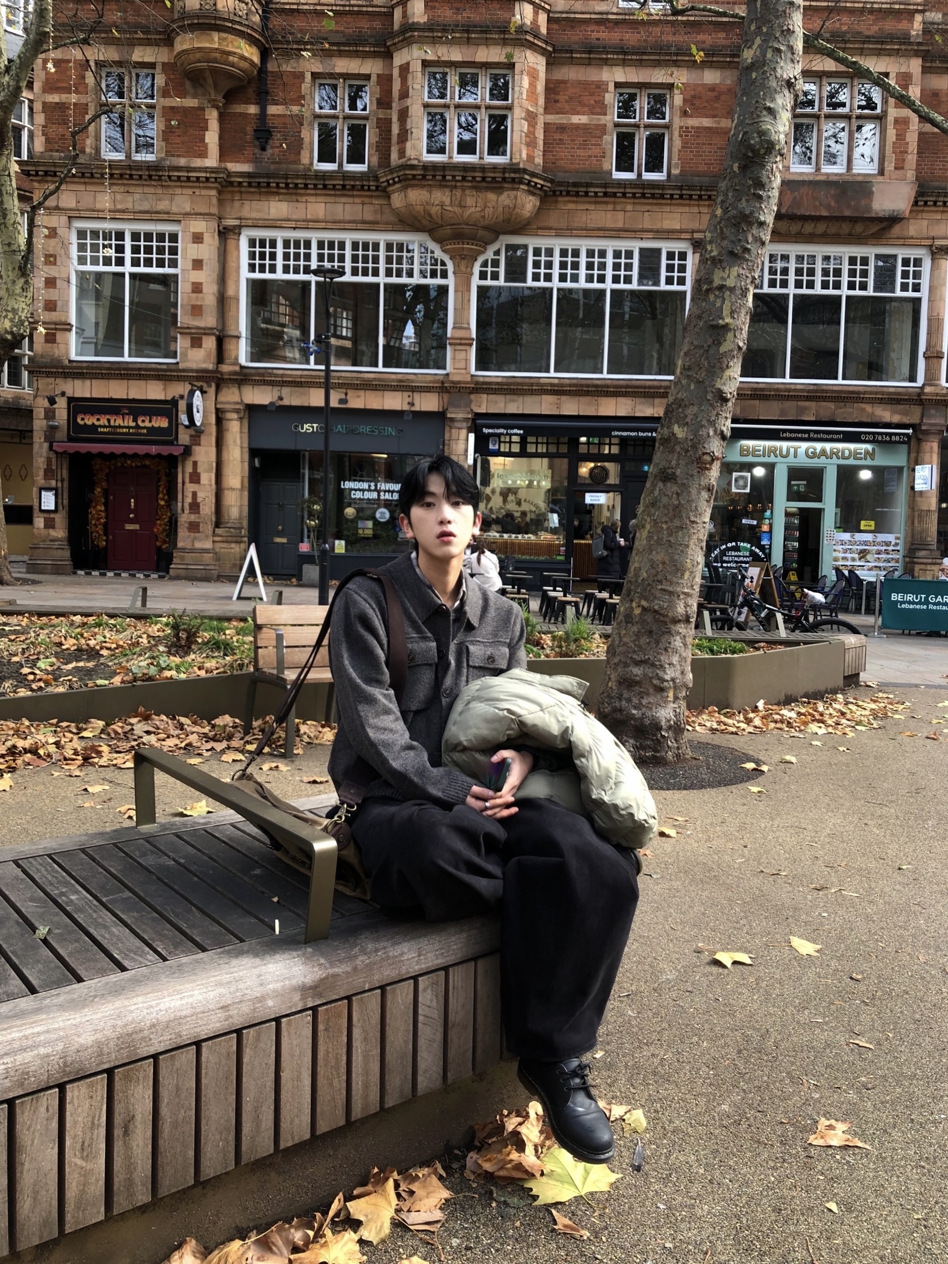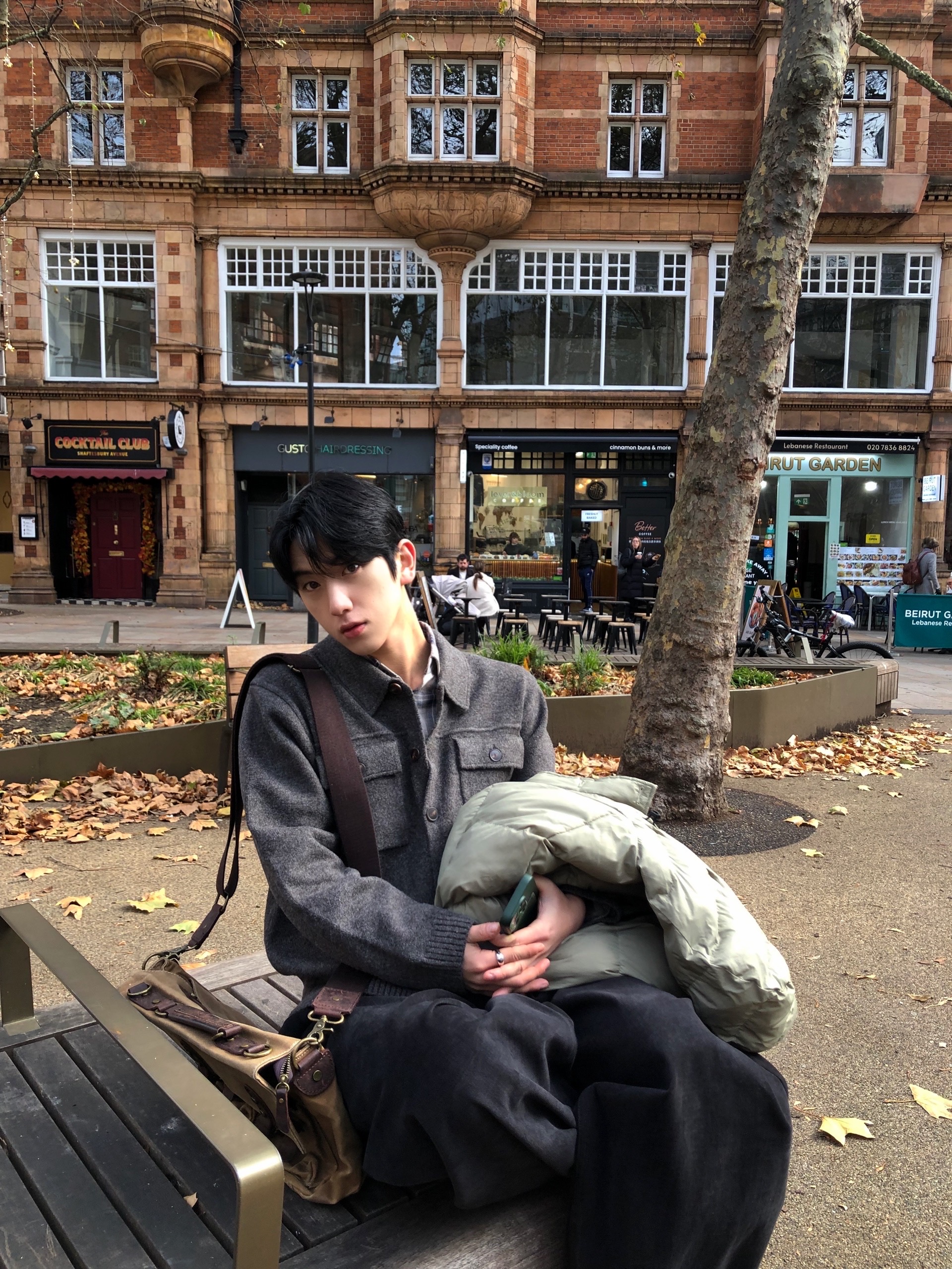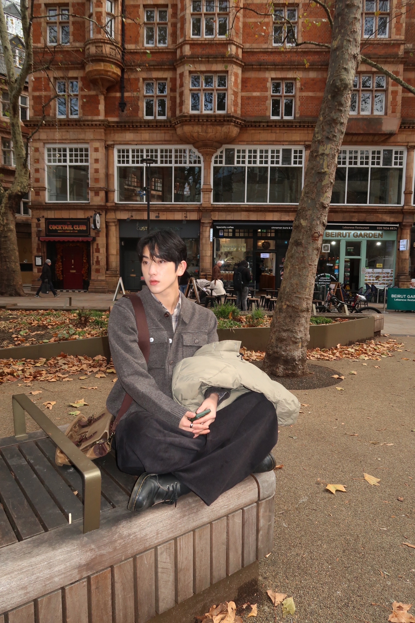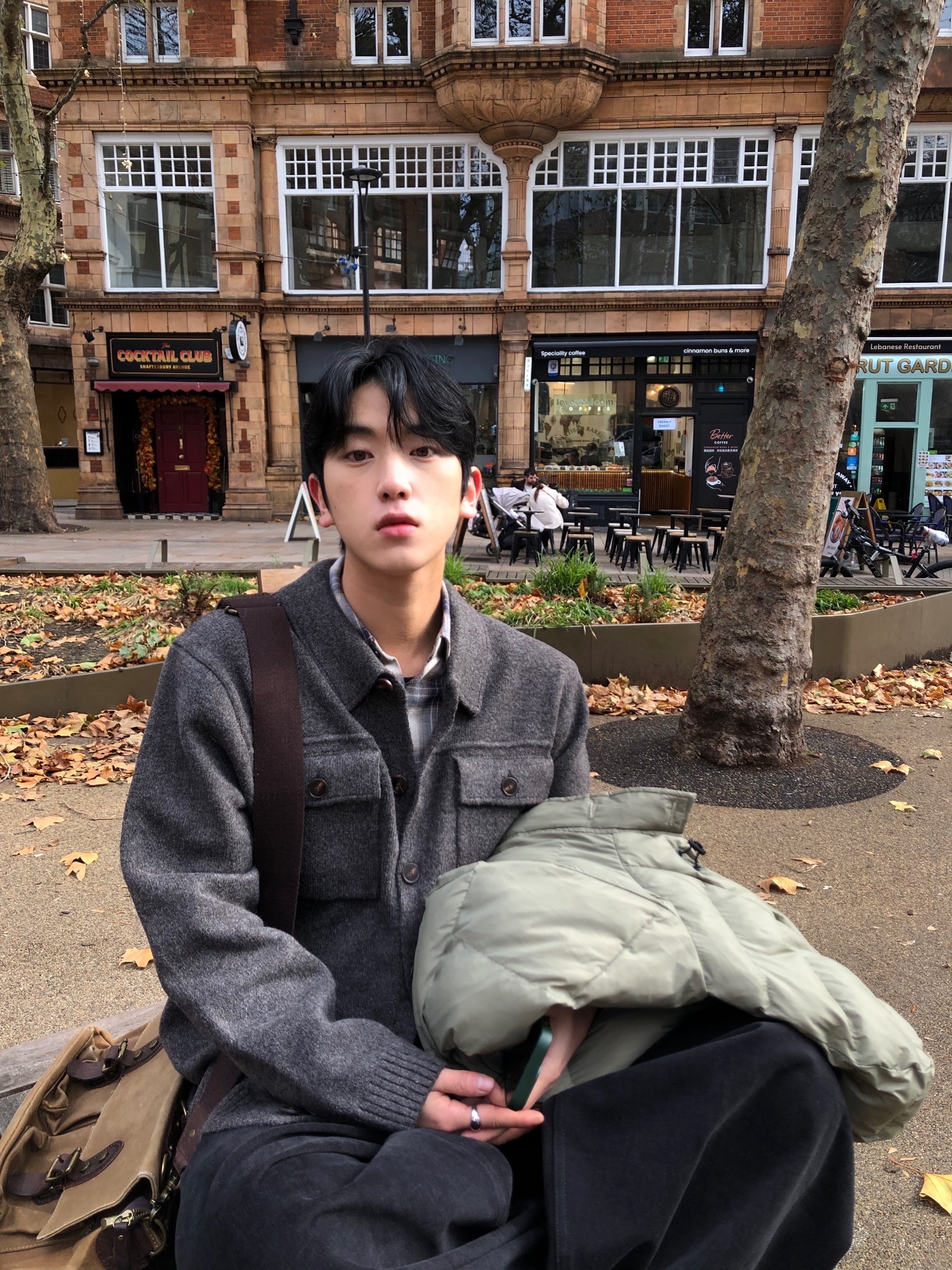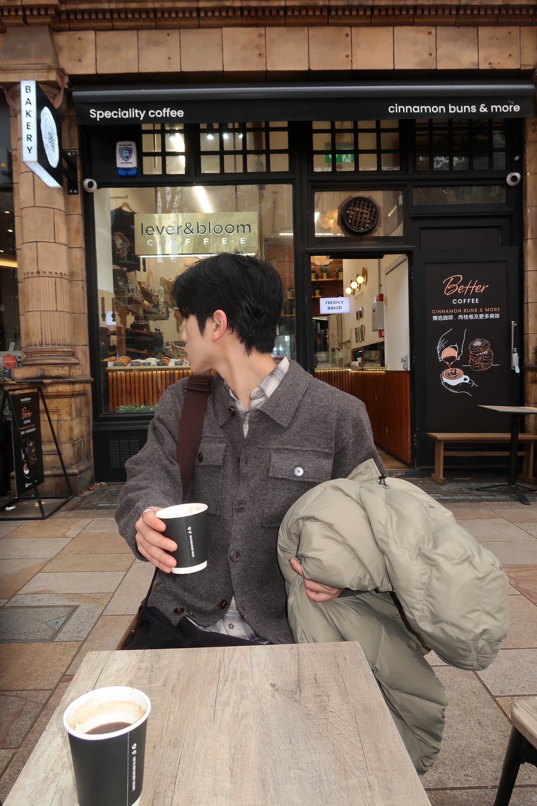 charcoal, beige, brown, black