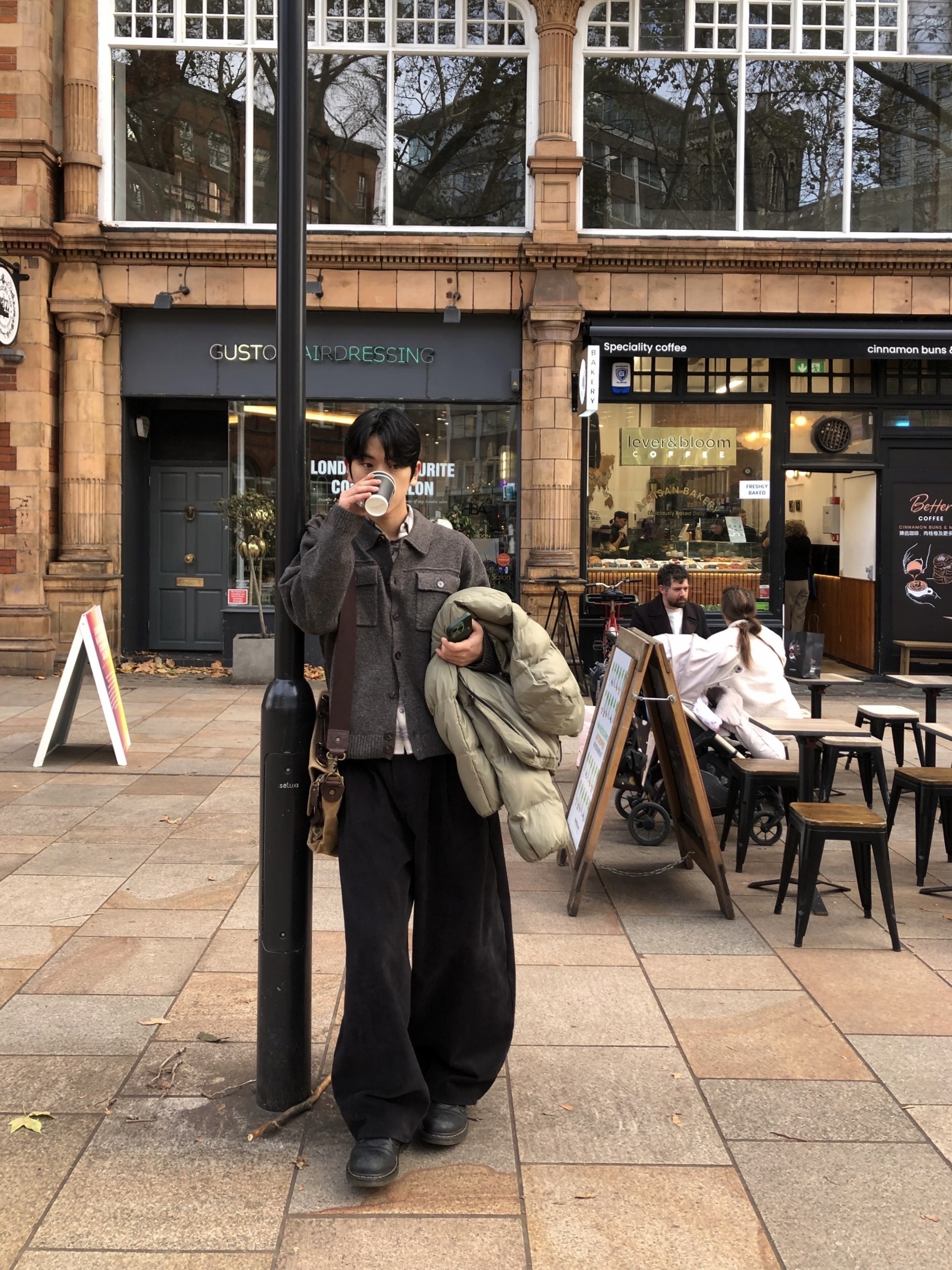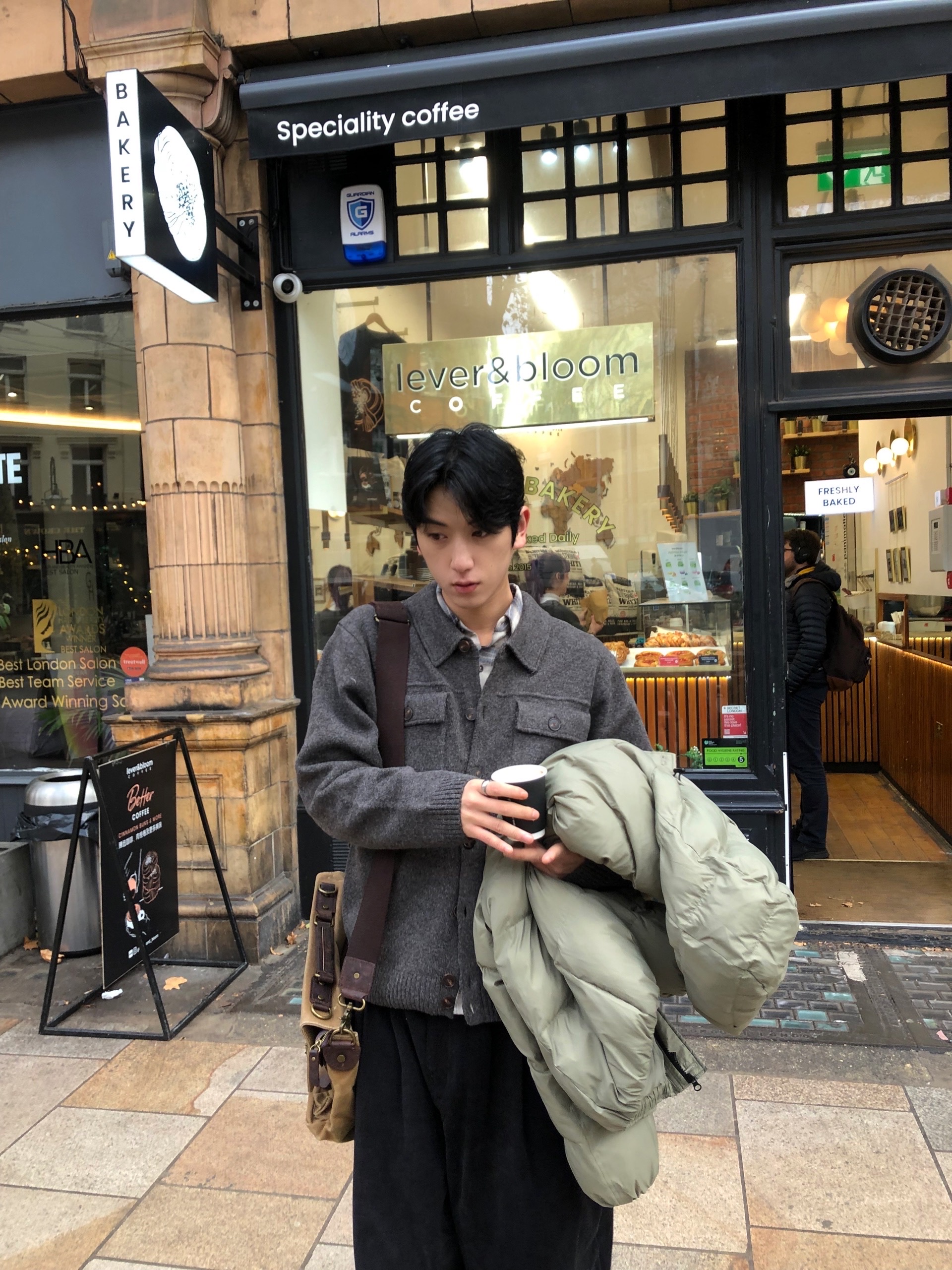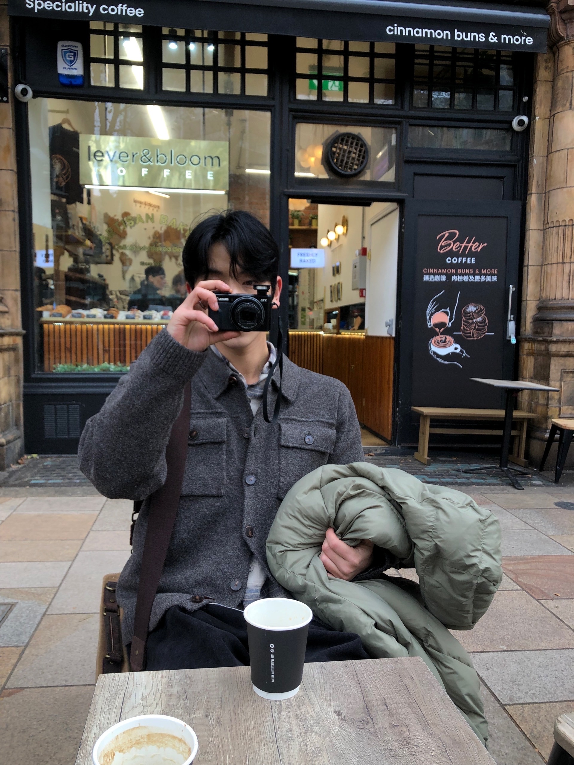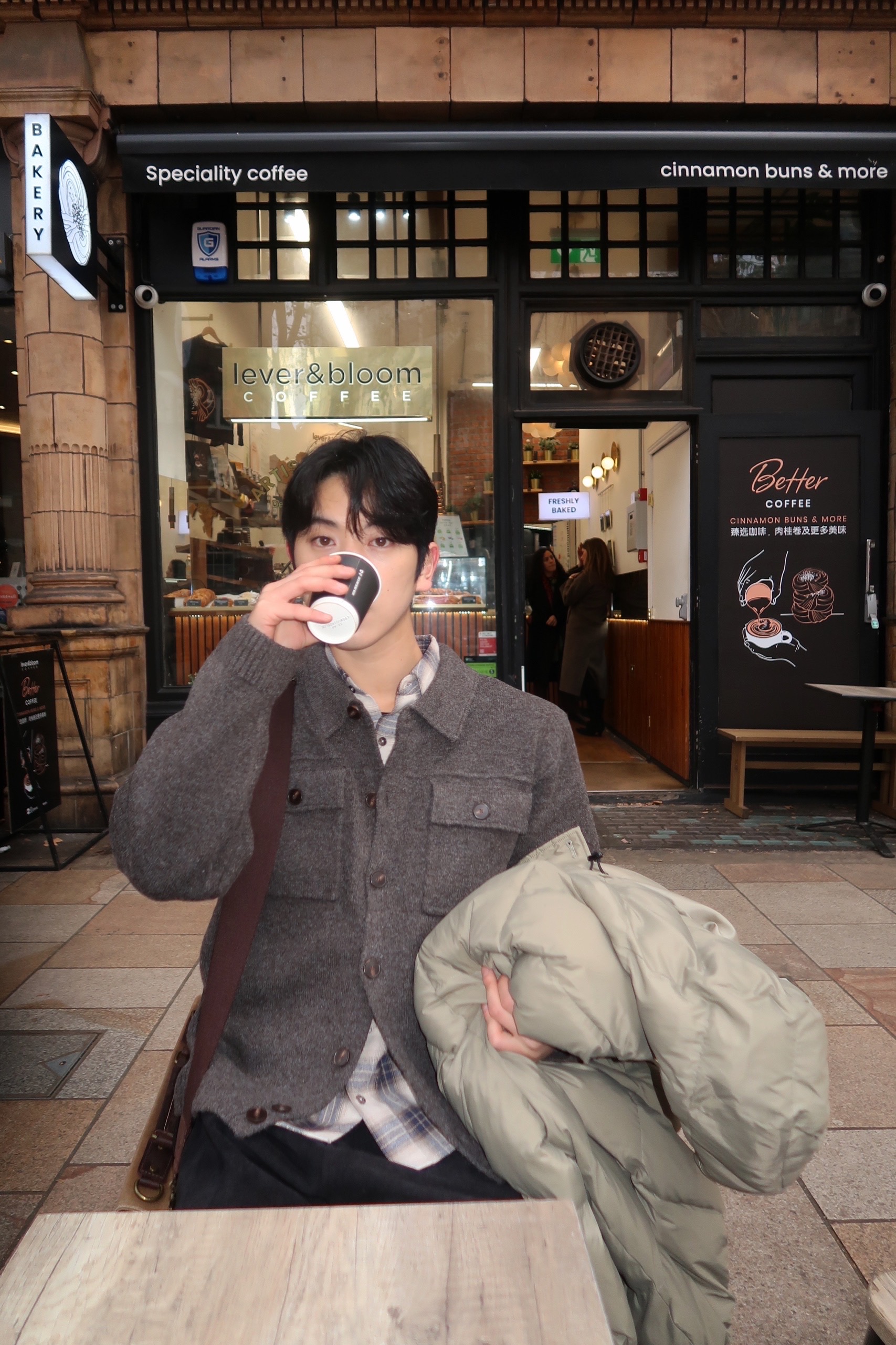 charcoal, beige, brown, black