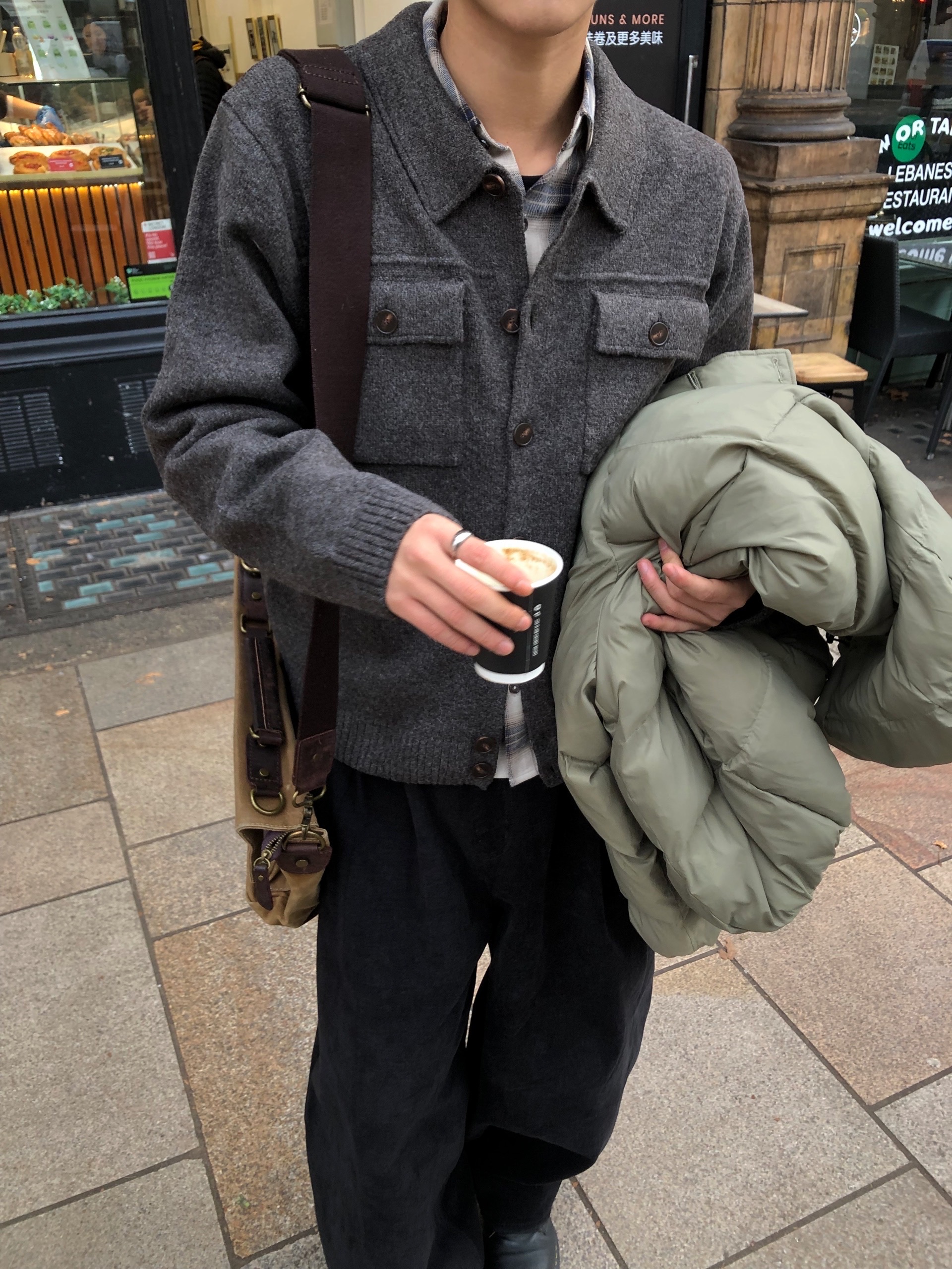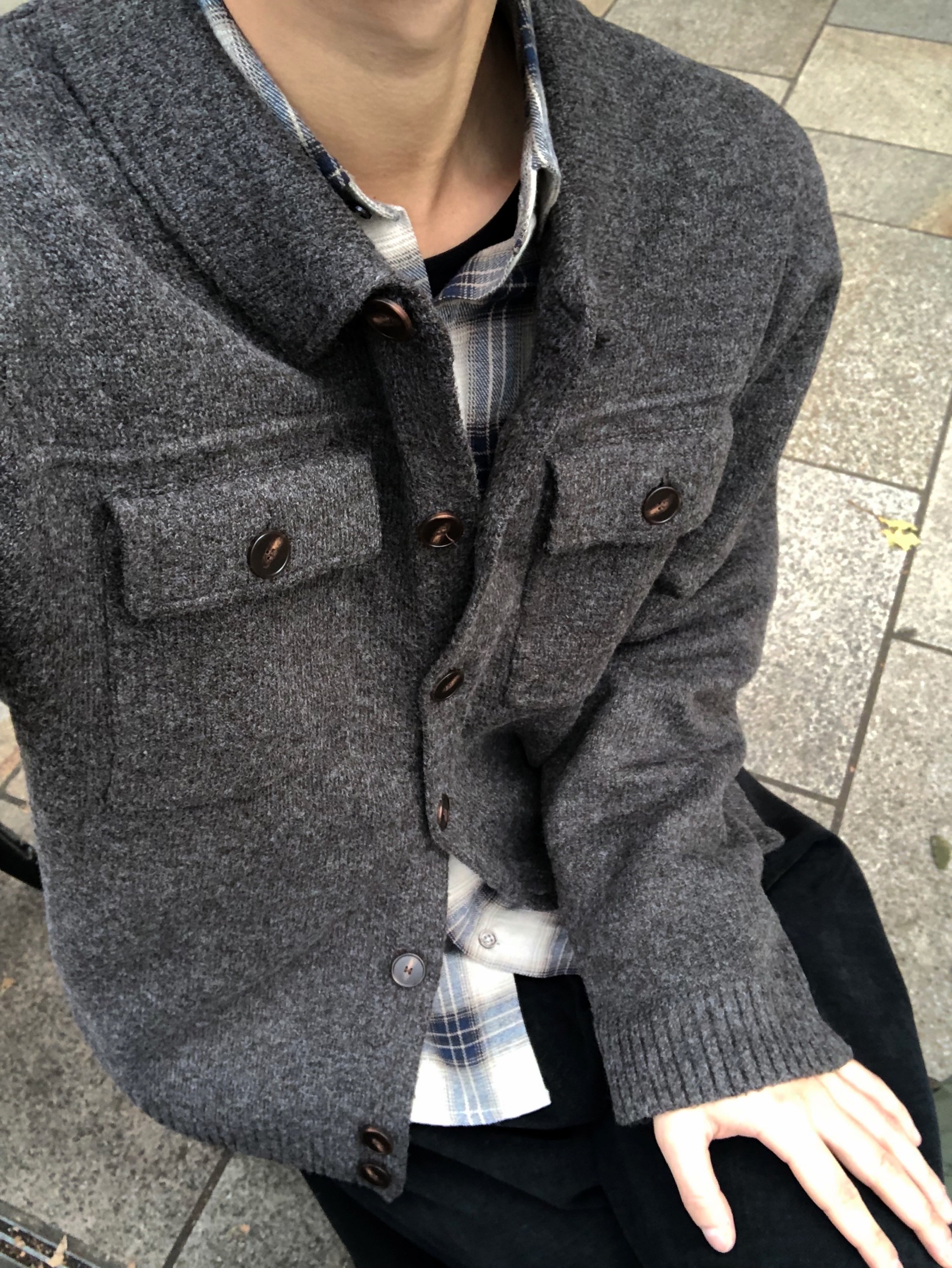 (4color)ポケット 襟 ニットカーディガン