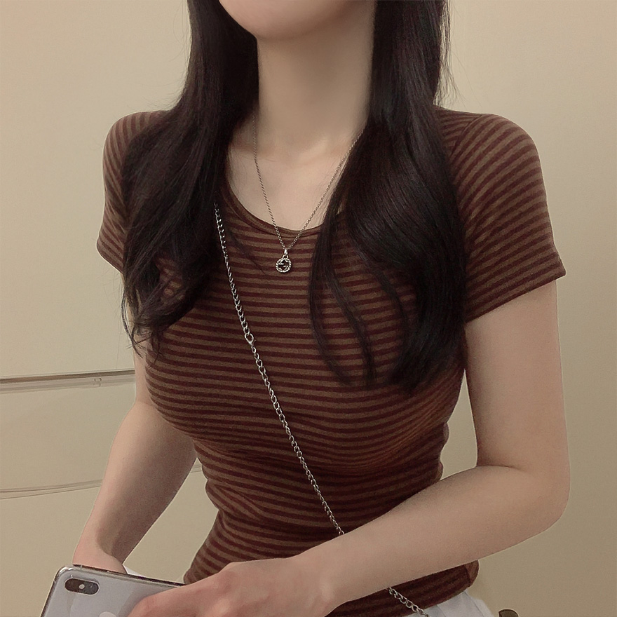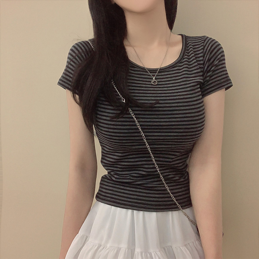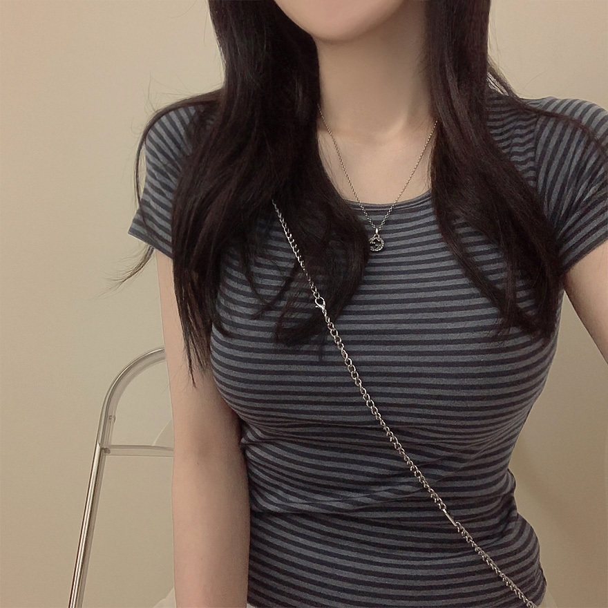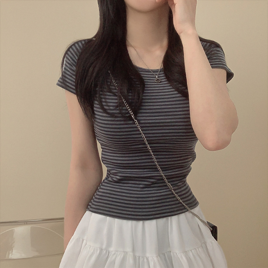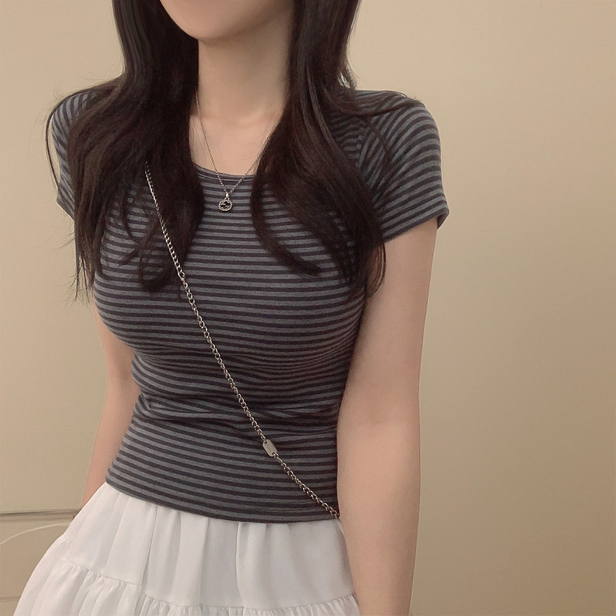 ボーダーUネックスリム半袖Tシャツ