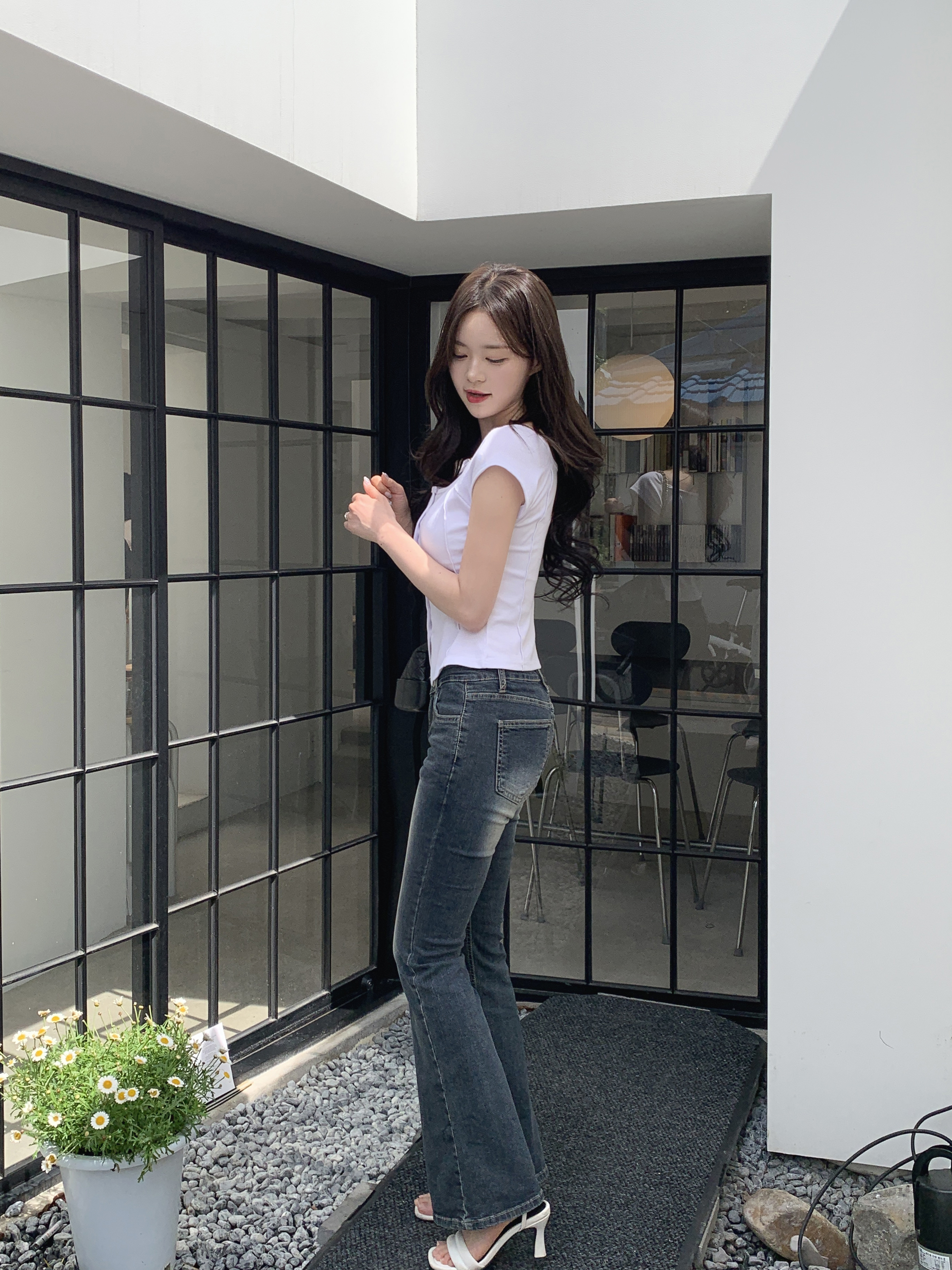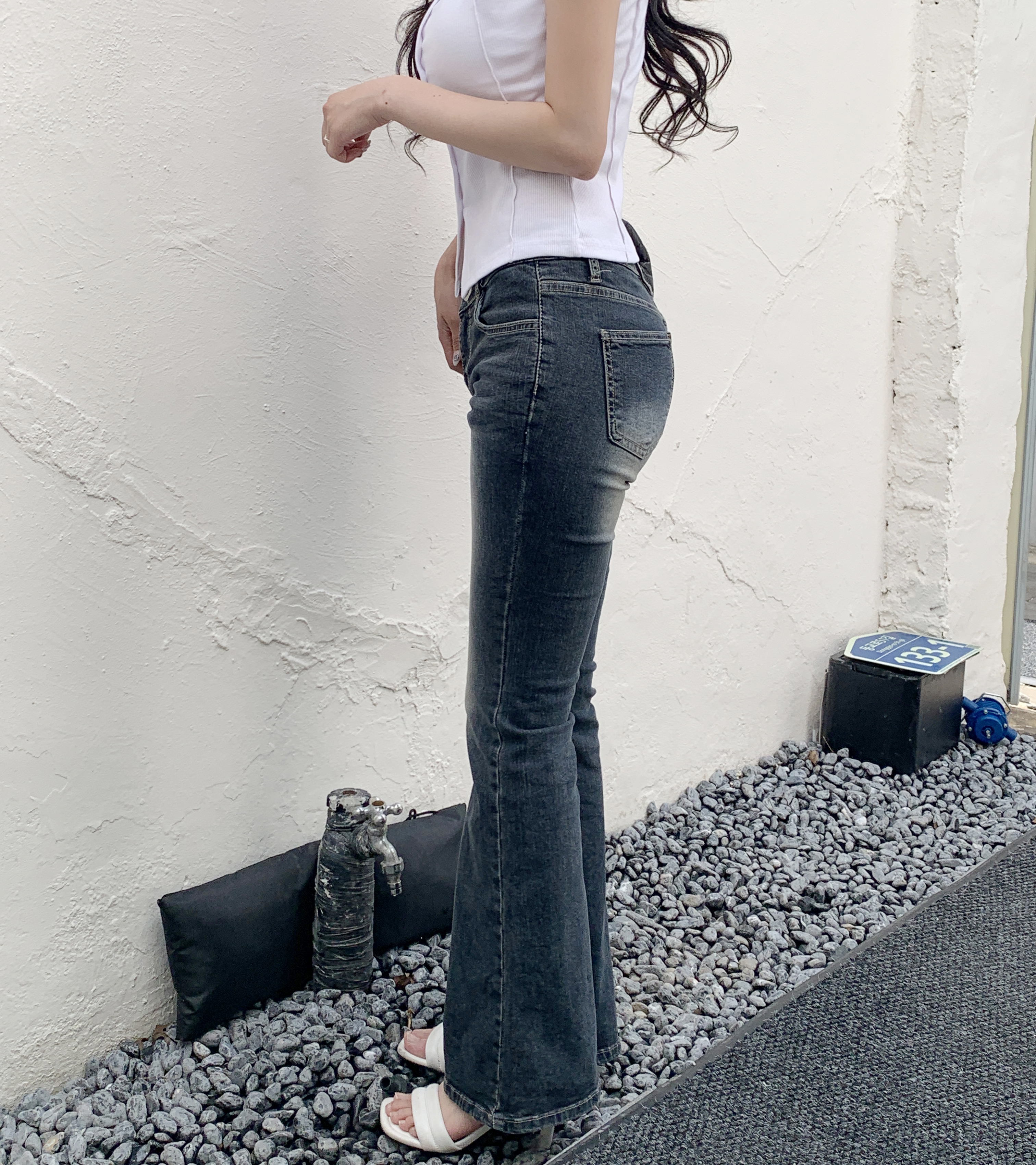 [骨盤パッド付き]ブーツカットデニムパンツ