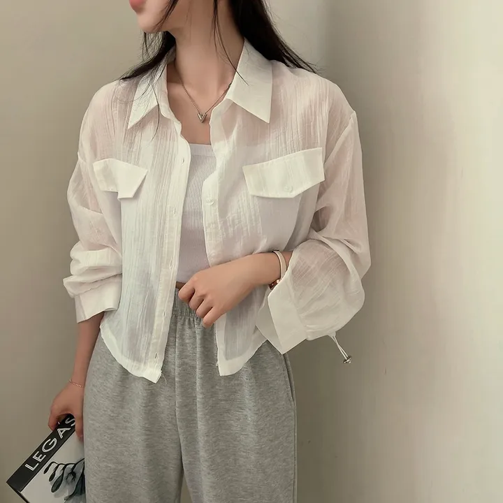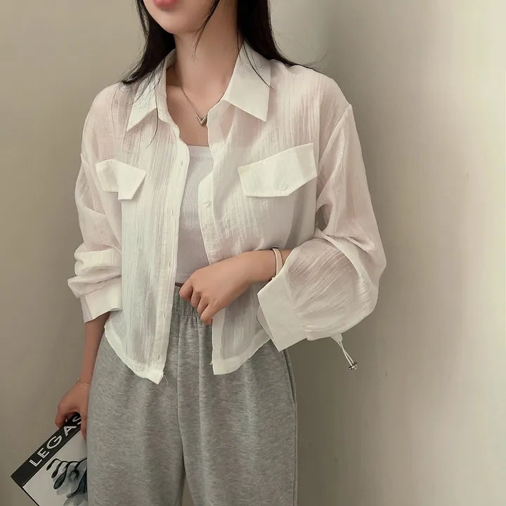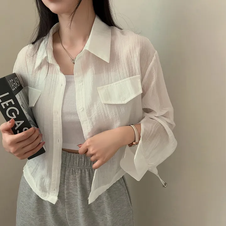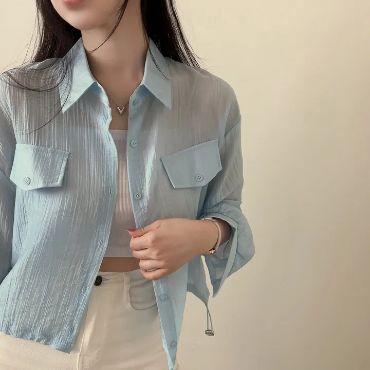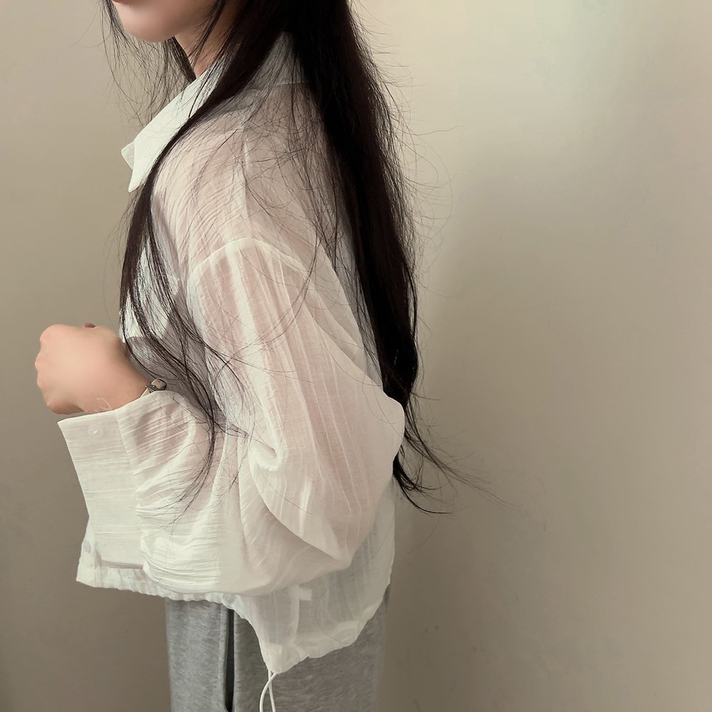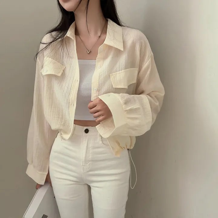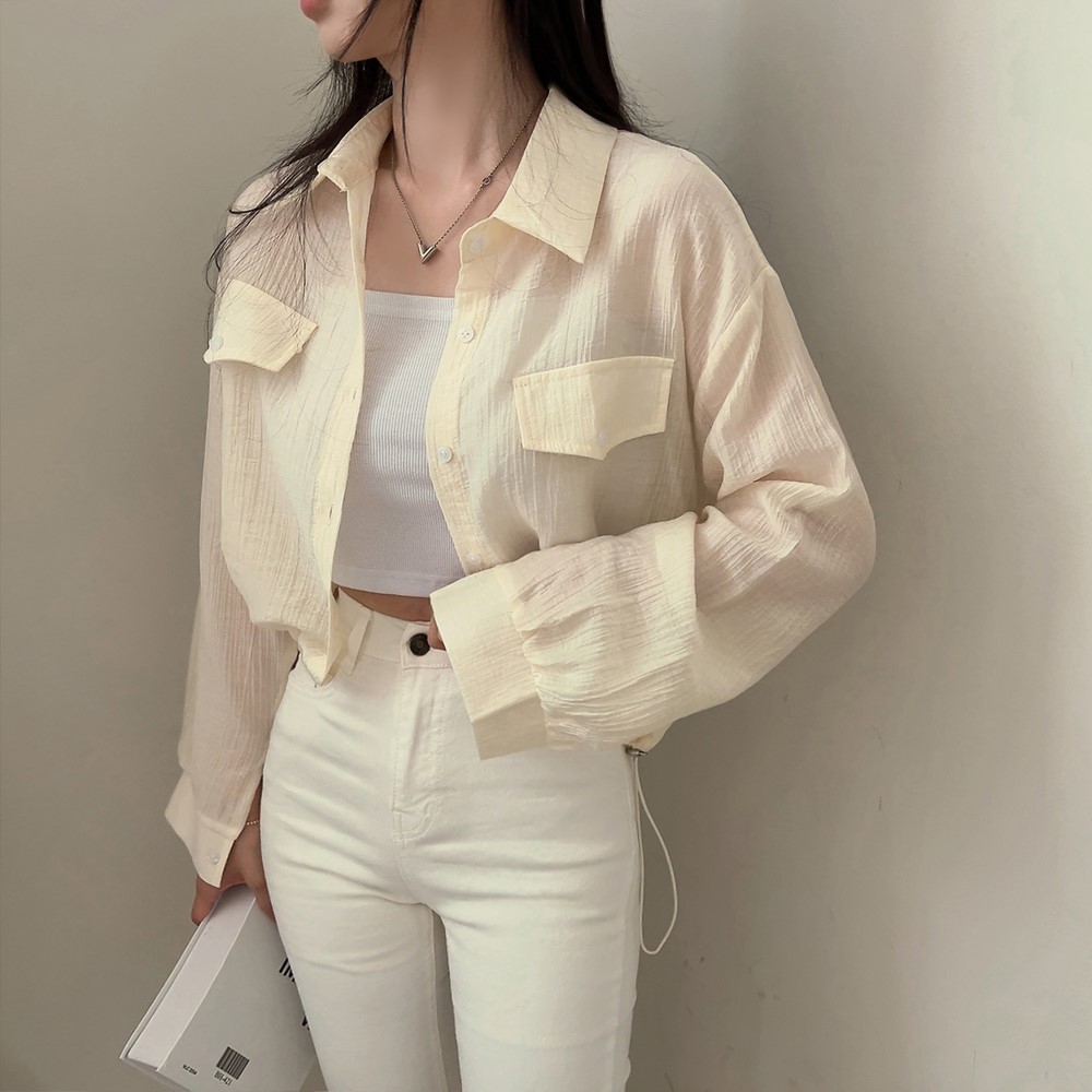 シースルーポケットクロップドストリングシャツ