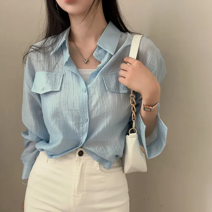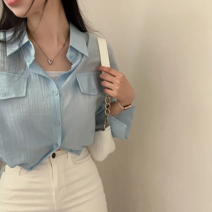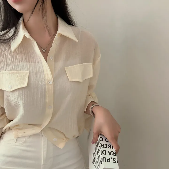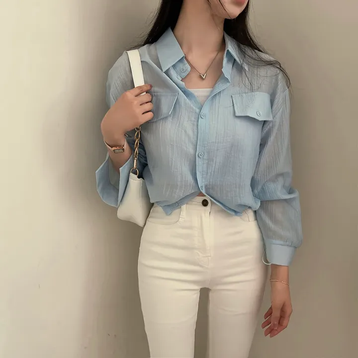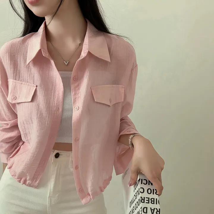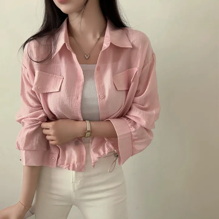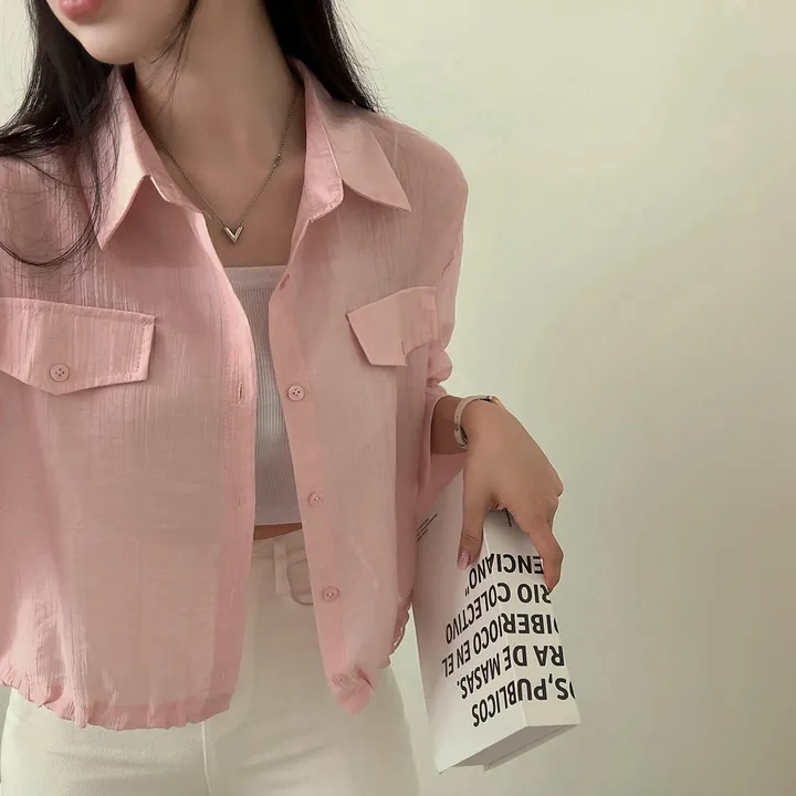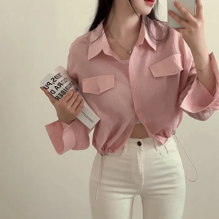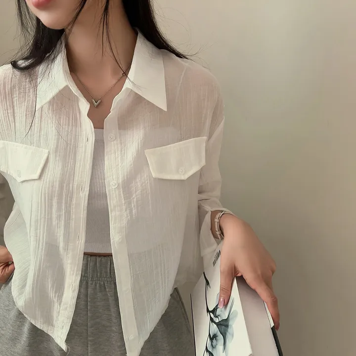 シースルーポケットクロップドストリングシャツ
