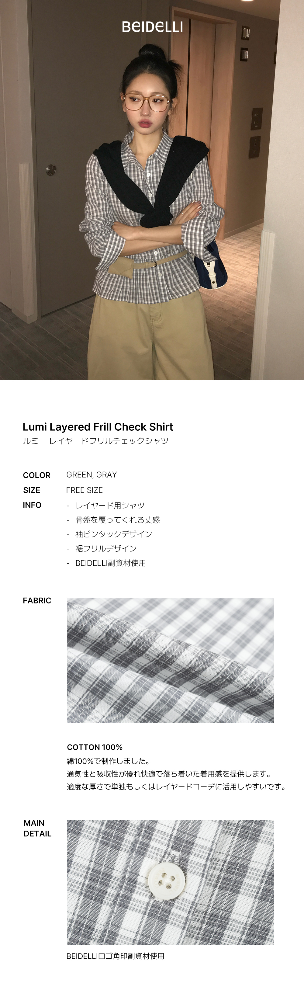 [ORIGINAL] ルミ レイヤードフリルチェックシャツ