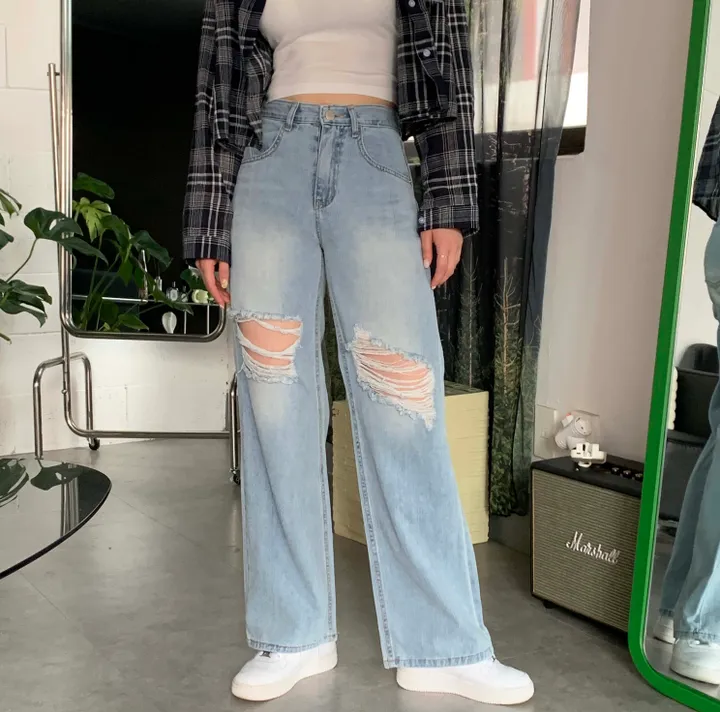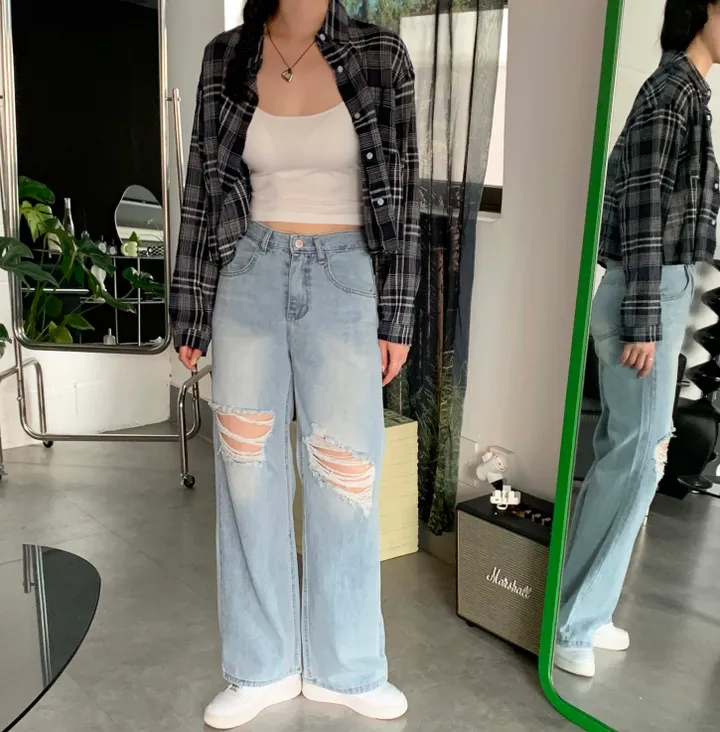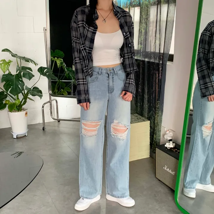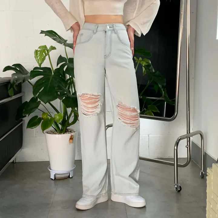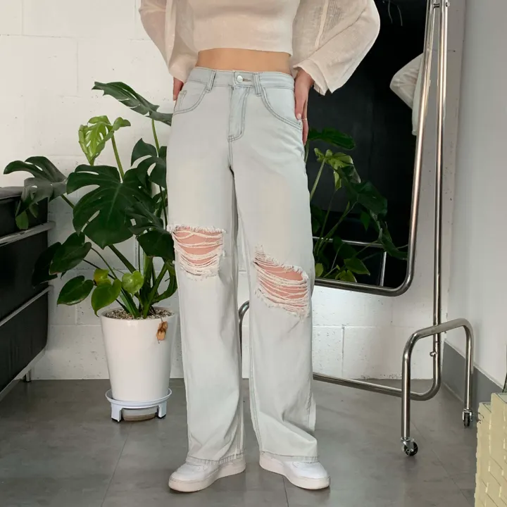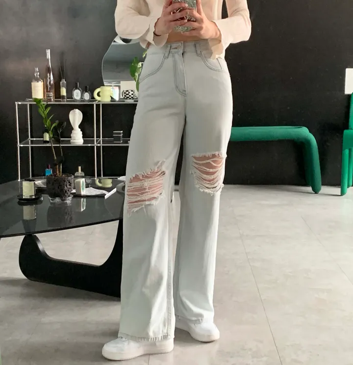 ヴィンテージワイドスリットデニムロングパンツ(2color)