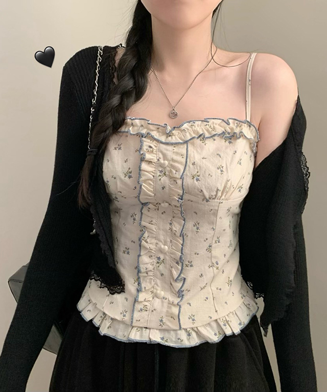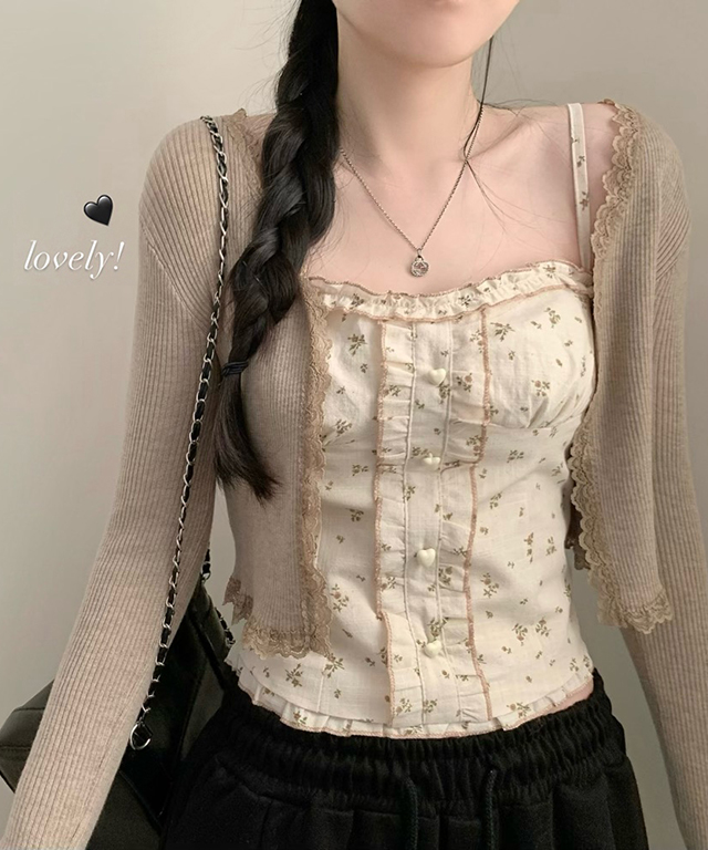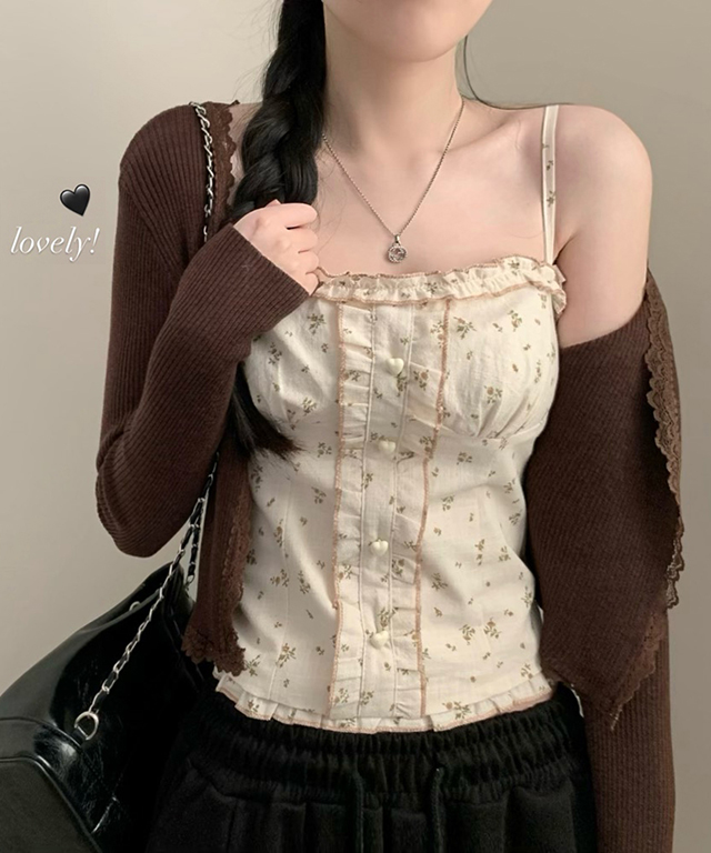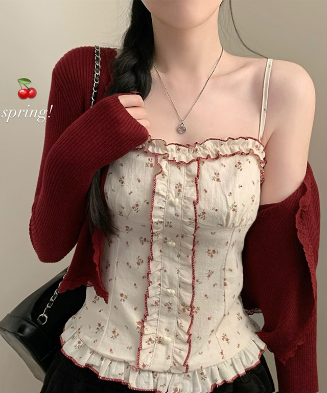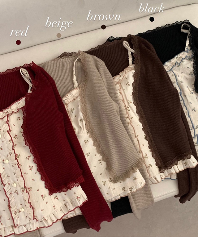 (set)(4color)フラワー バイカラーキャミソールカーディガン