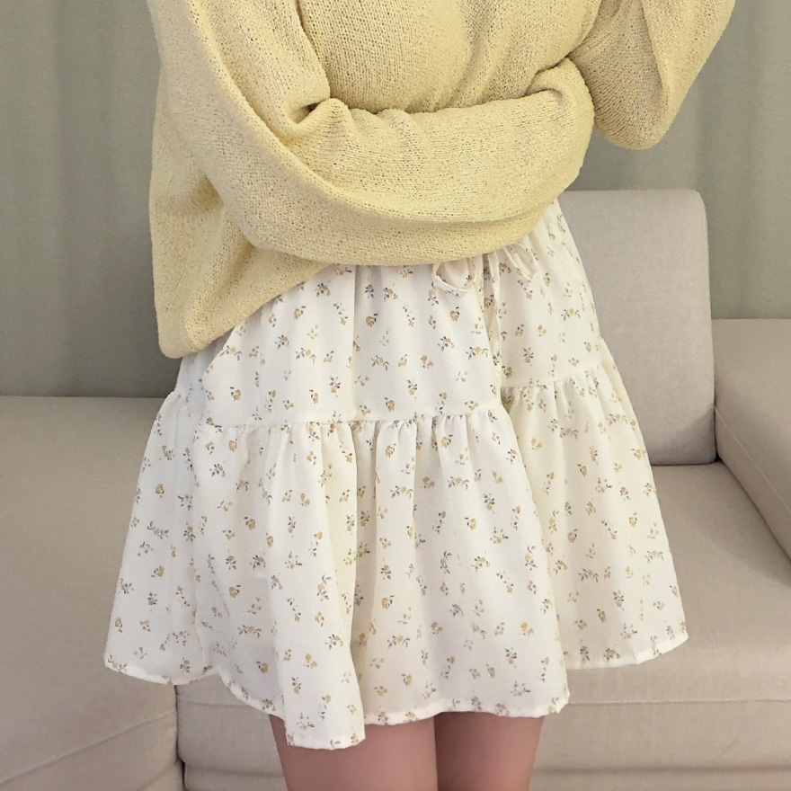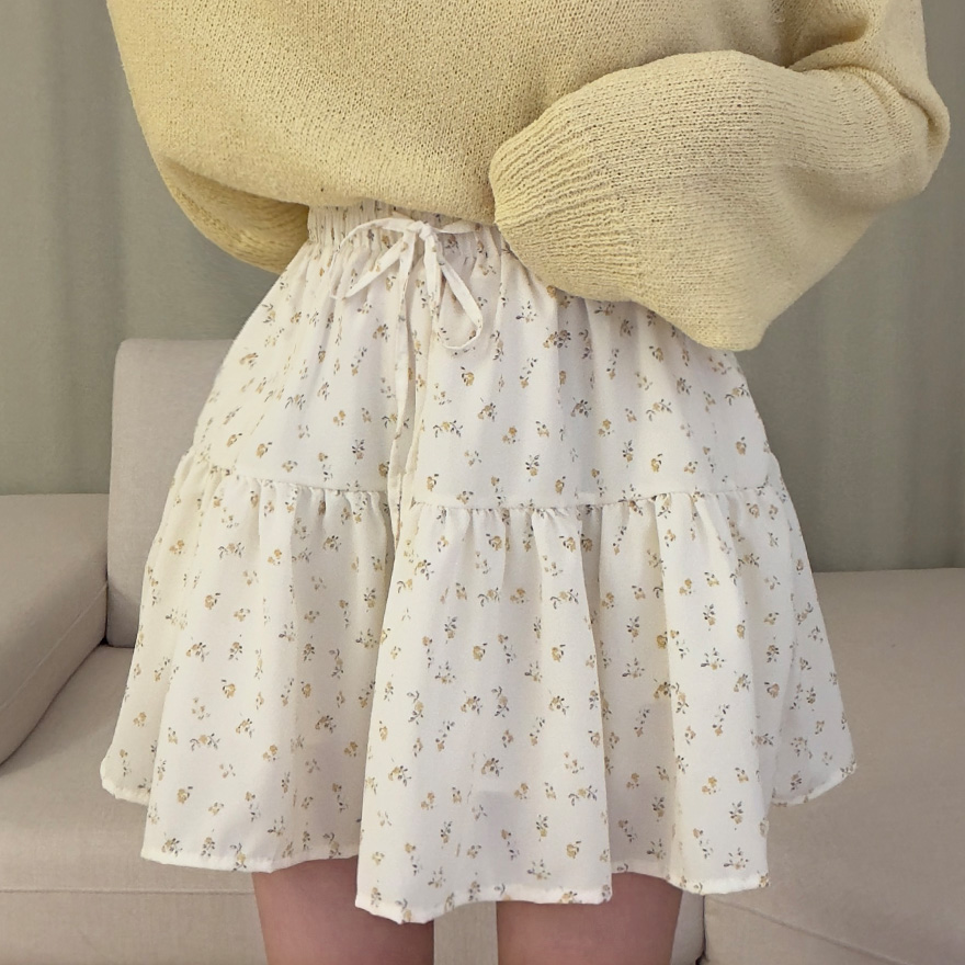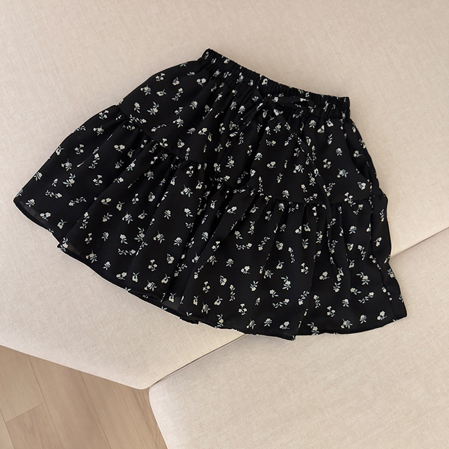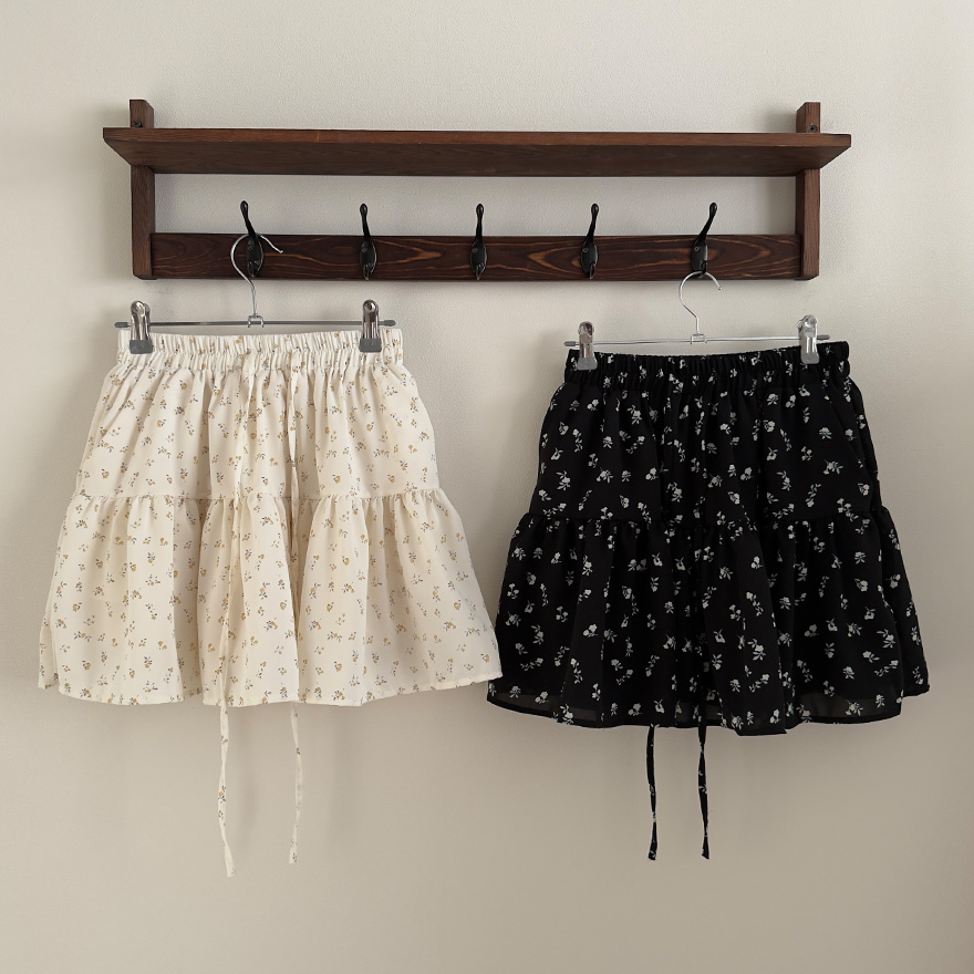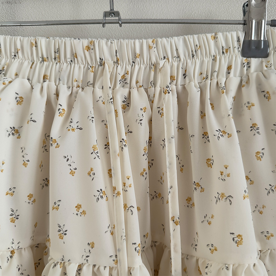 (2color)フラワー柄ポケット付きウエストゴムティアードスカート