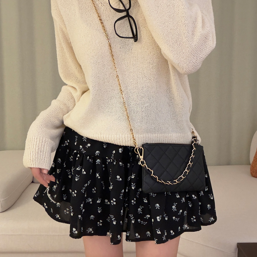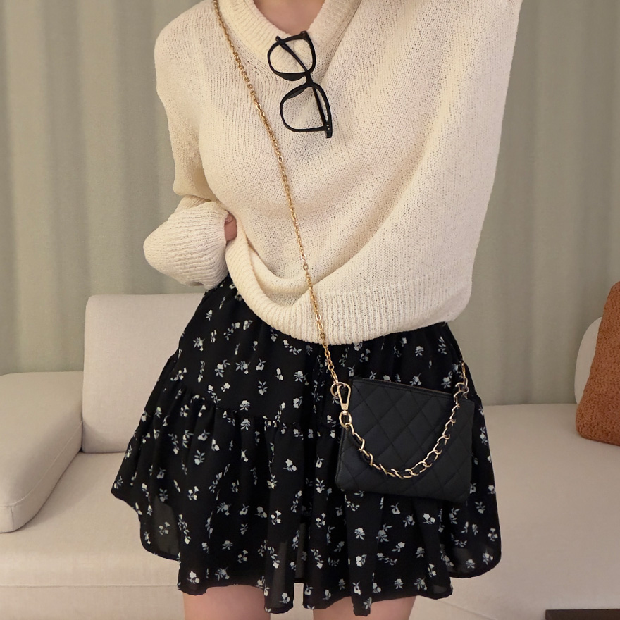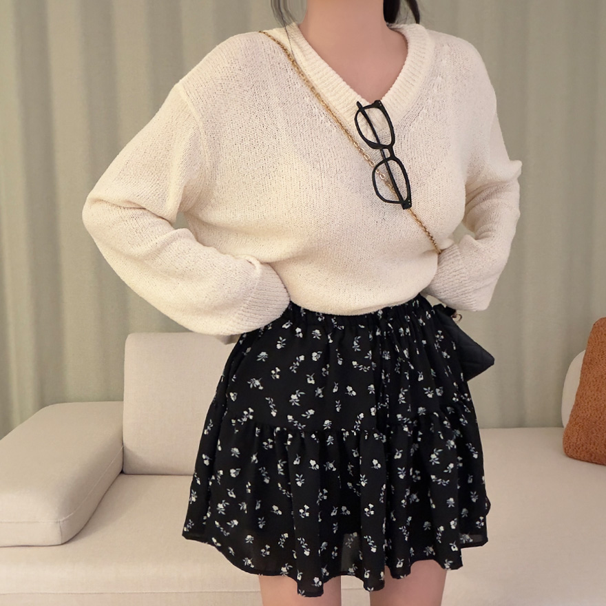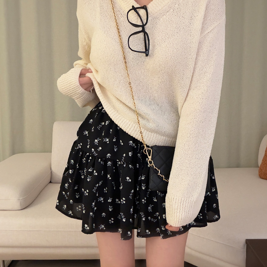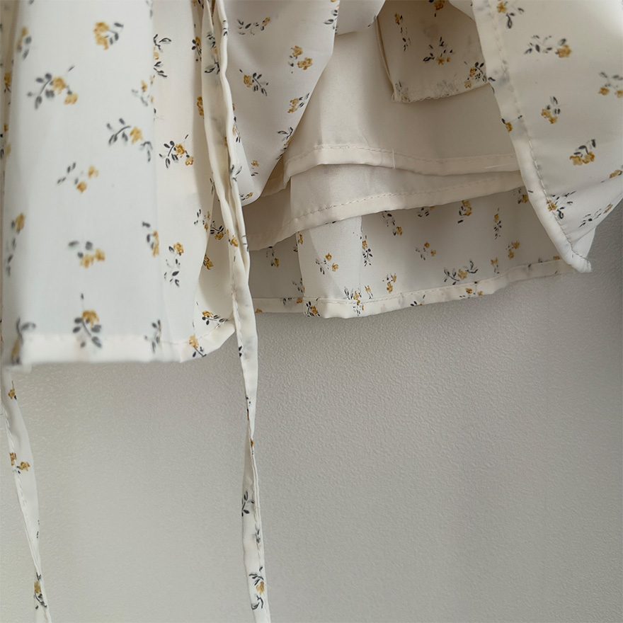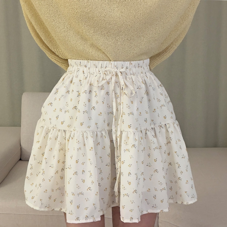 (2color)フラワー柄ポケット付きウエストゴムティアードスカート
