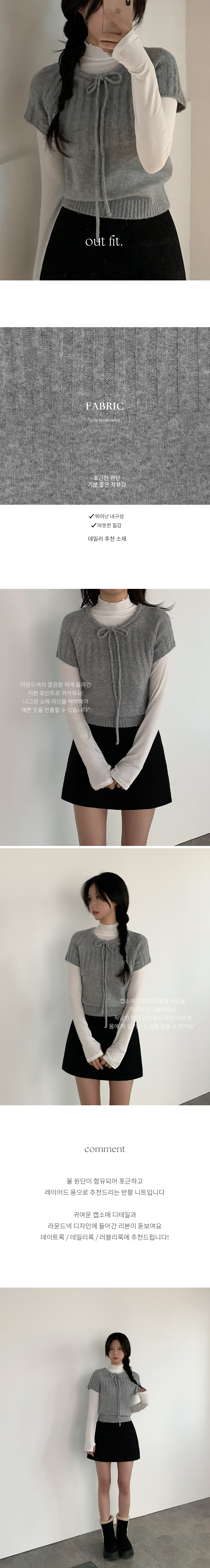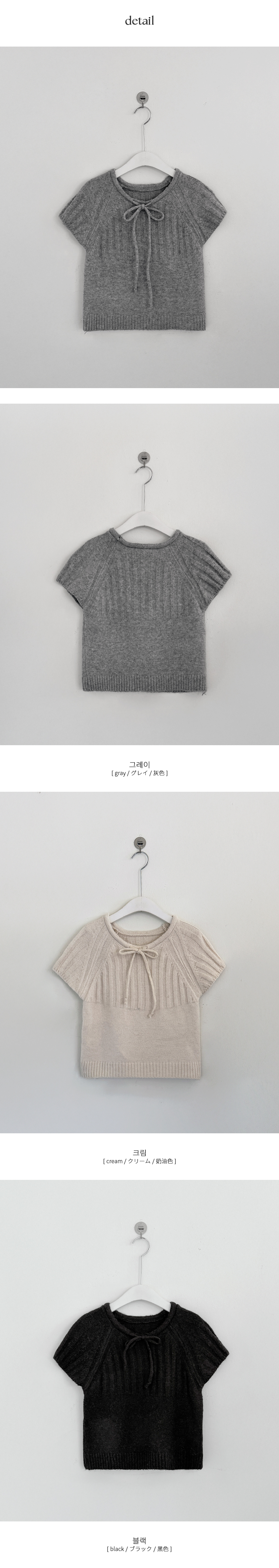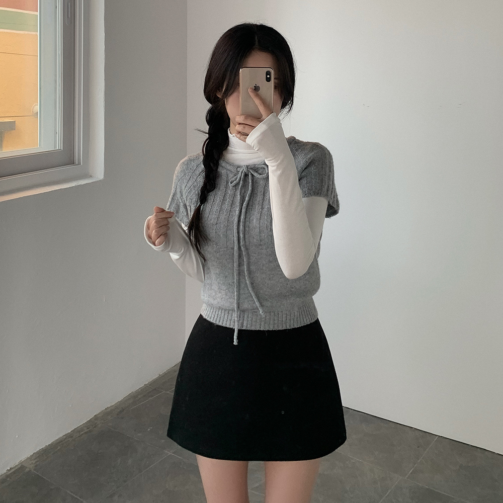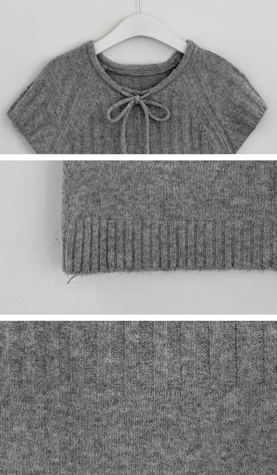ウール リボン クルーネック 半袖 ニット