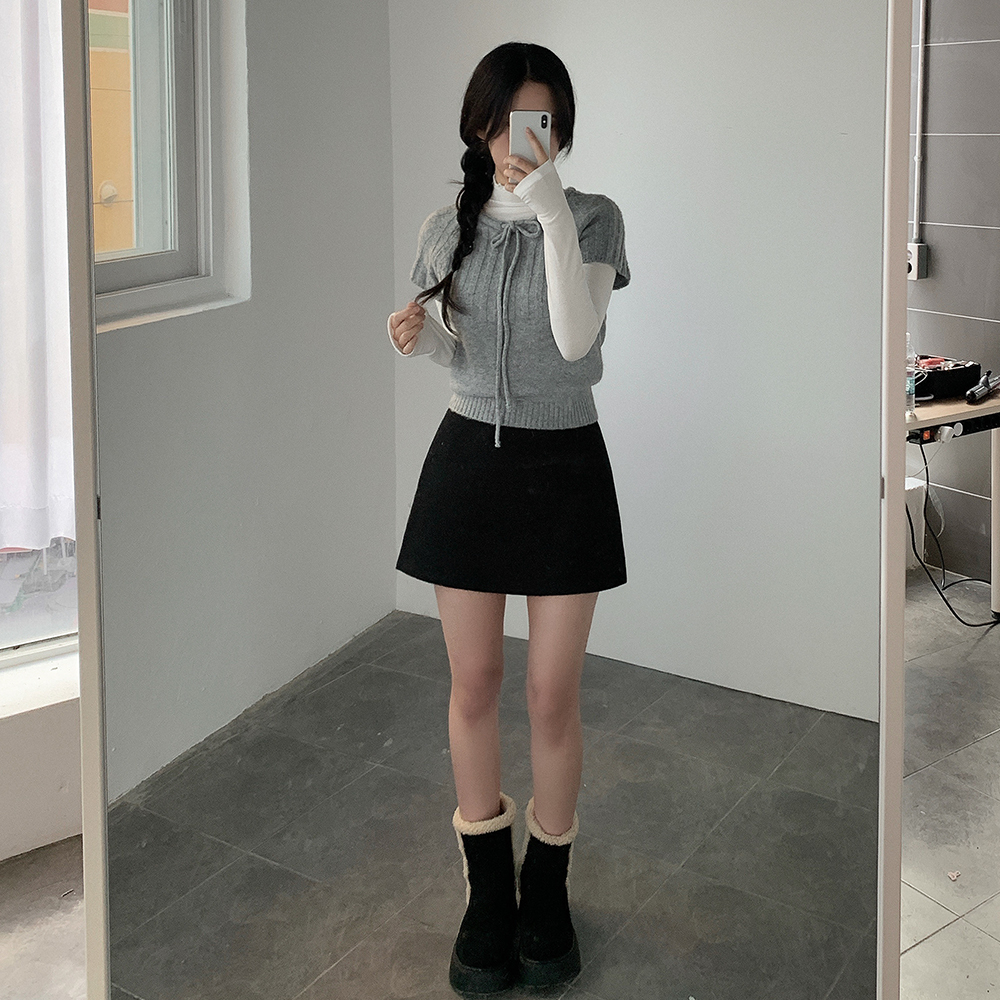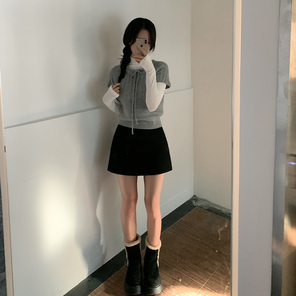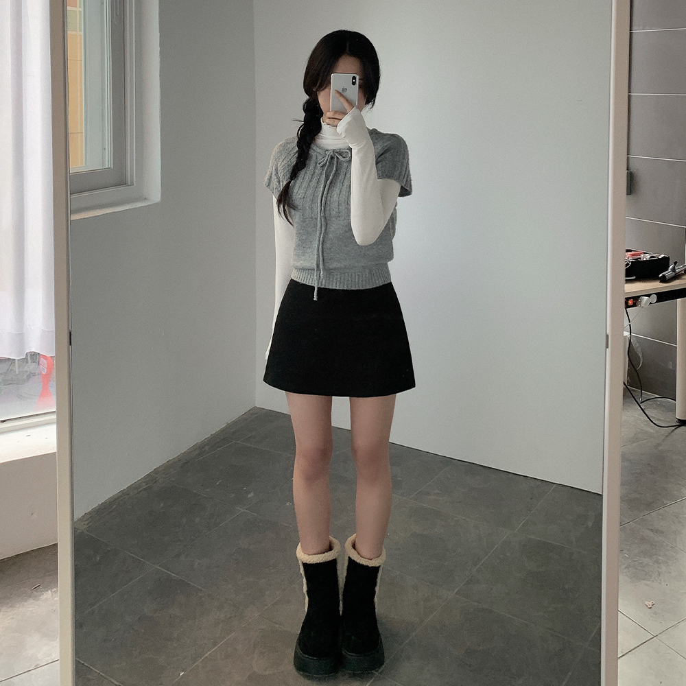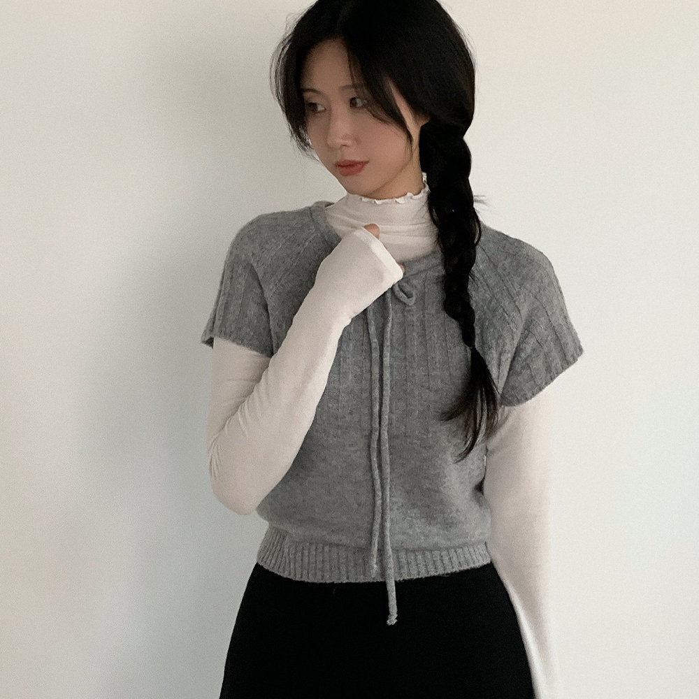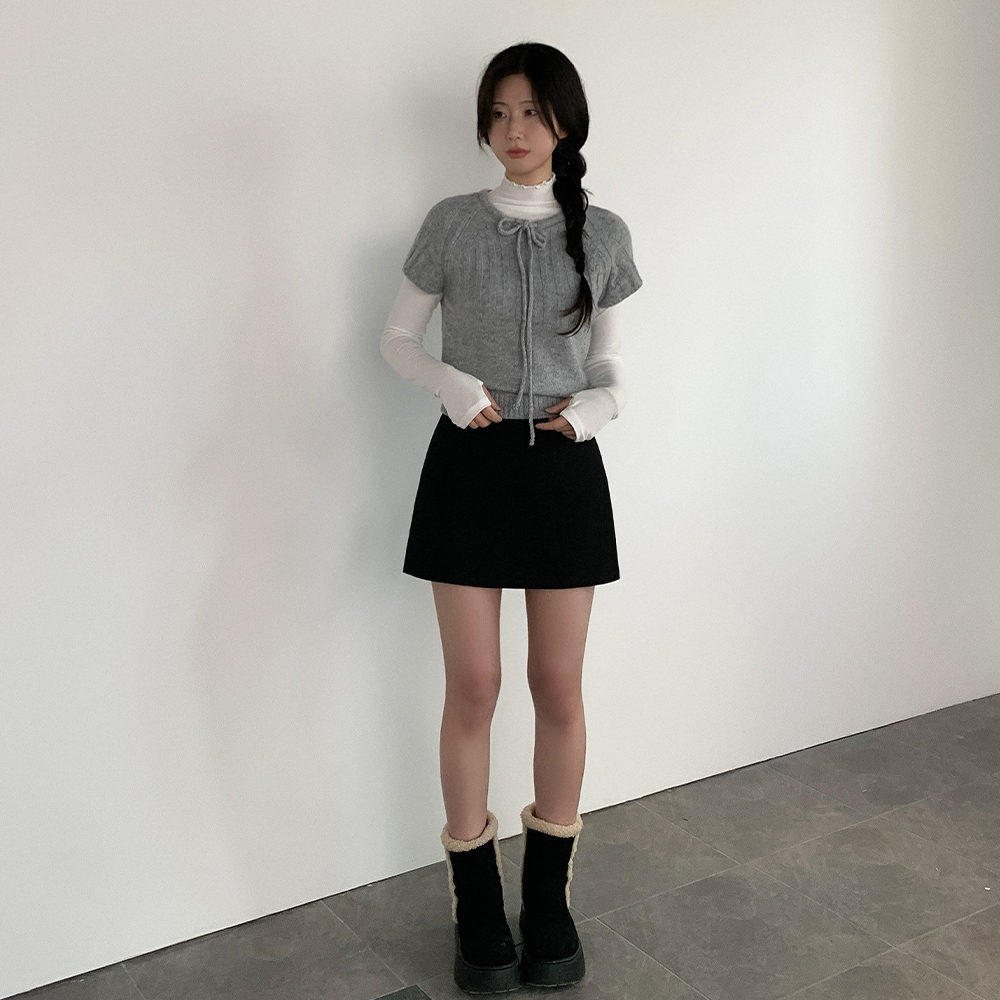 ウール リボン クルーネック 半袖 ニット
