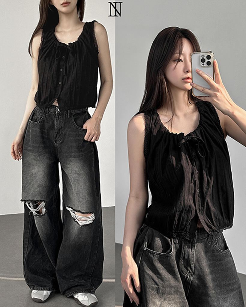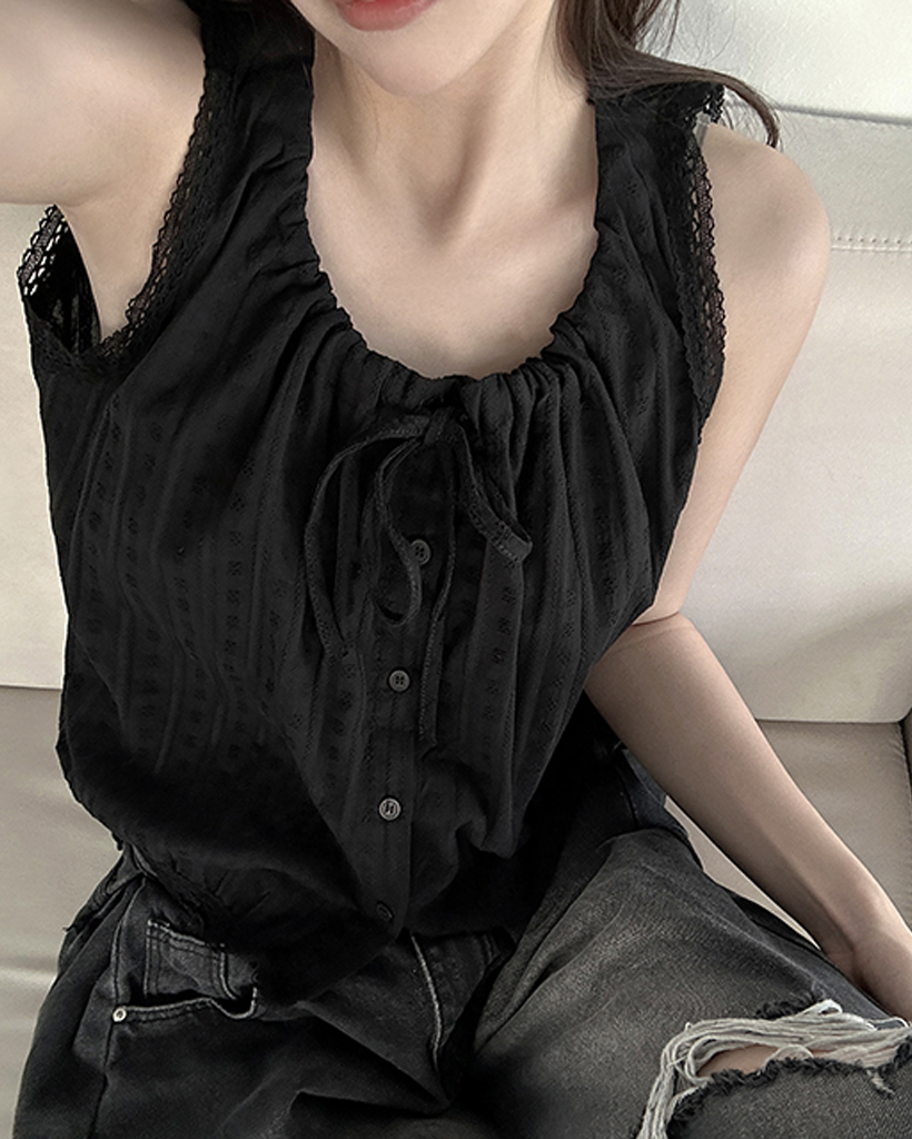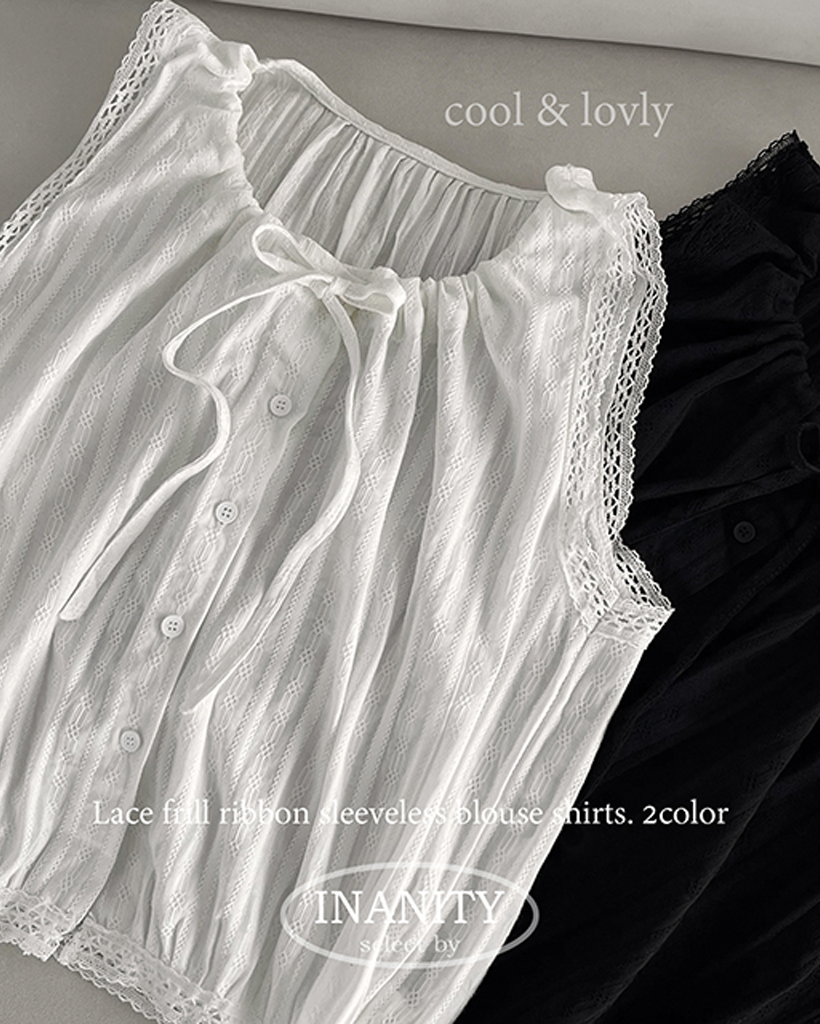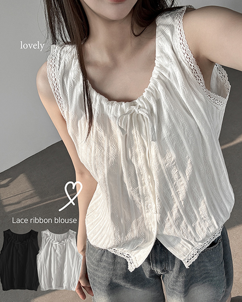 (2color)レースリボン付きコットンブラウス