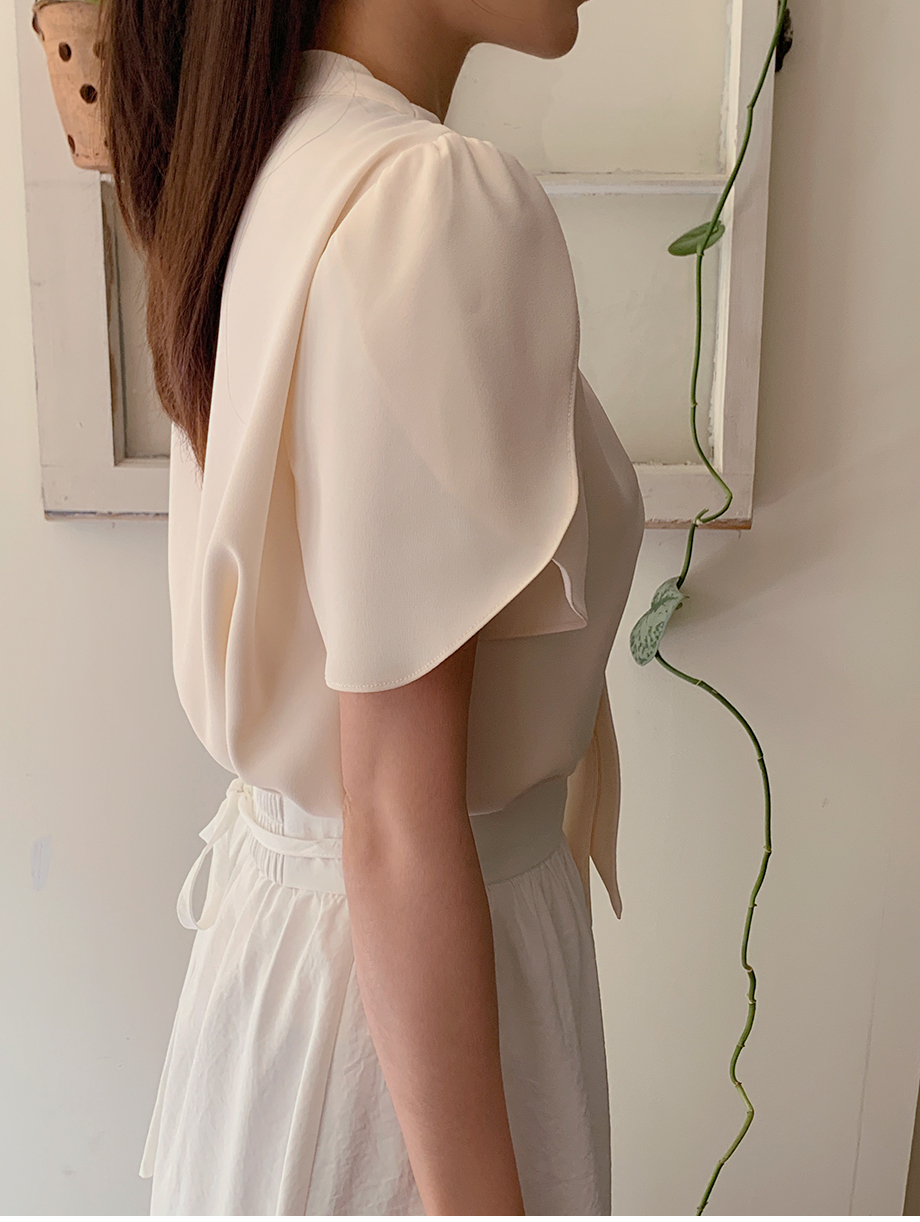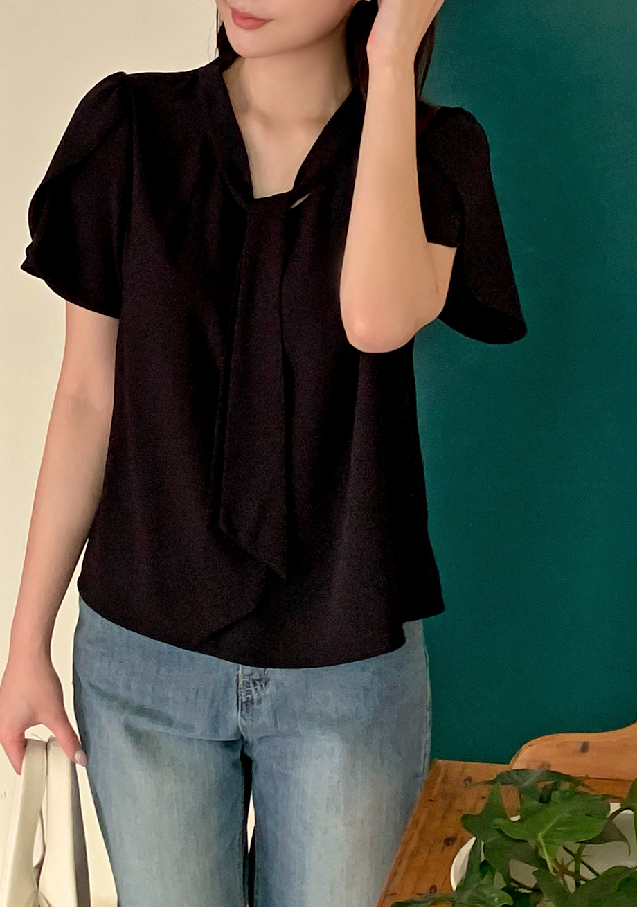 Vネックタイ付き半袖ブラウス