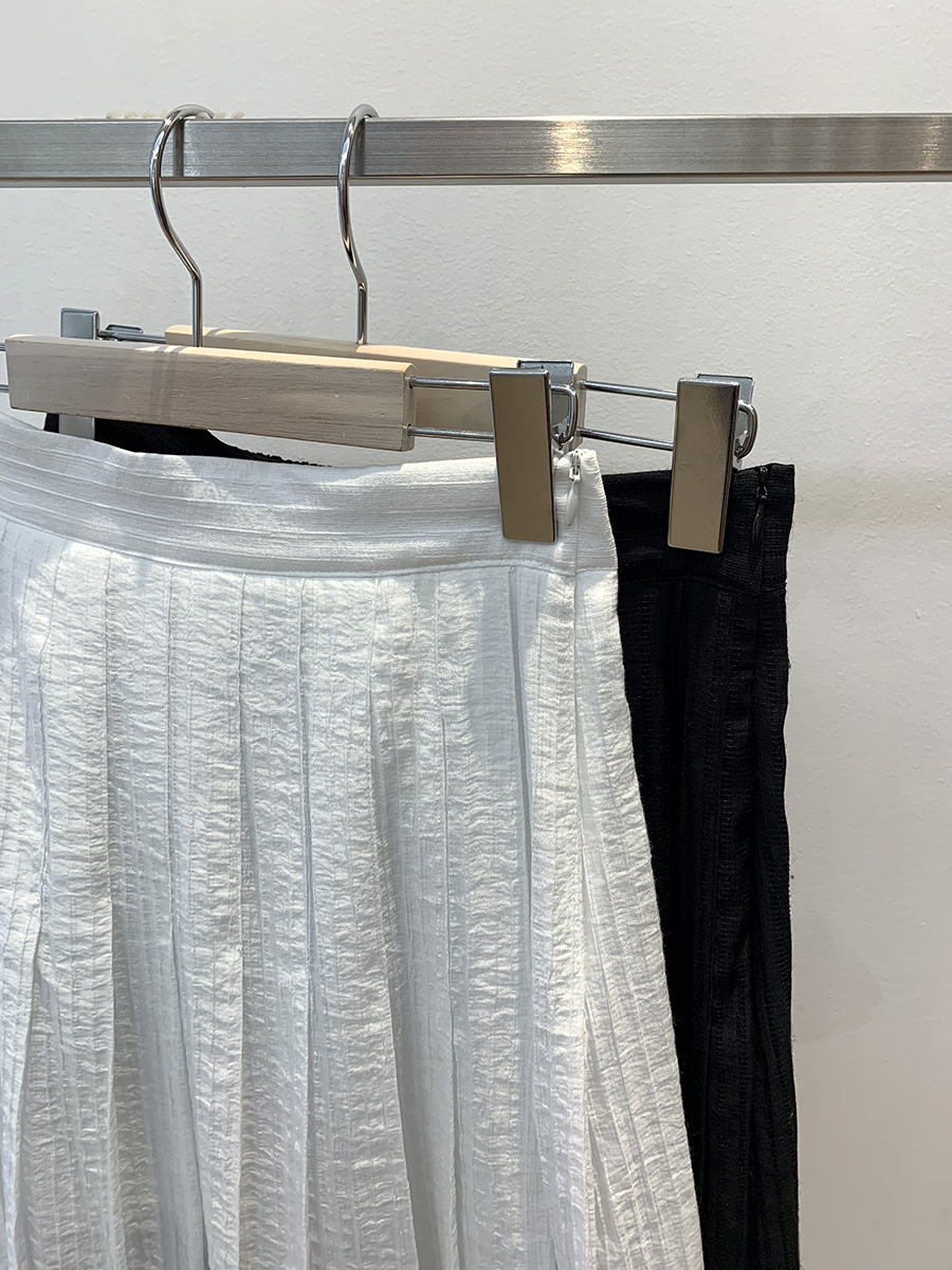 シフォンプリーツスカートAラインシャーリングミドル丈スカート2color