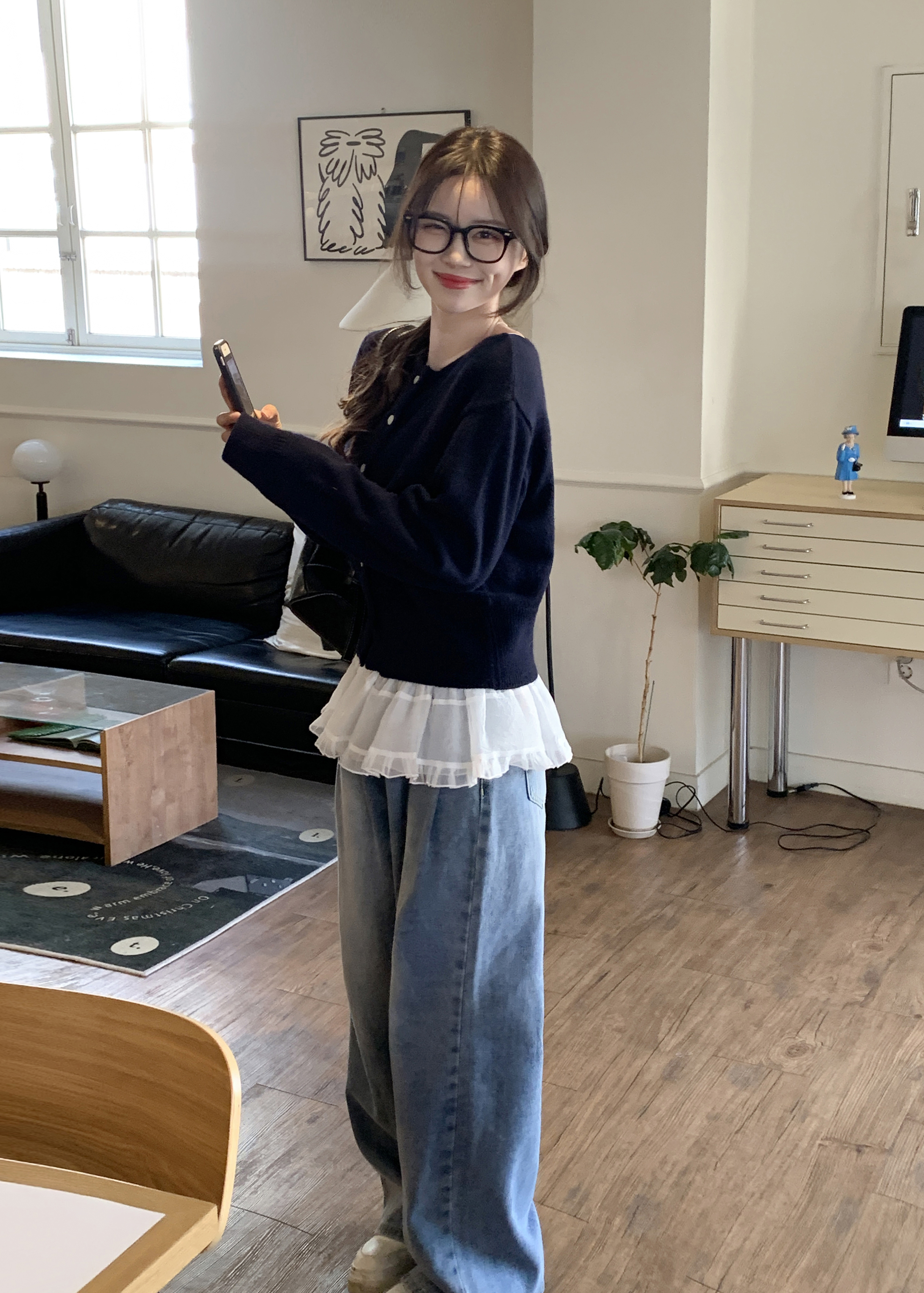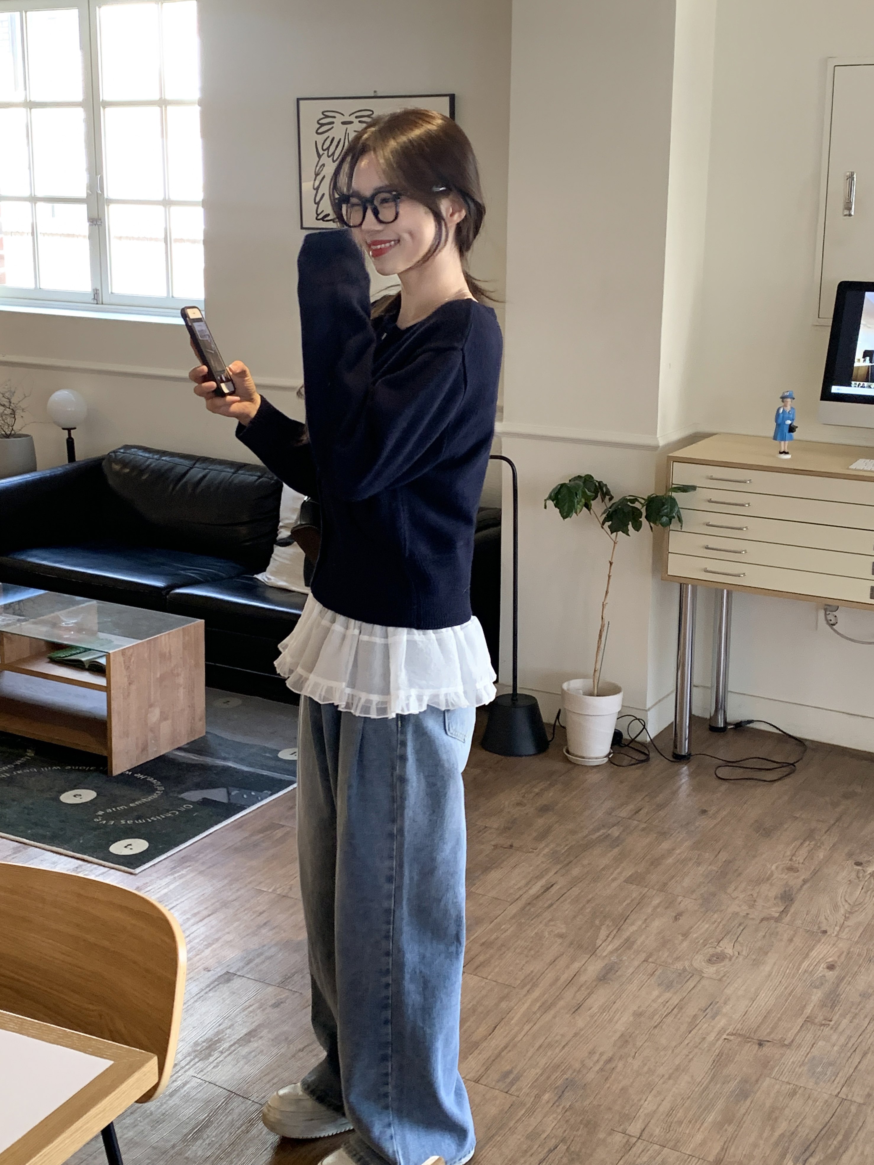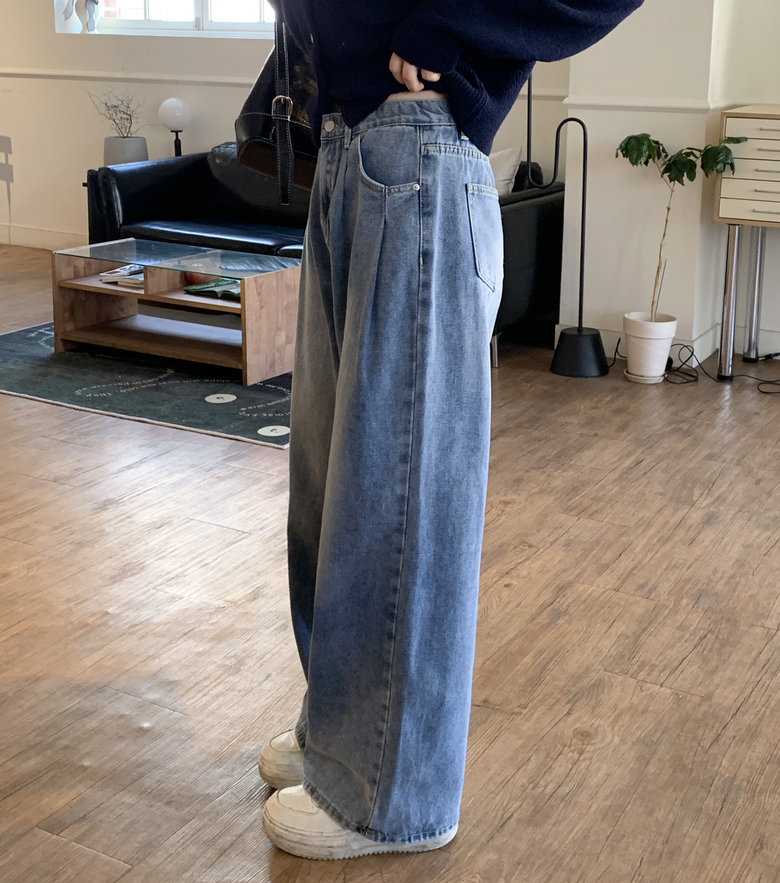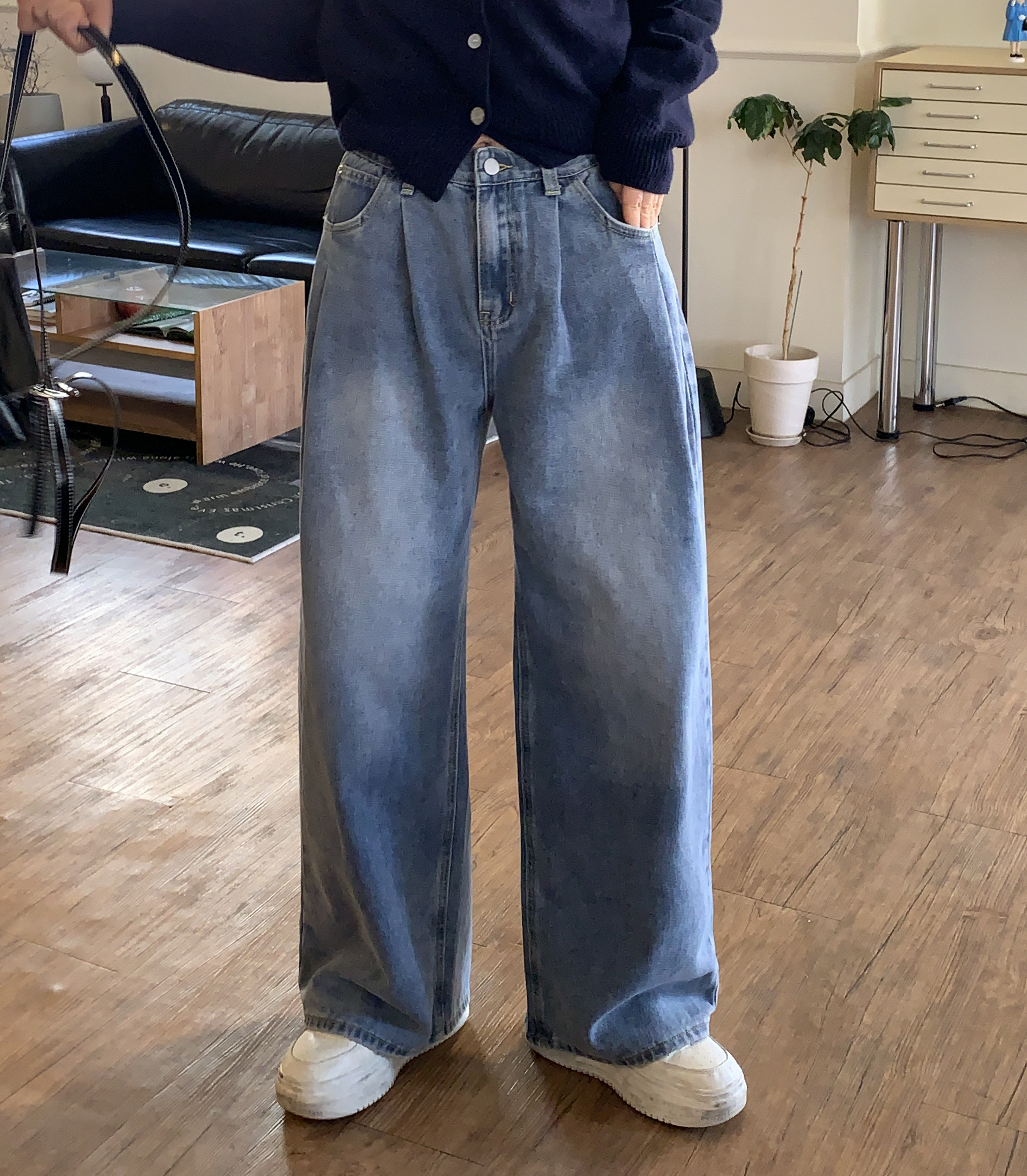 タック入りウォッシュデニムパンツ