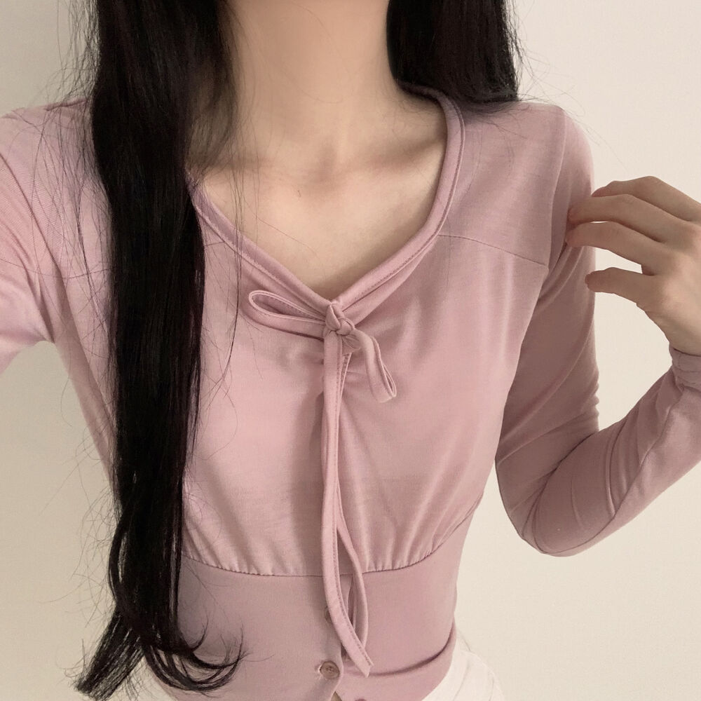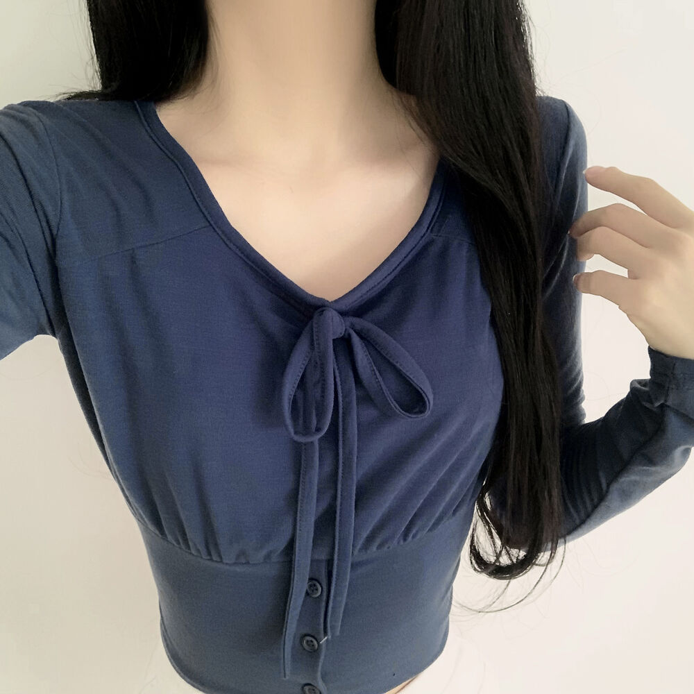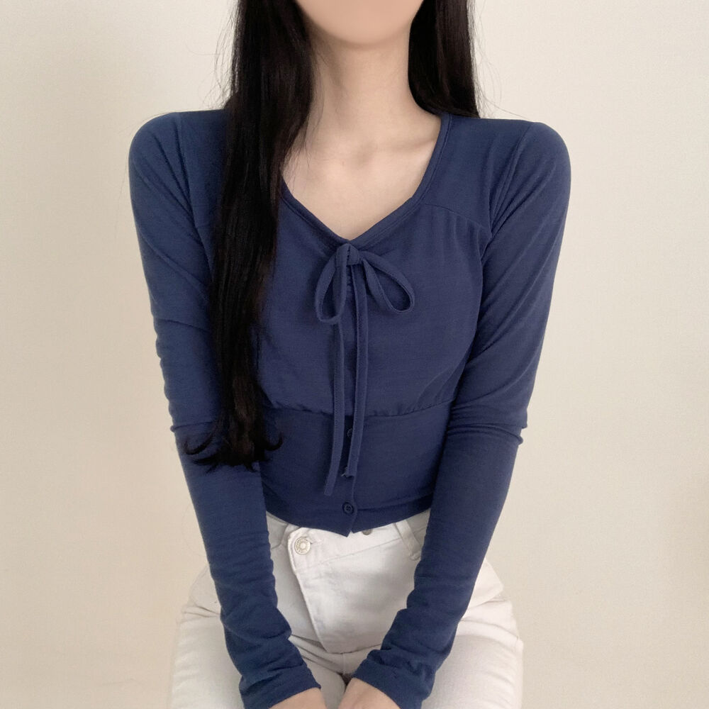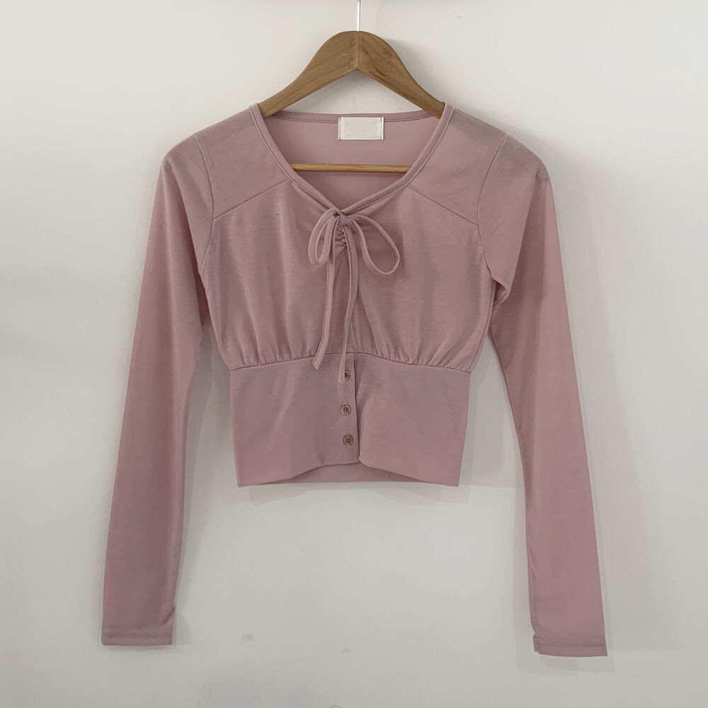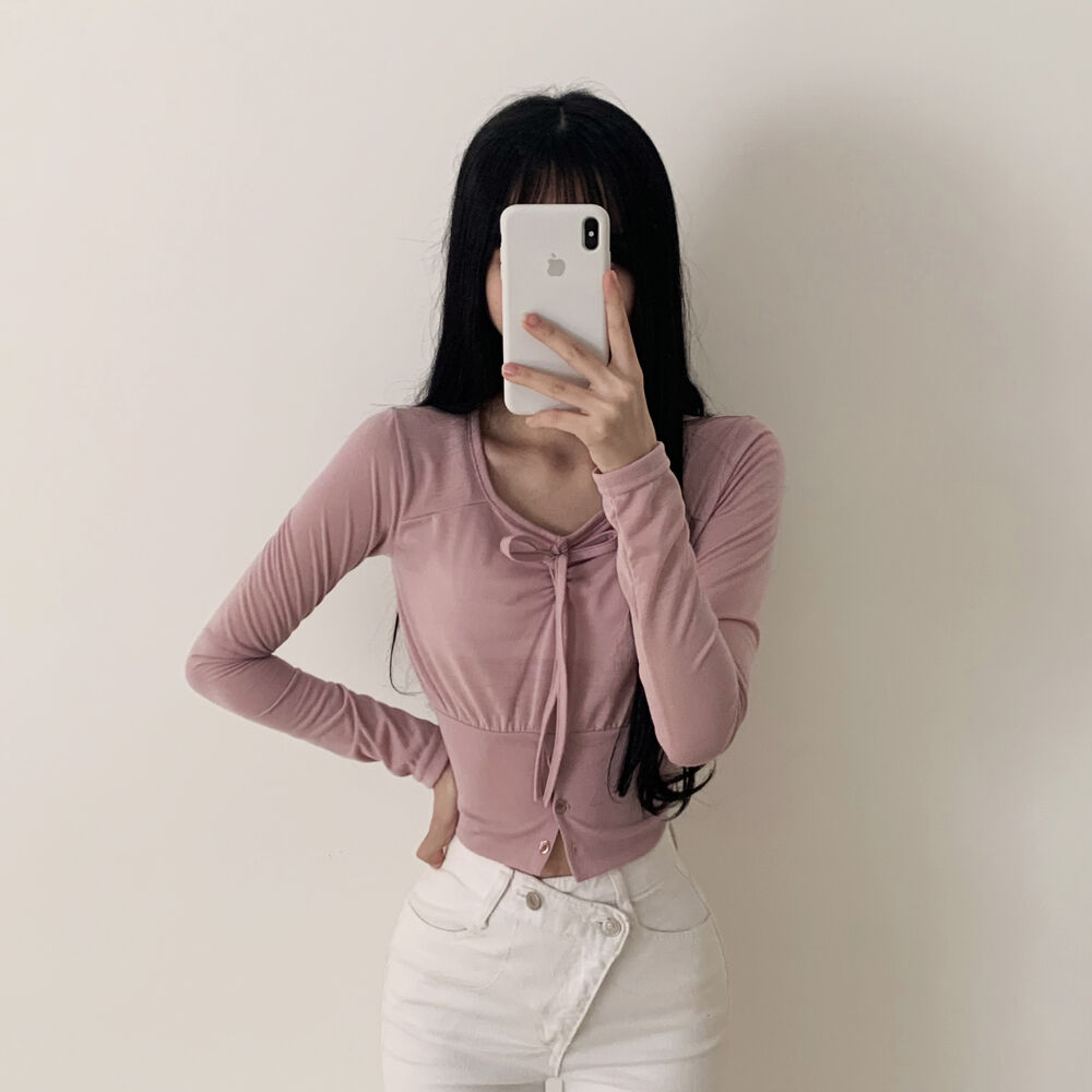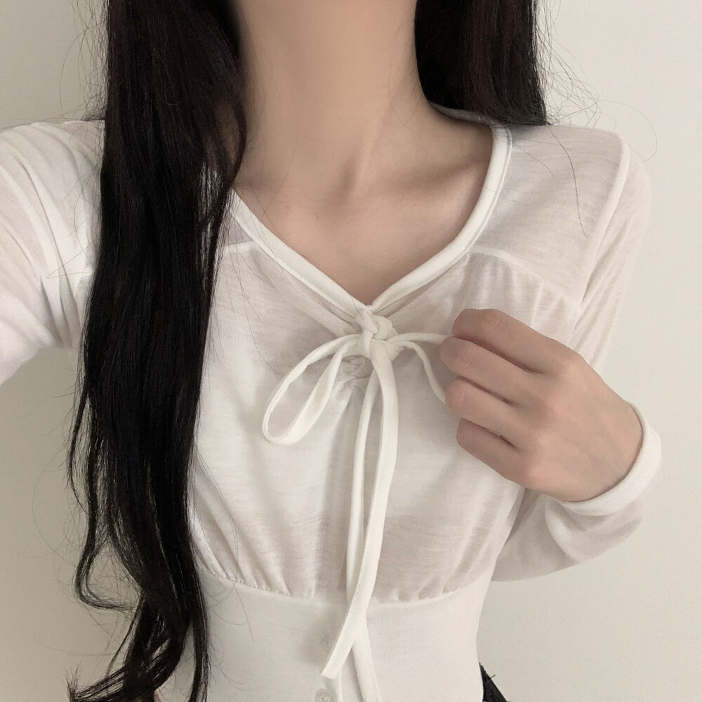ボタンリボン長袖Tシャツ