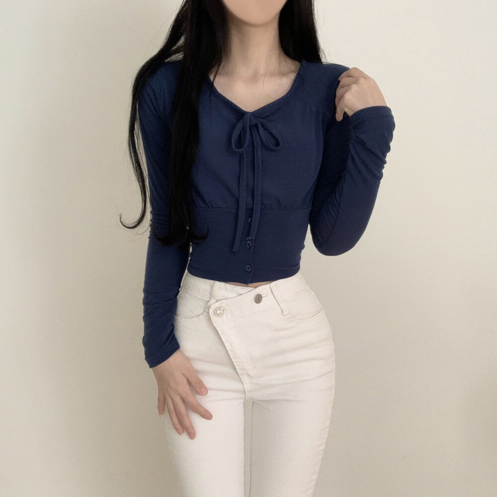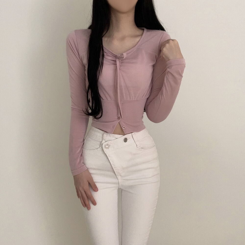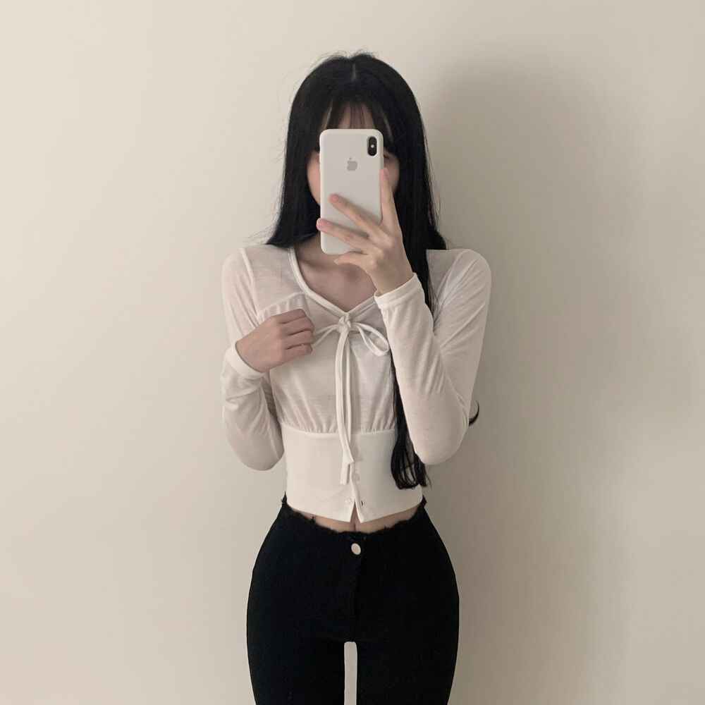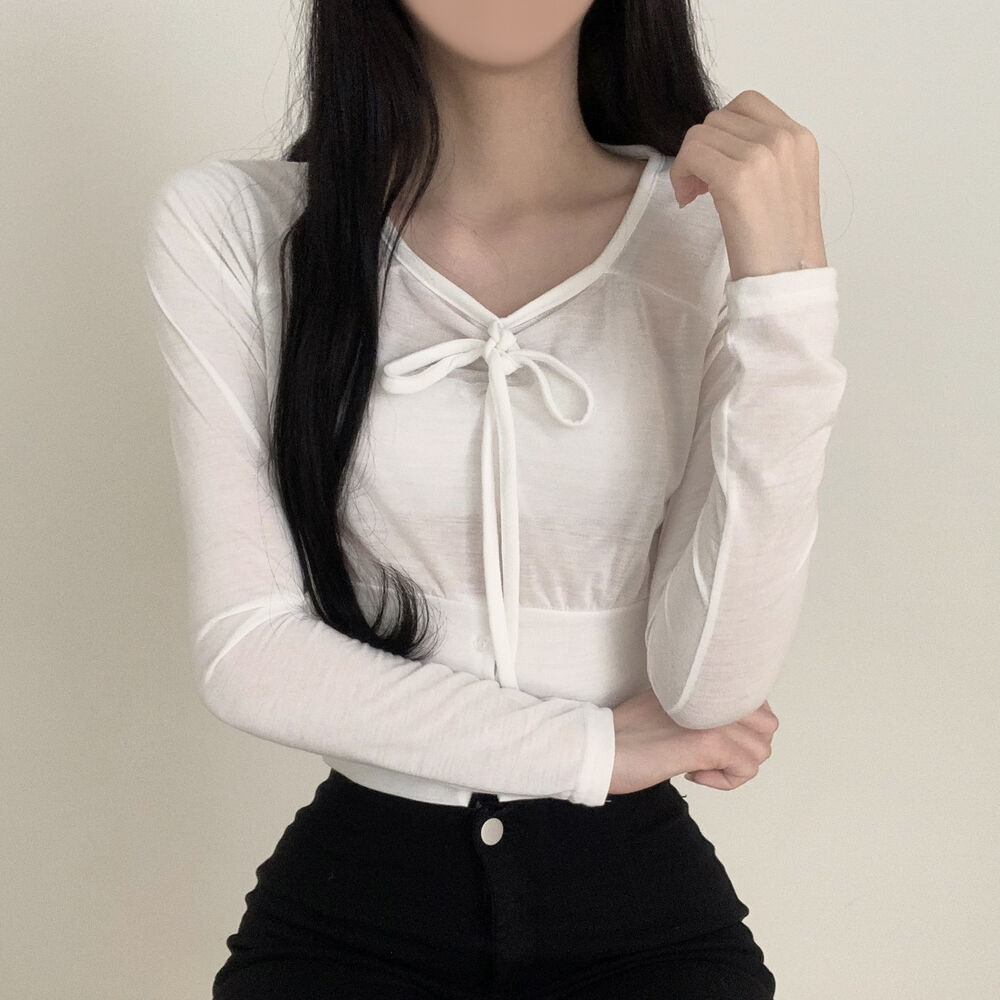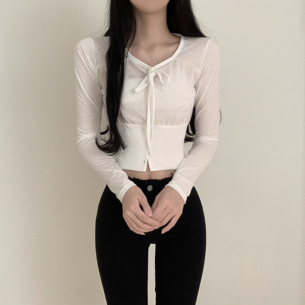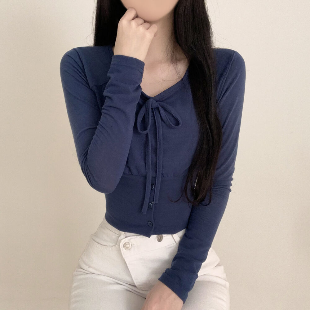 ボタンリボン長袖Tシャツ