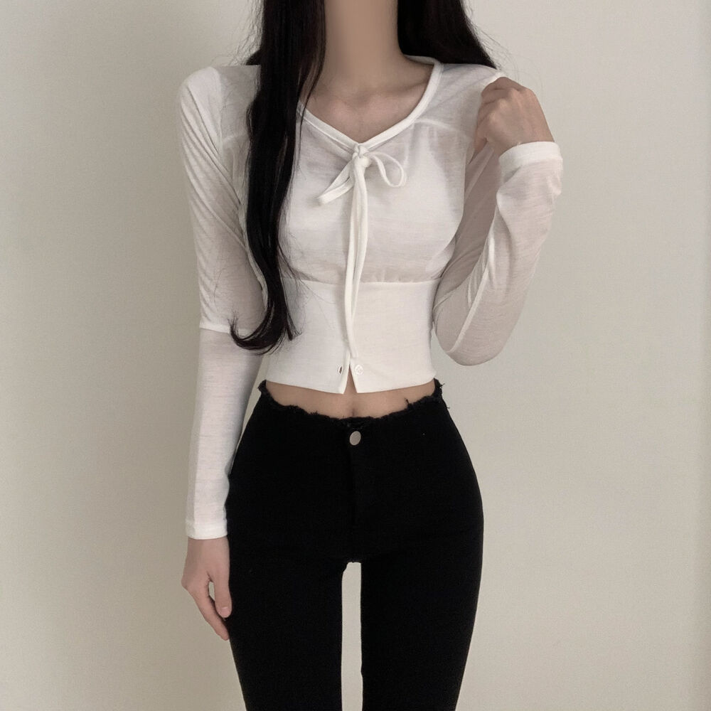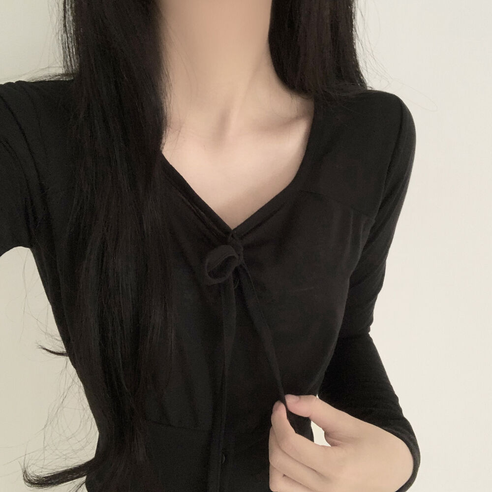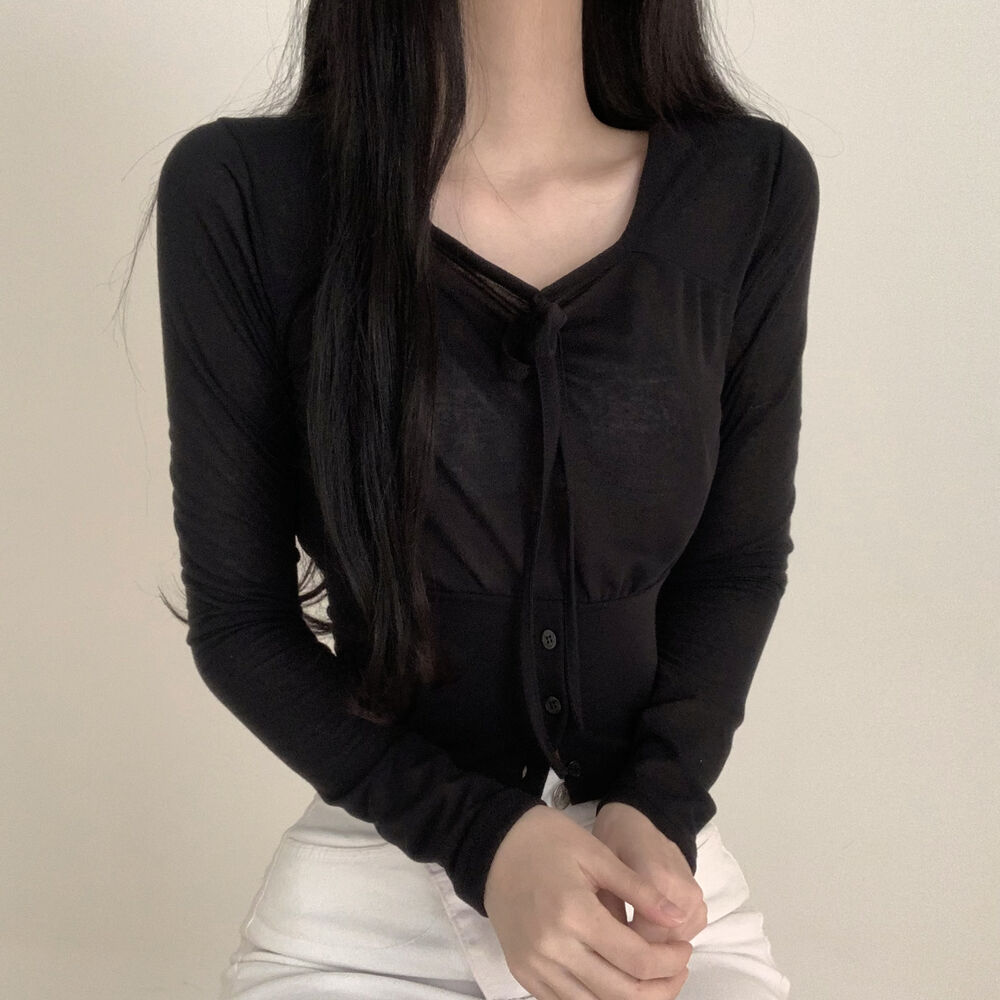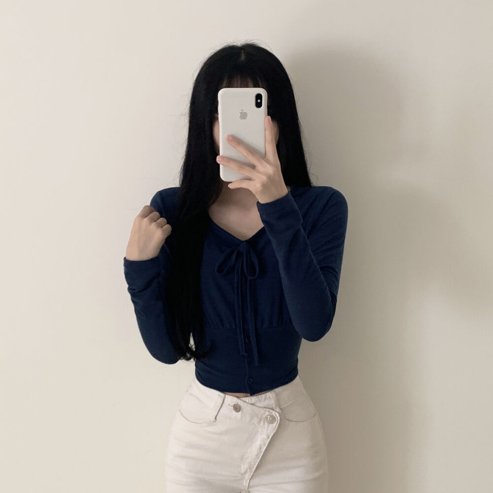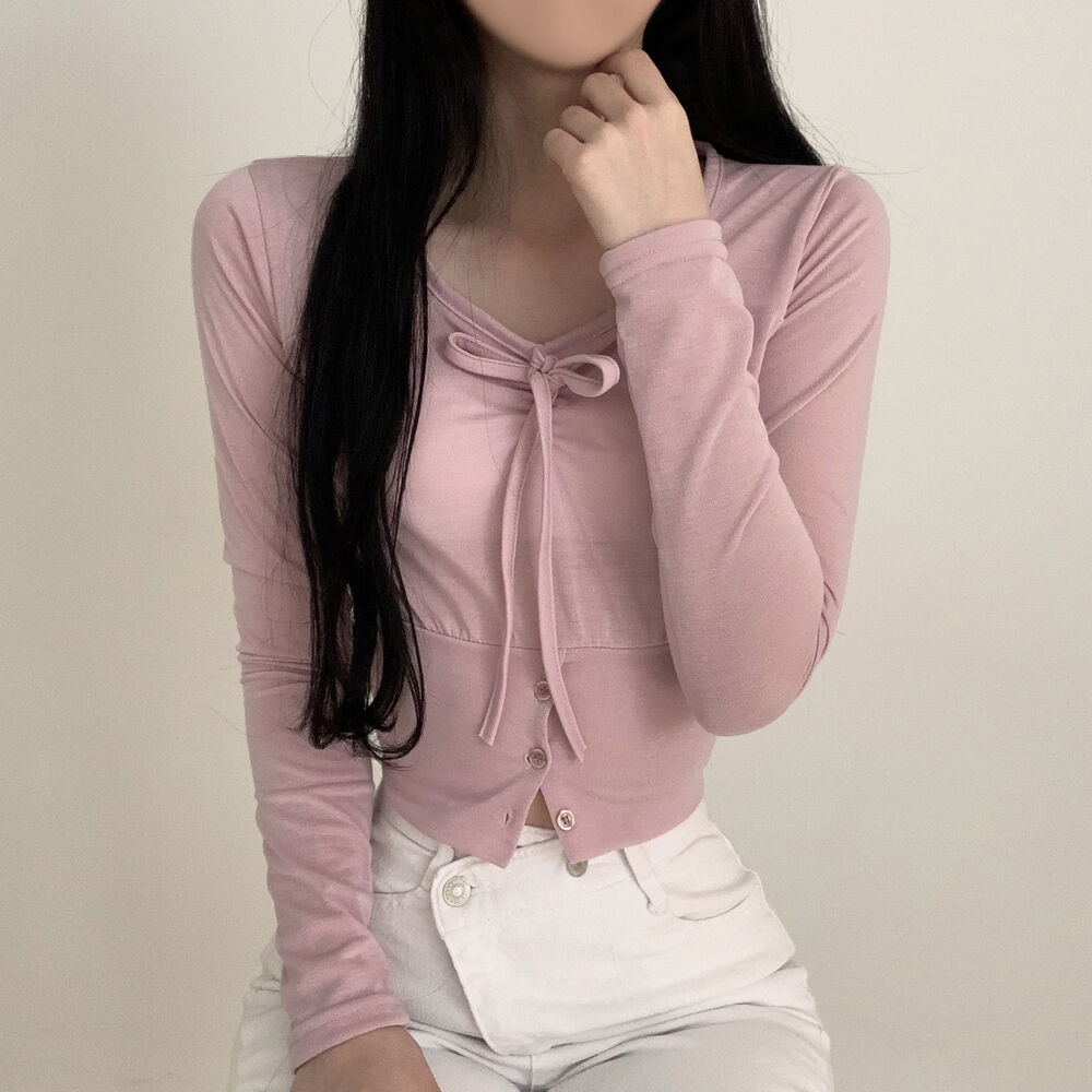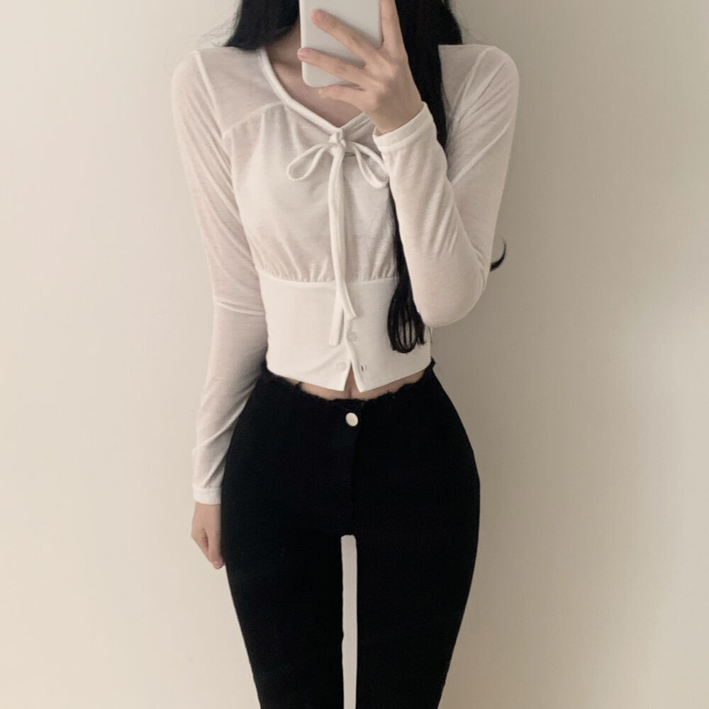 ボタンリボン長袖Tシャツ