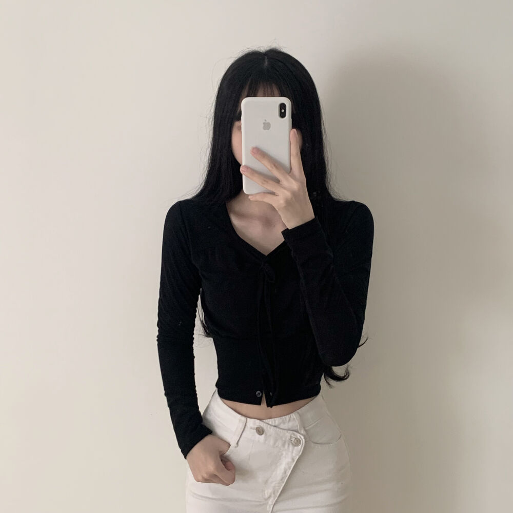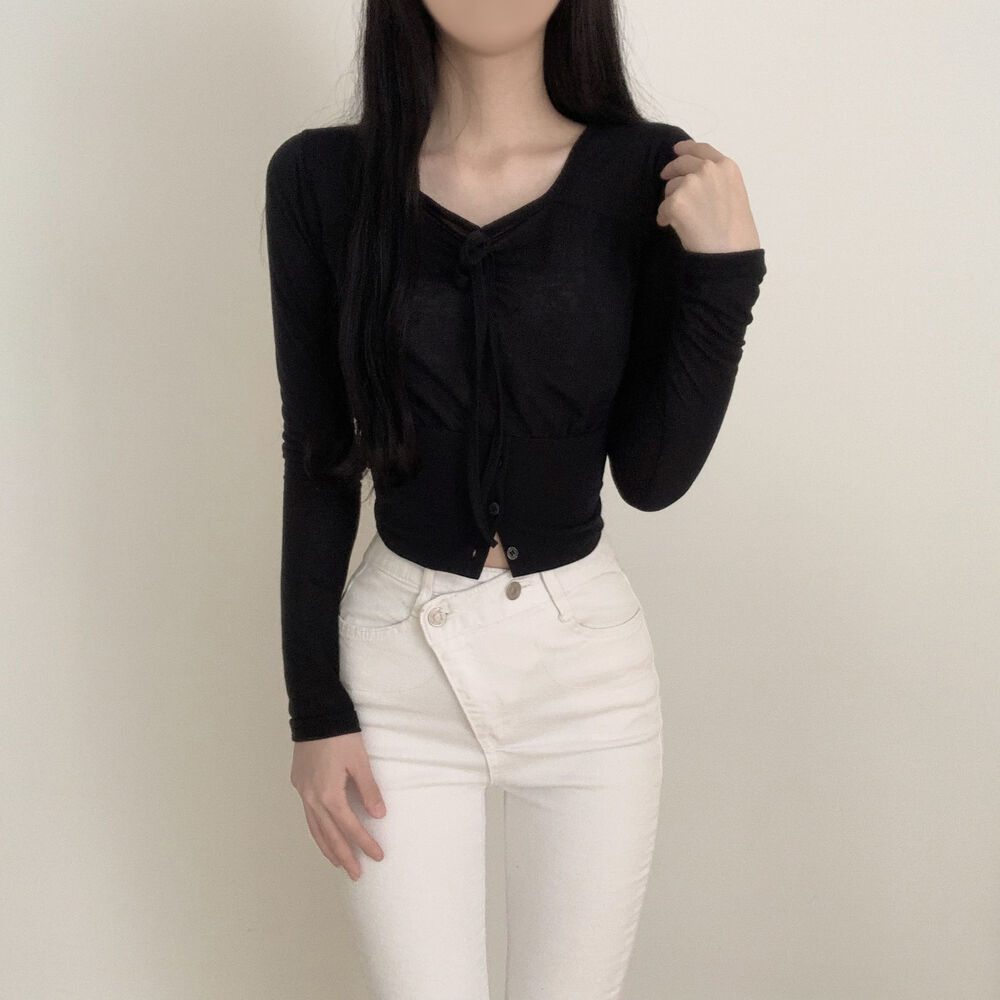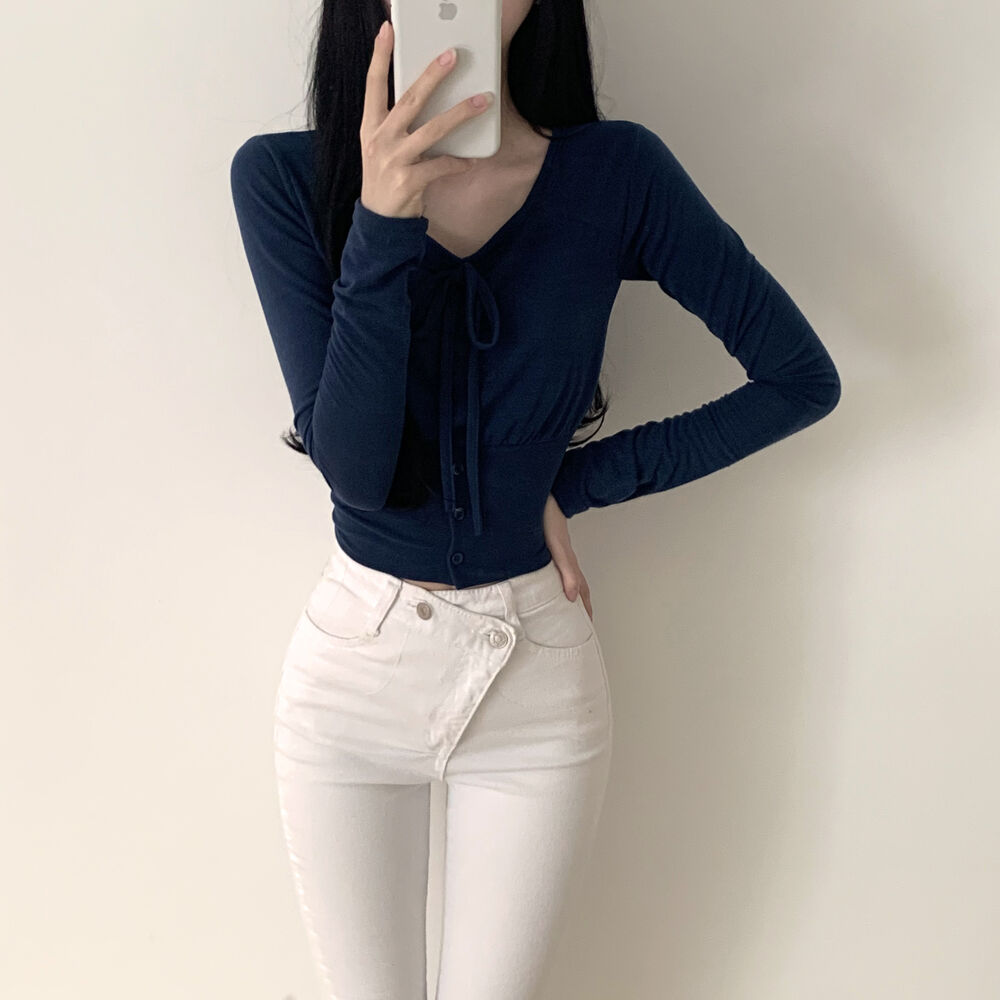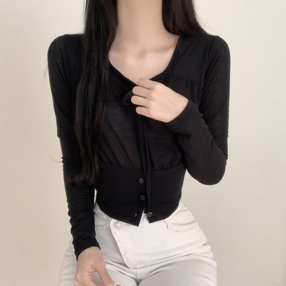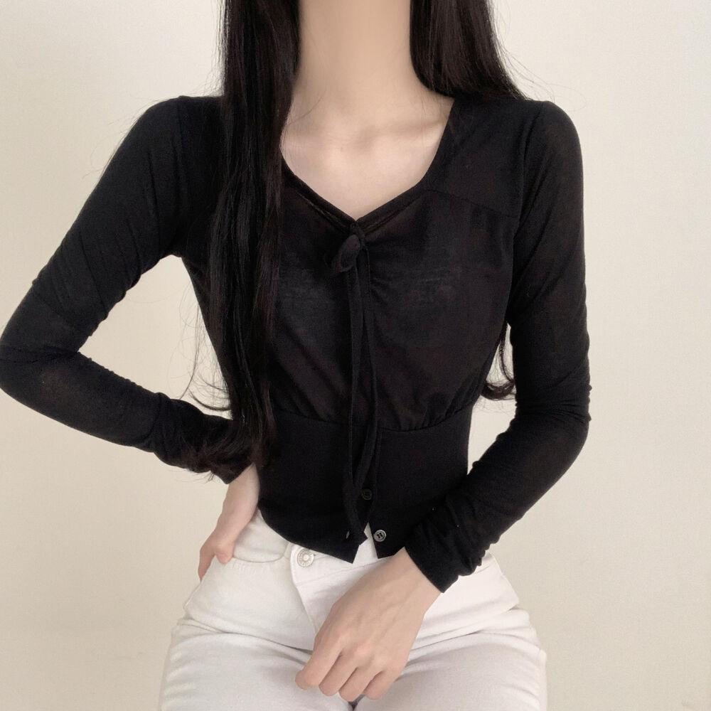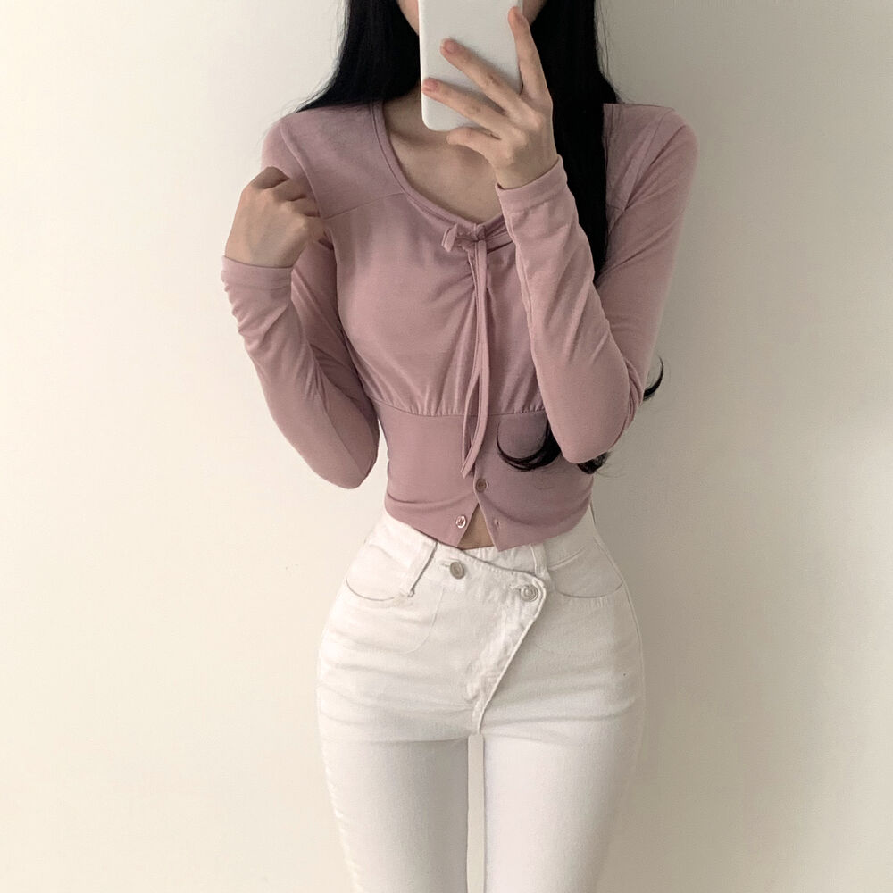 ボタンリボン長袖Tシャツ