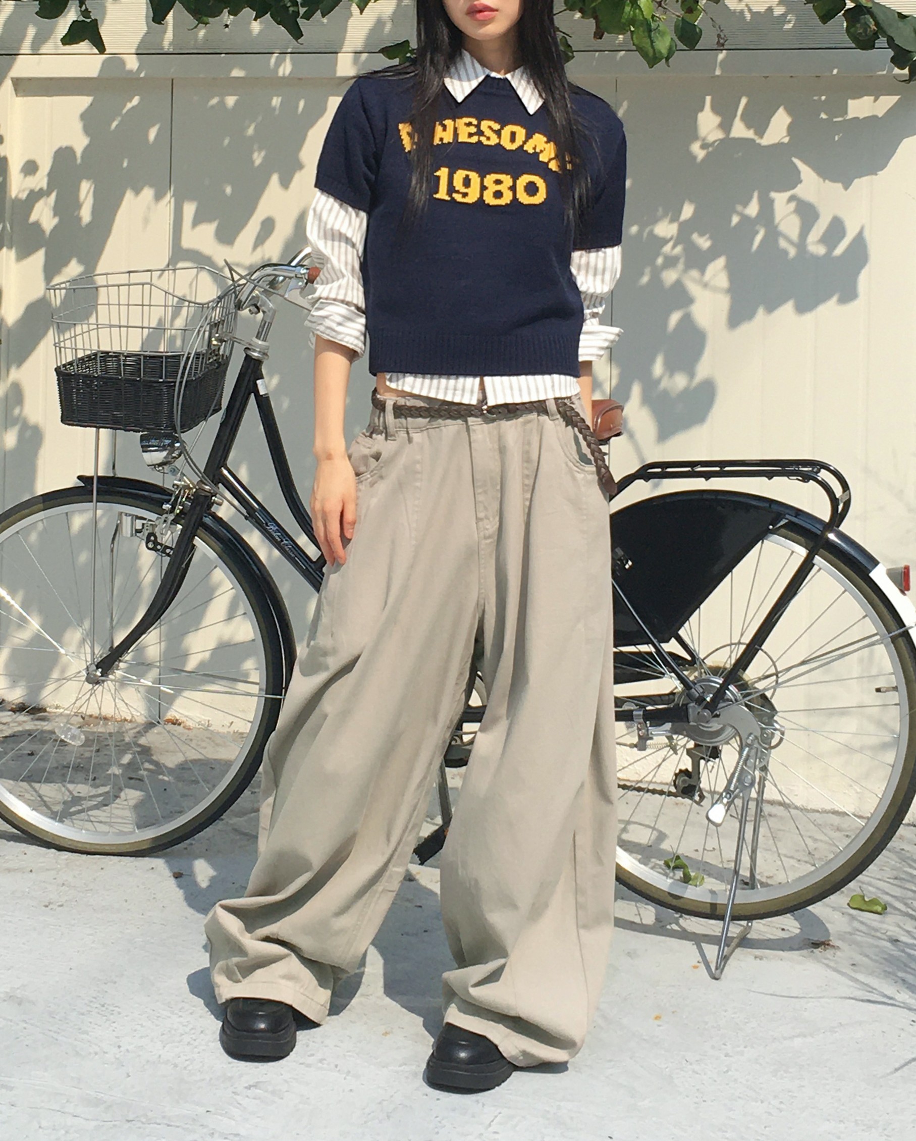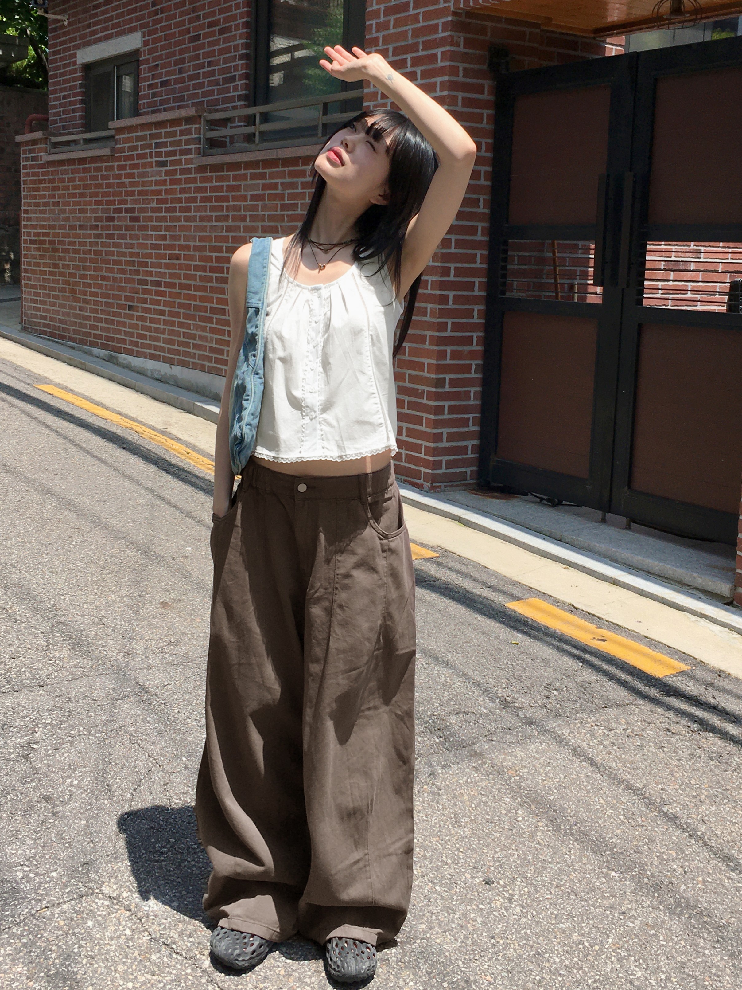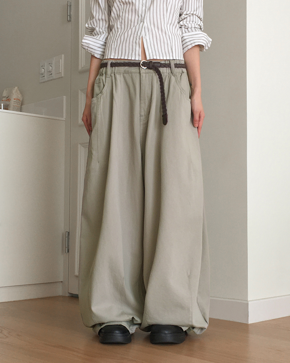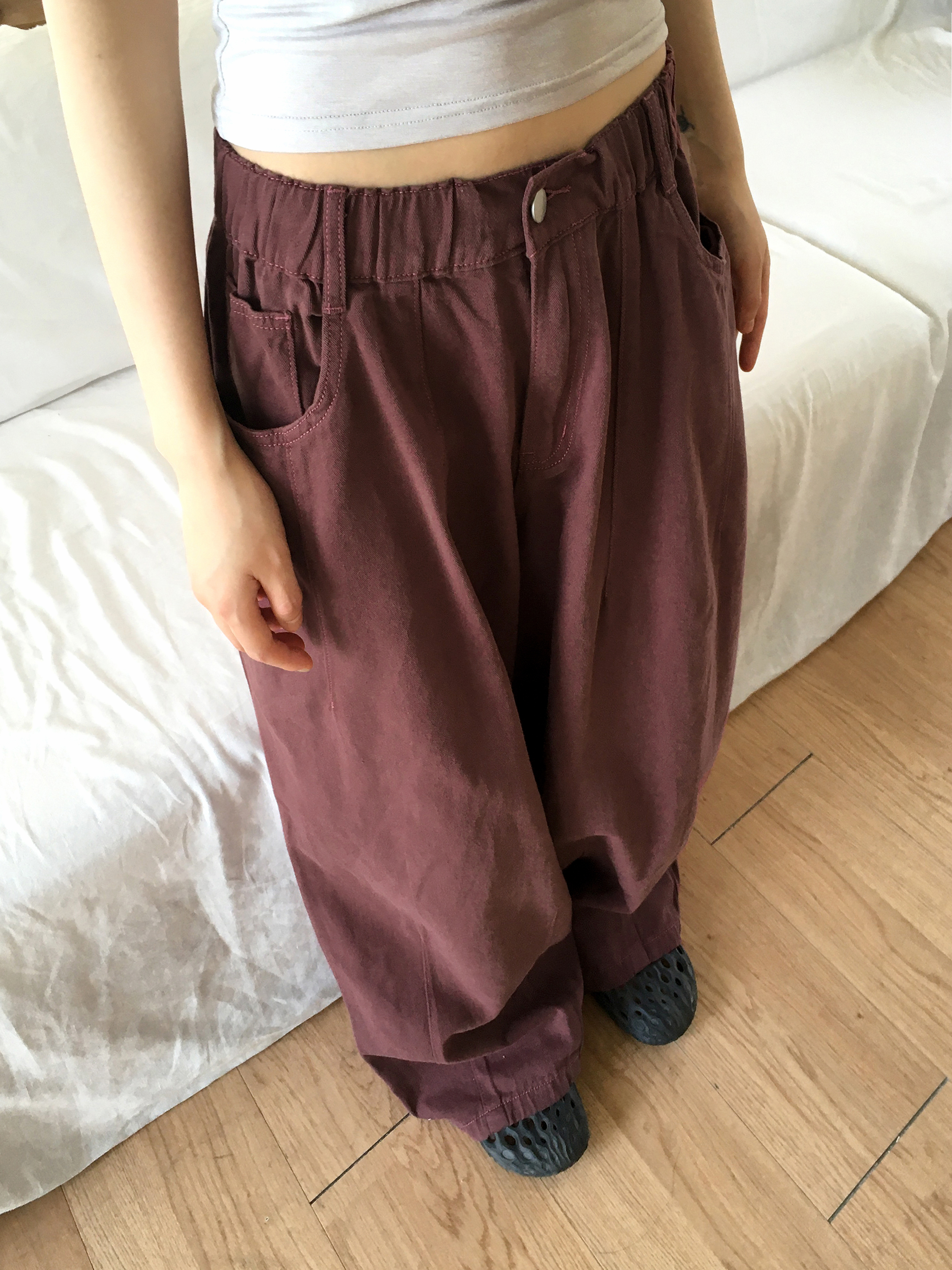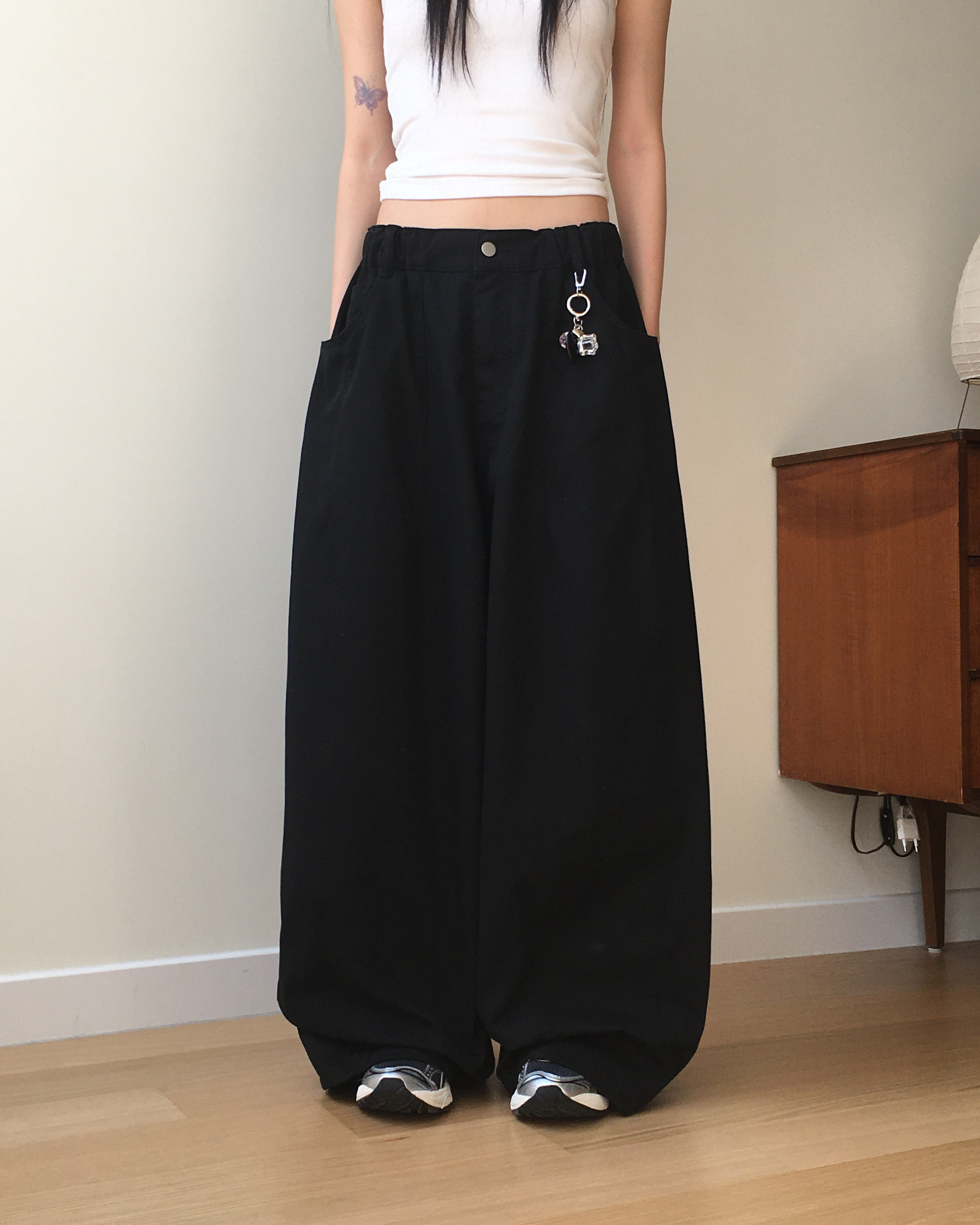 [original] シモ ピグメントスリットバルーンコットンロングワイドゴムパンツ