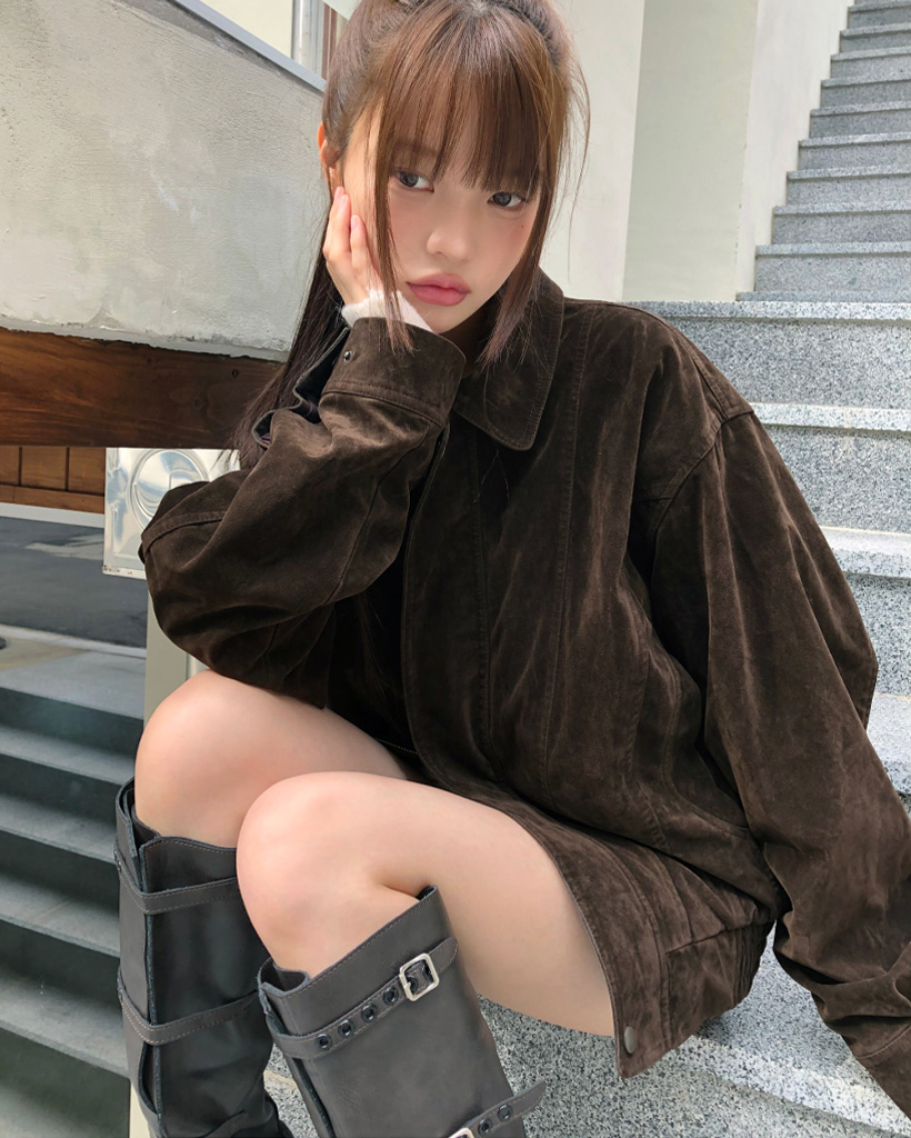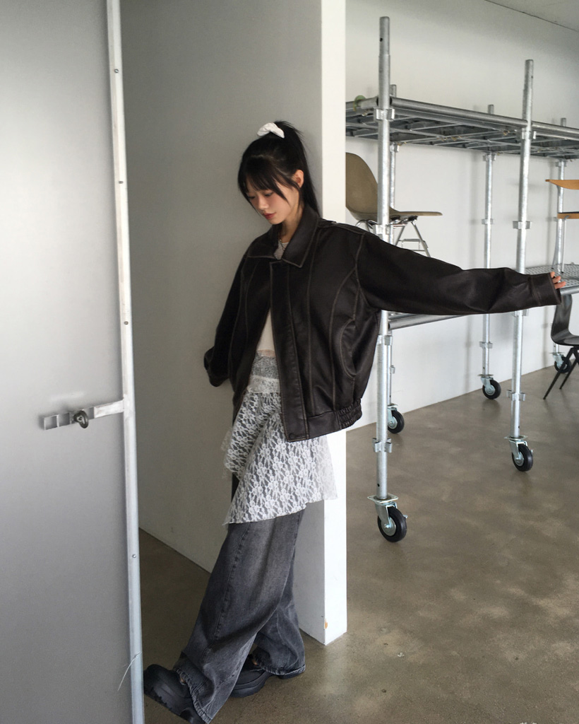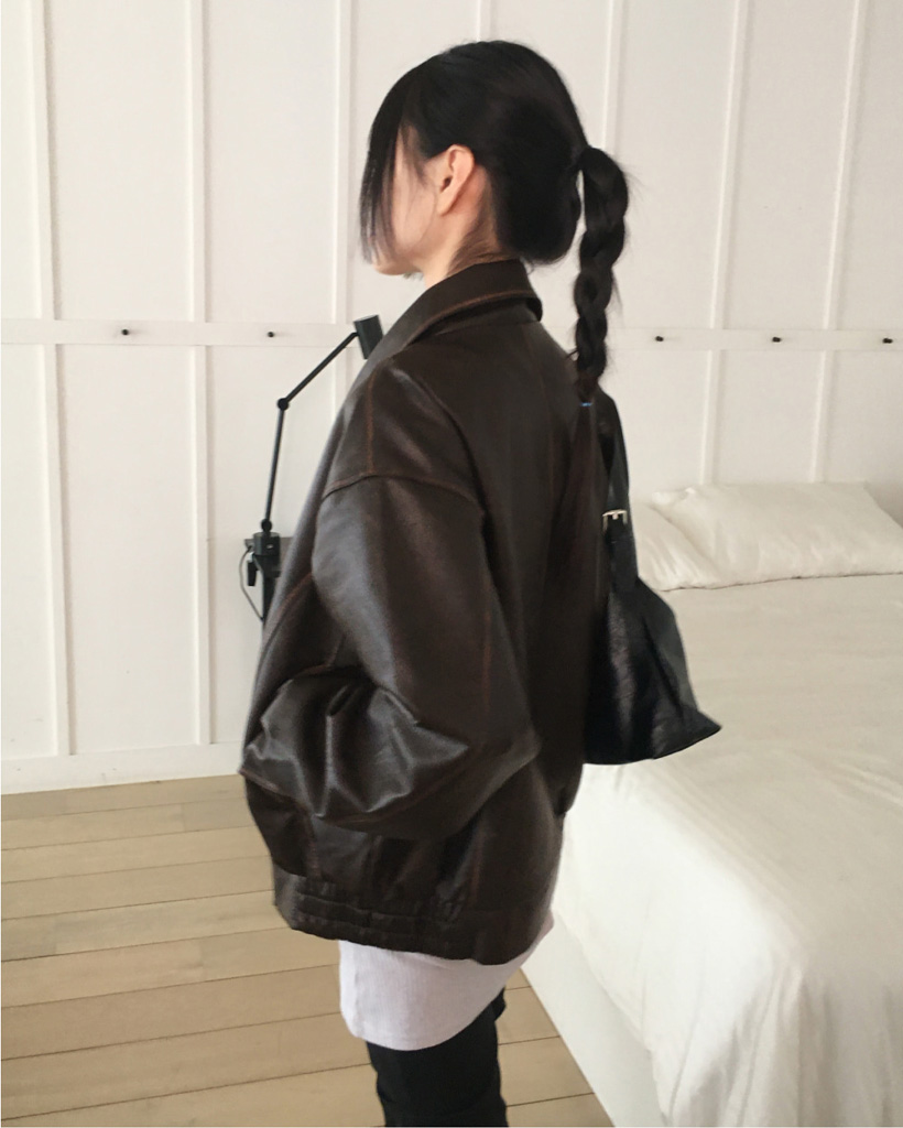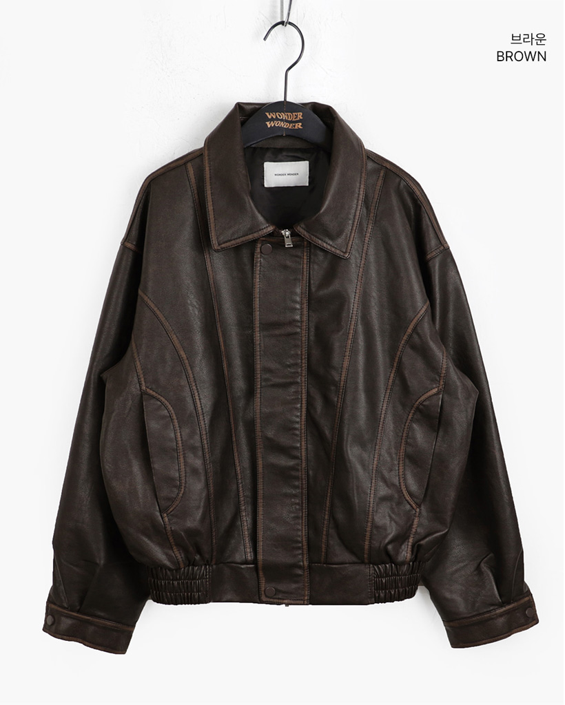 [original] ヴィンテージウォッシュスリットオーバーサイズレザージャケット