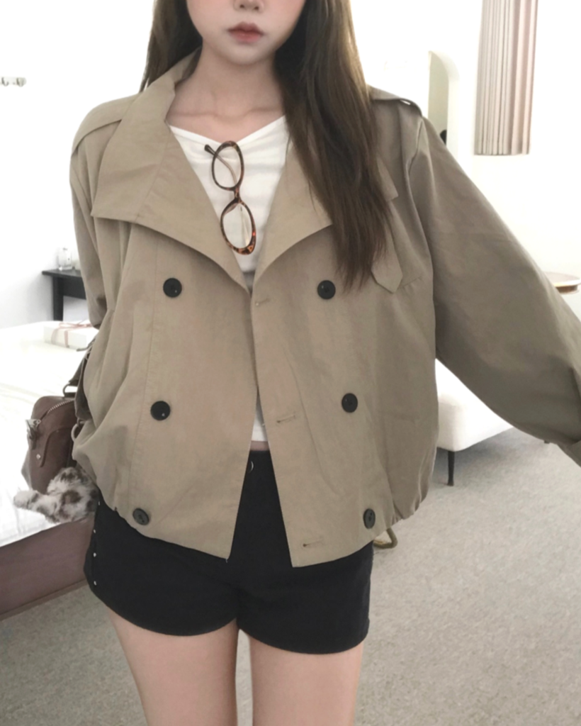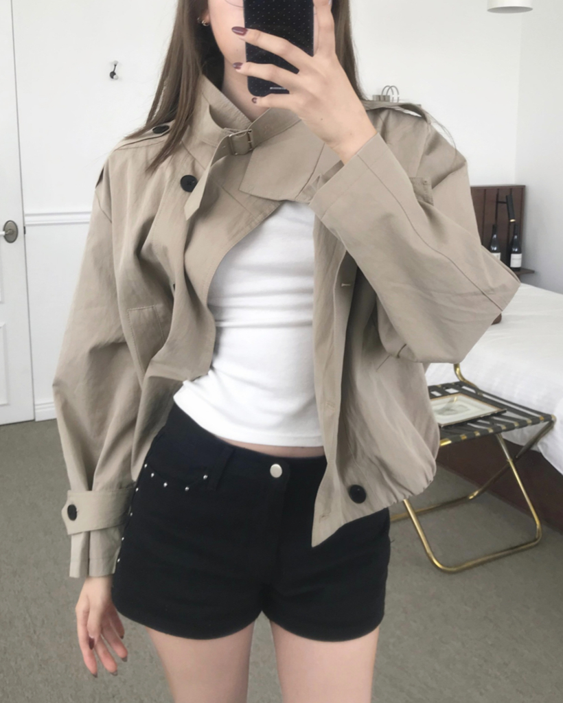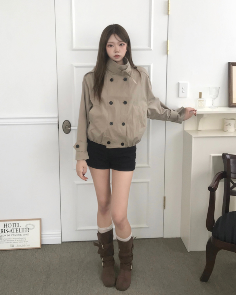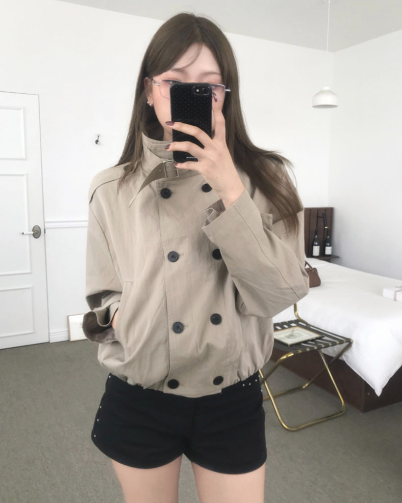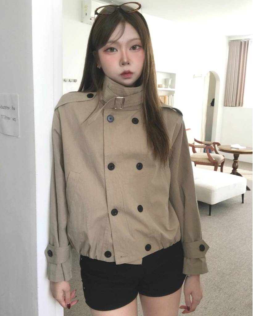 HIGH-NECK CROP TRENCH COAT (2color)