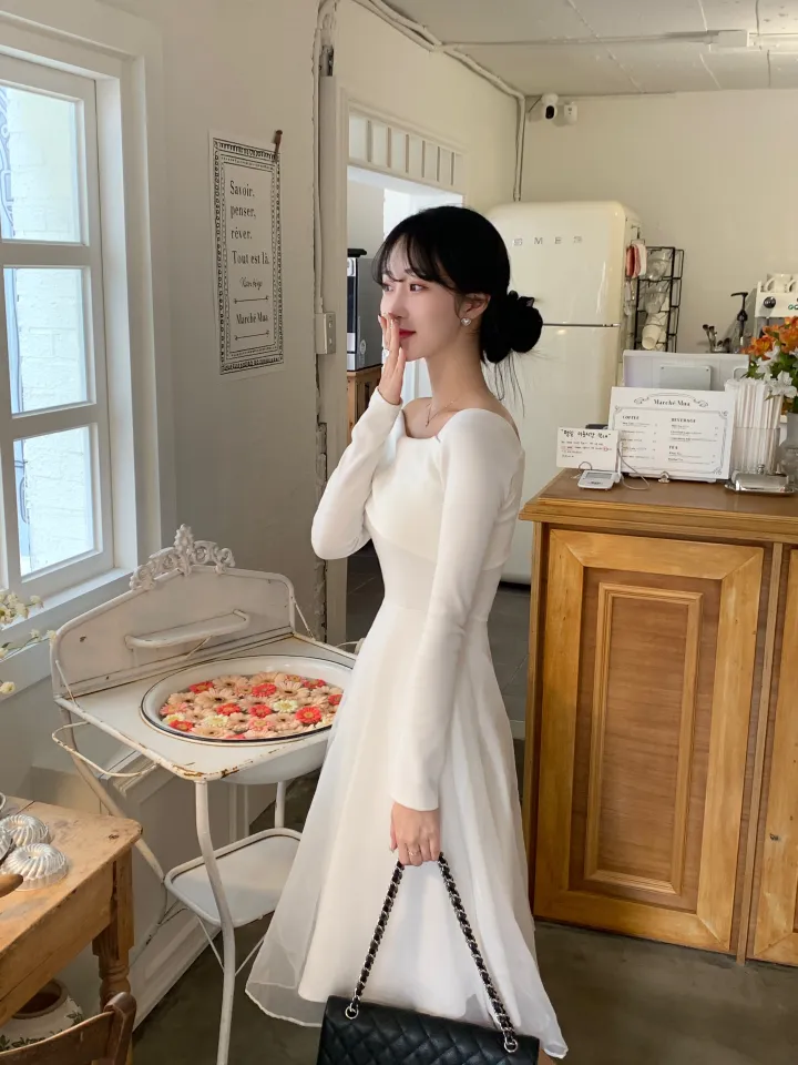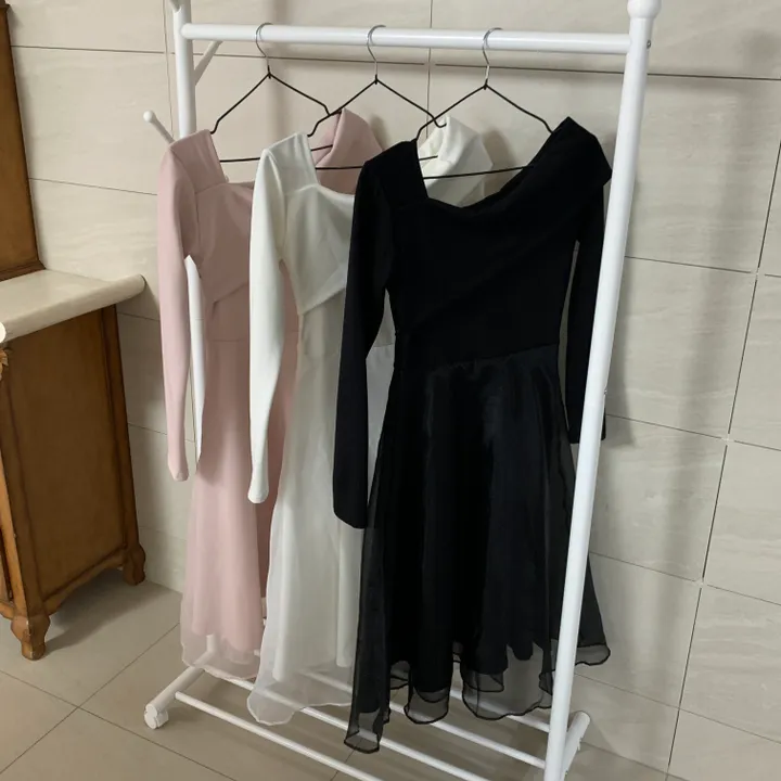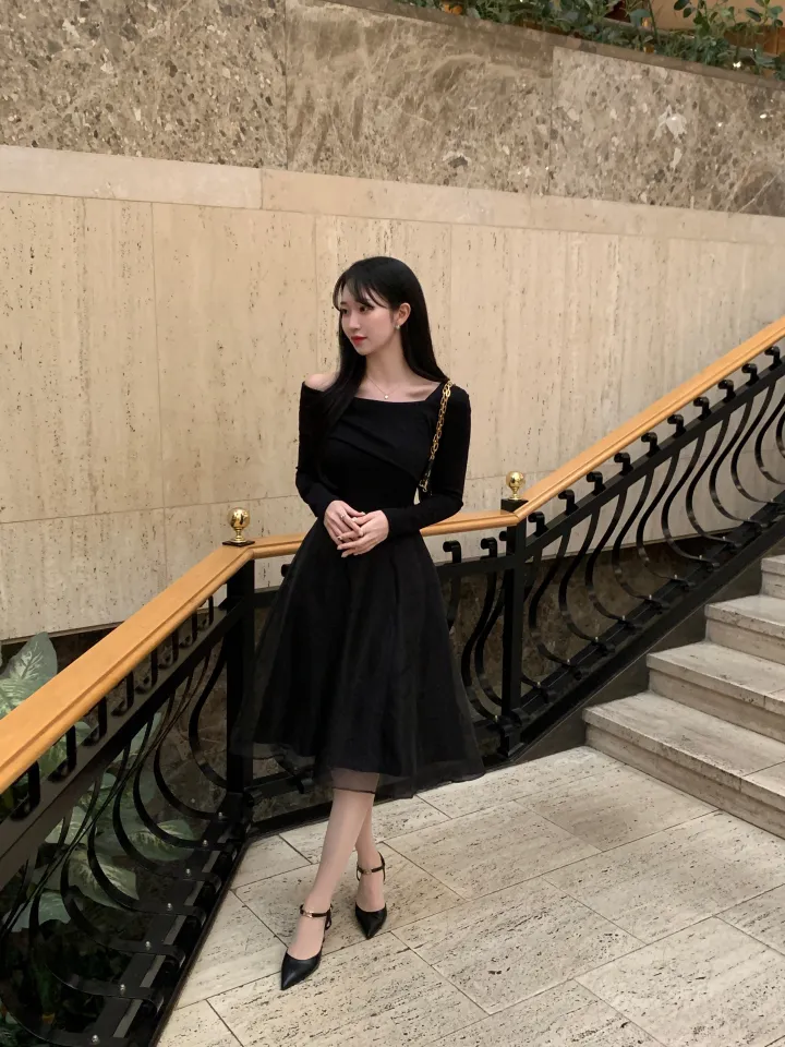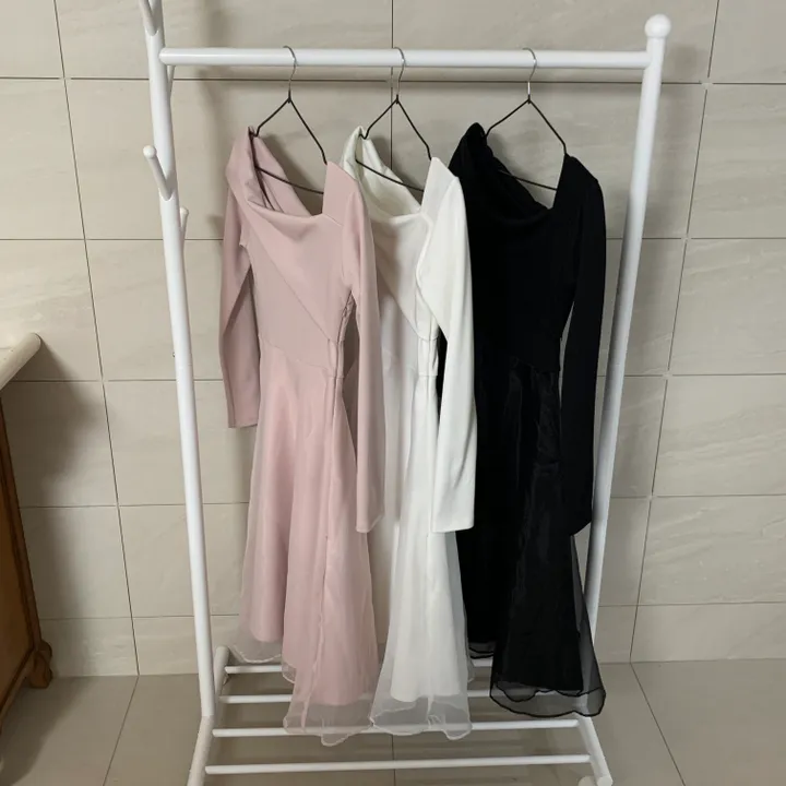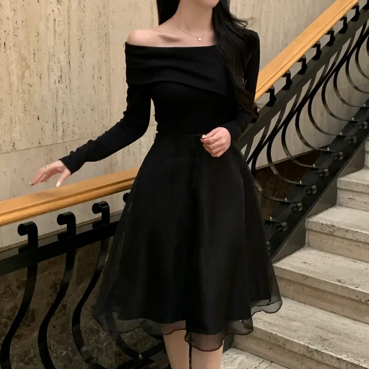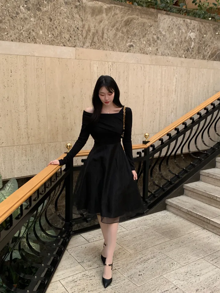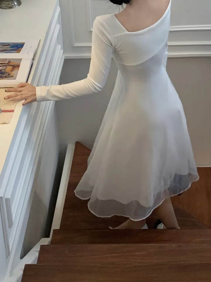 アシンメトリーオフショルシフォンロングフレアワンピース
