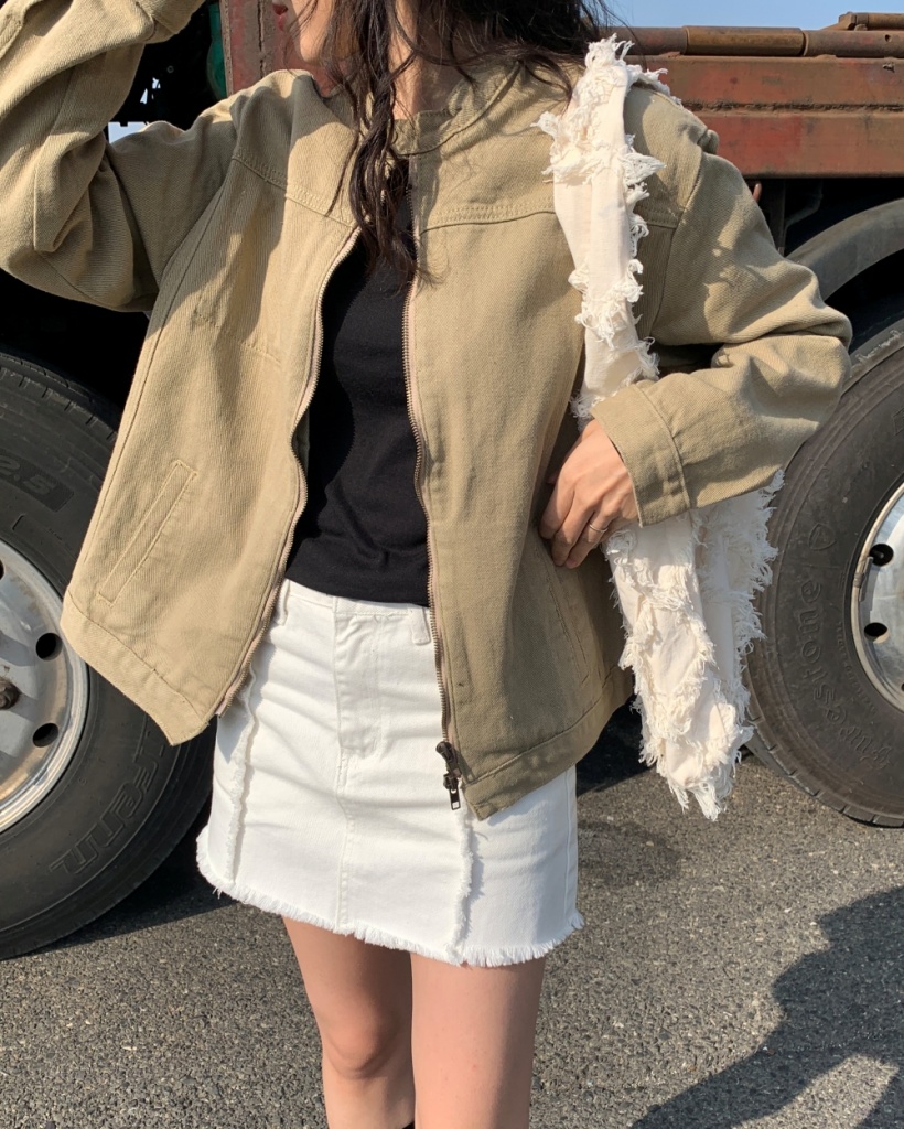 ヴィンテージノーカラーオーバーサイズブルゾン/MA-1
