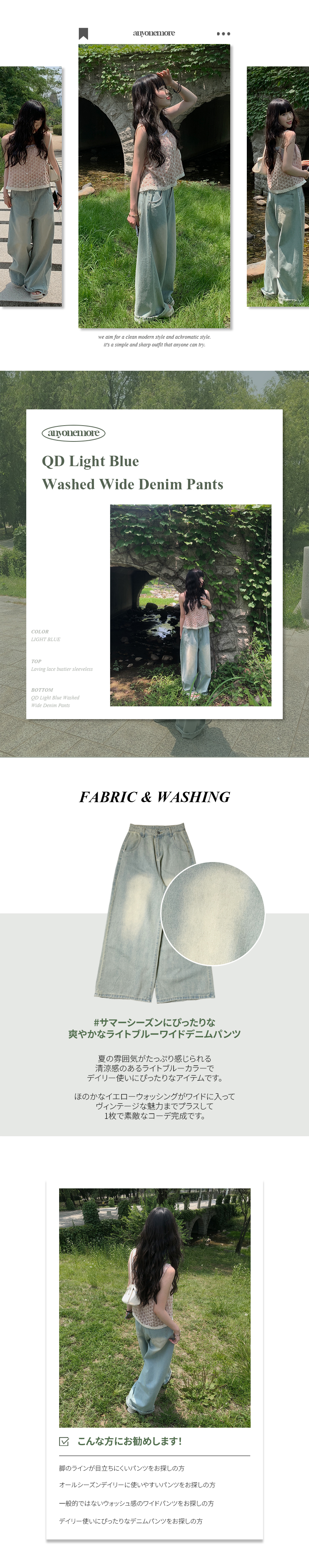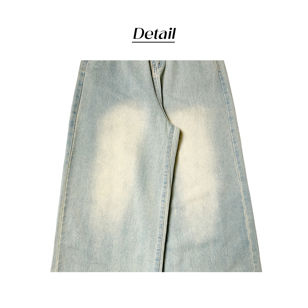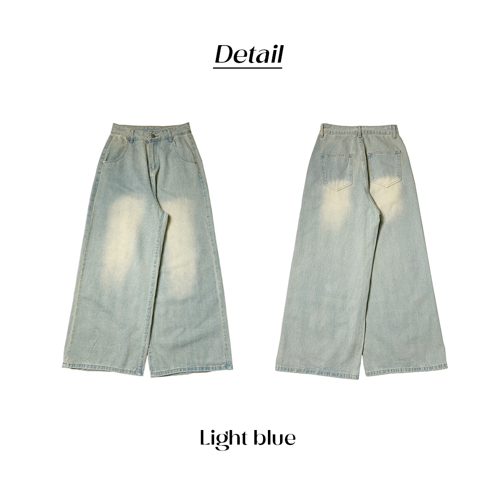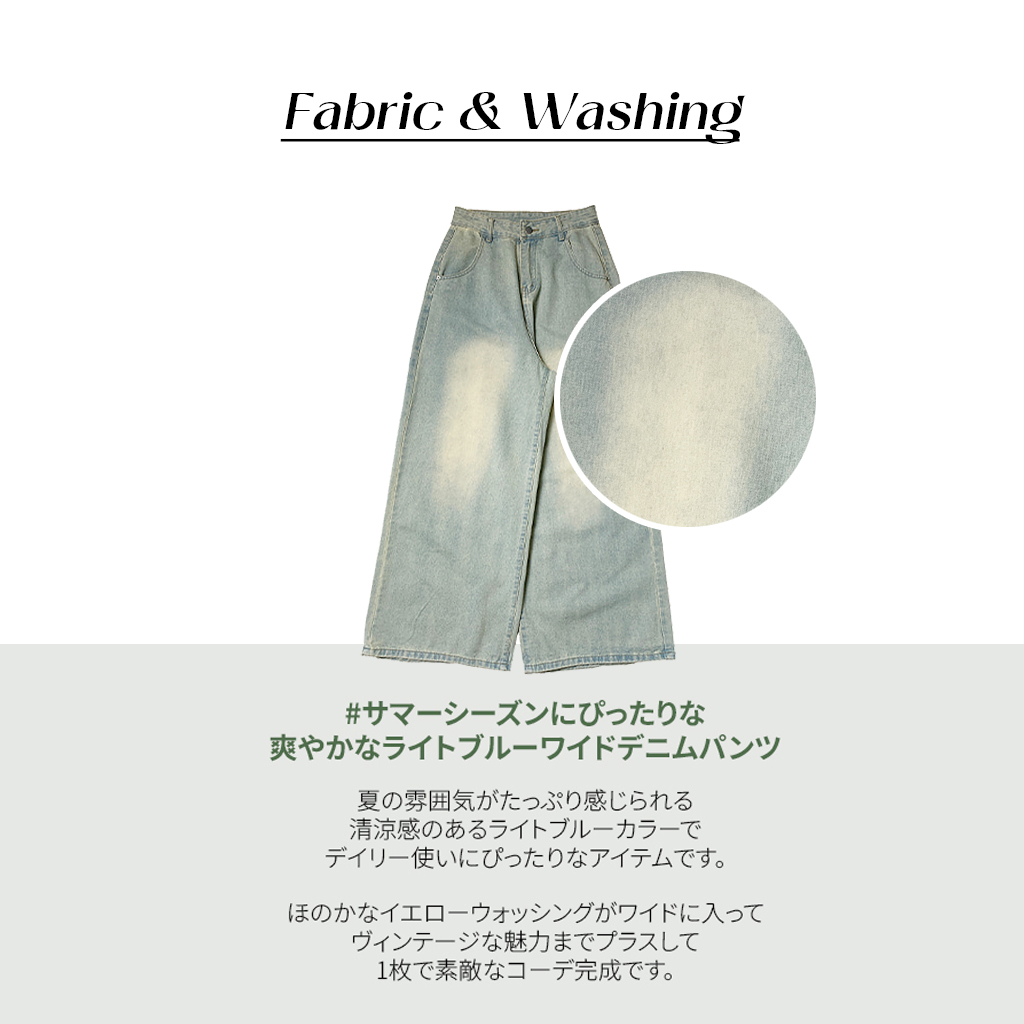 [original] ライトブルーワイドストレートロングデニムパンツ