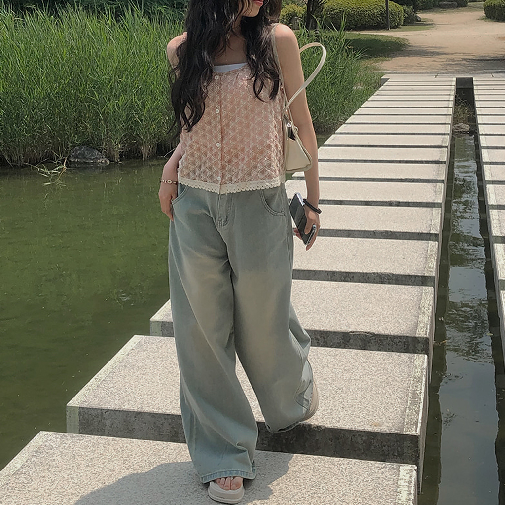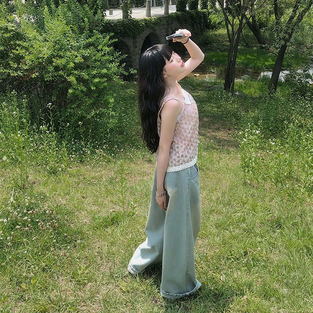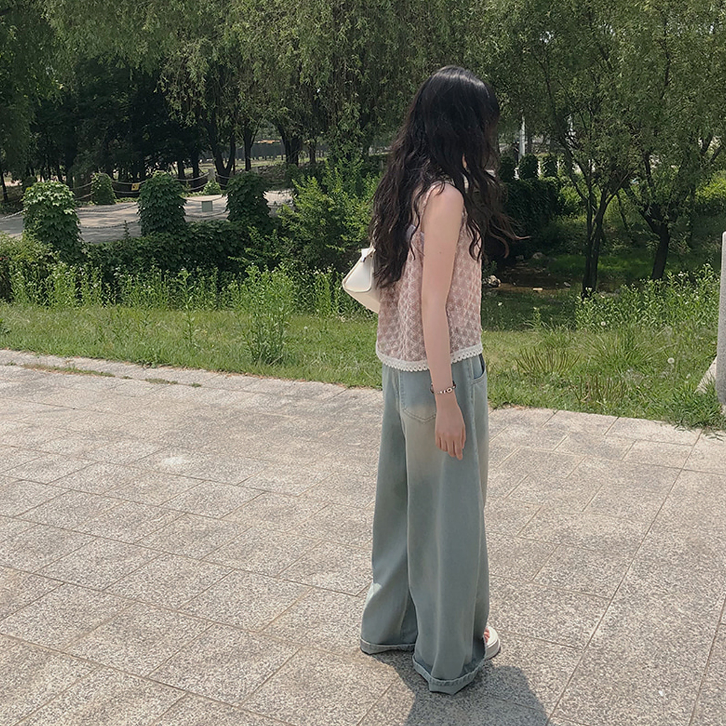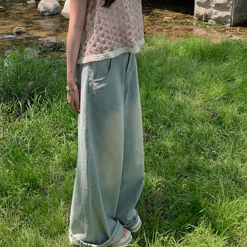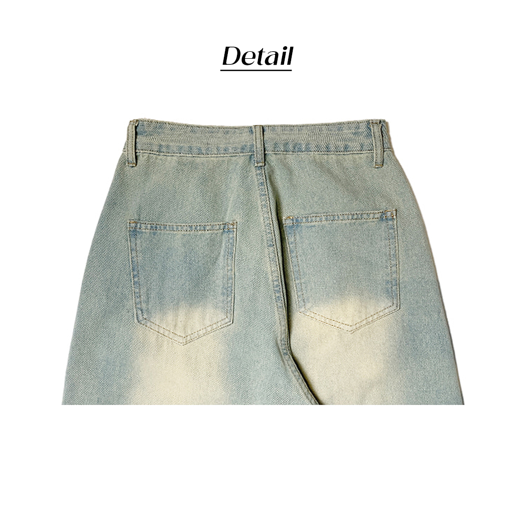 [original] ライトブルーワイドストレートロングデニムパンツ