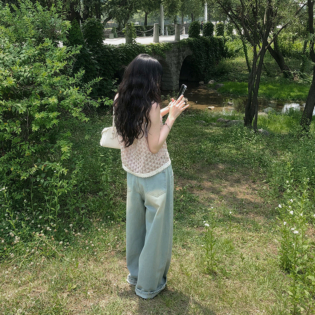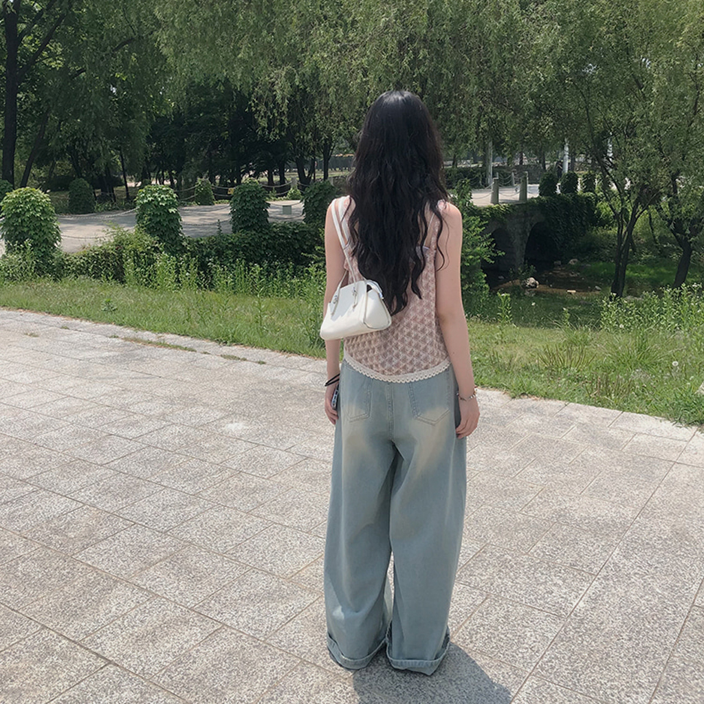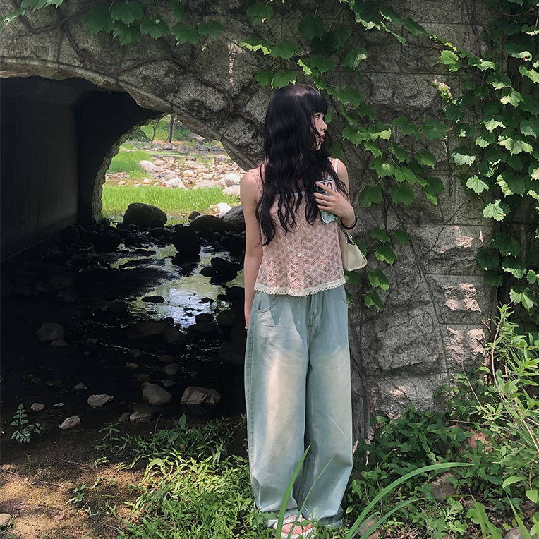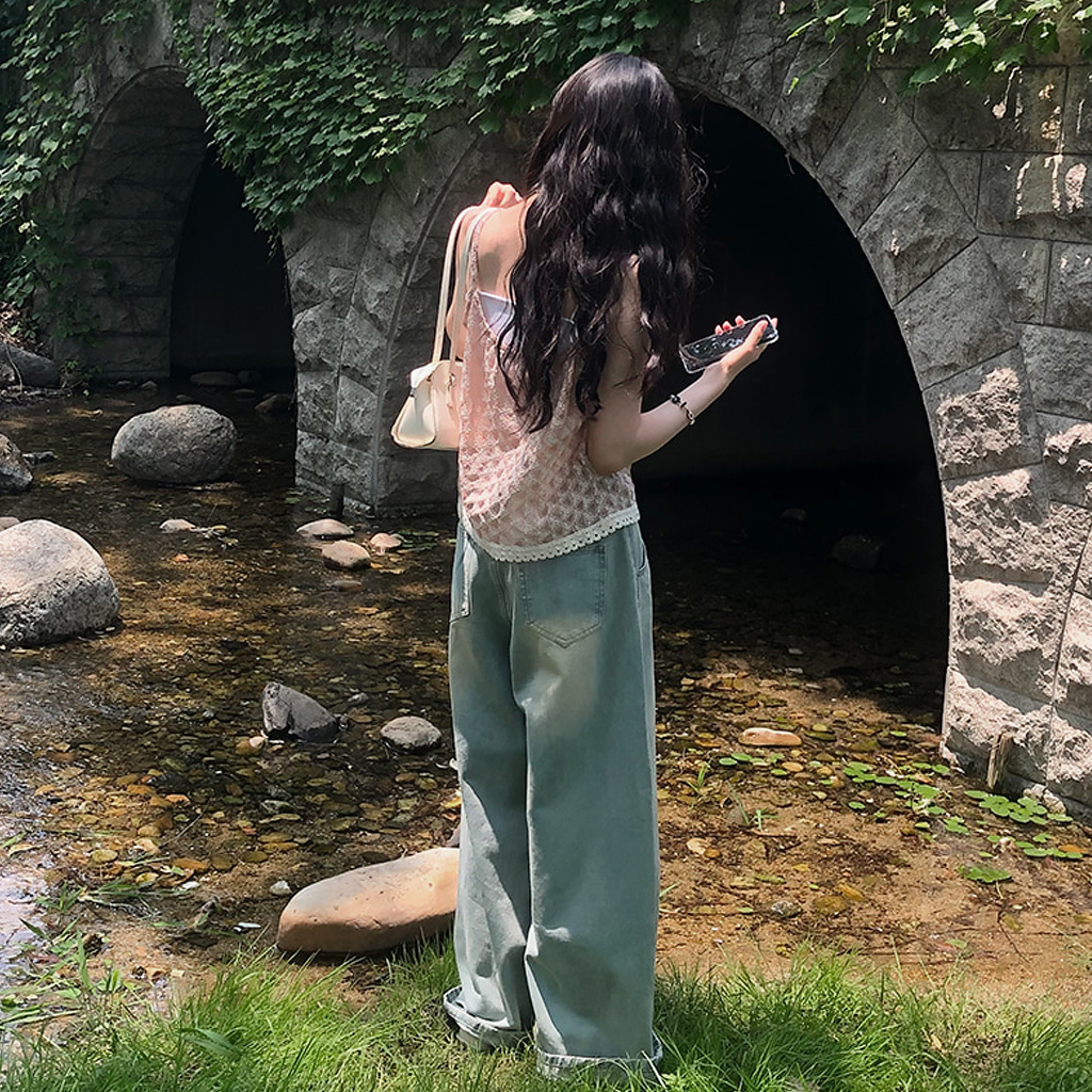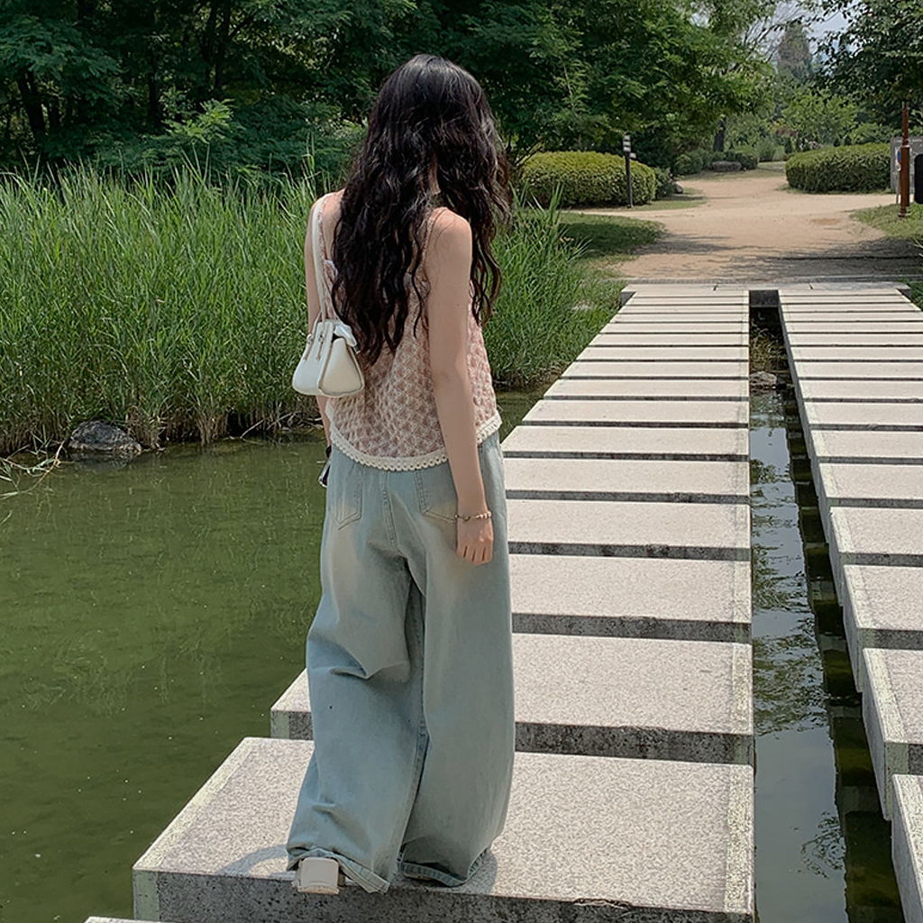 [original] ライトブルーワイドストレートロングデニムパンツ