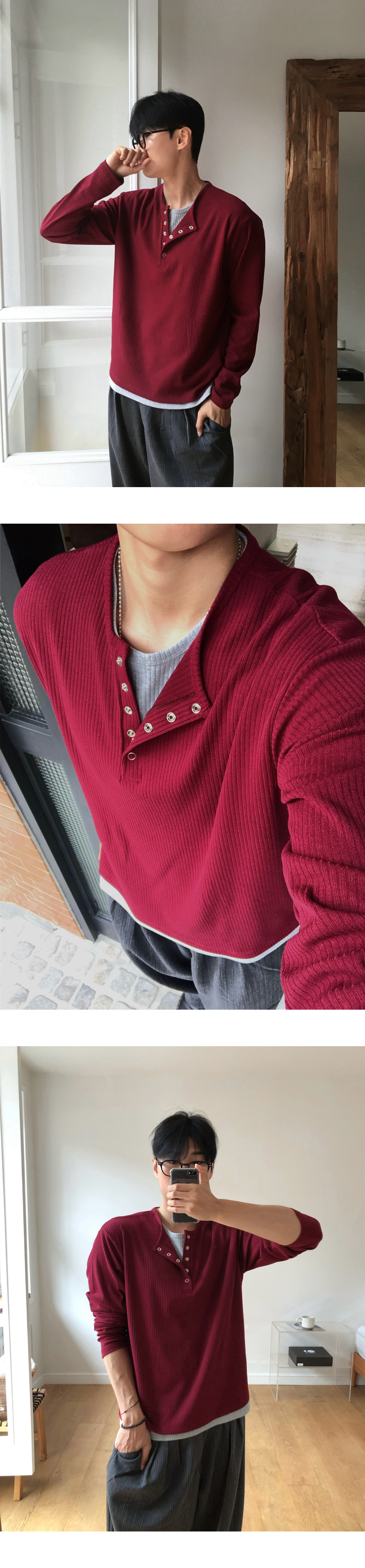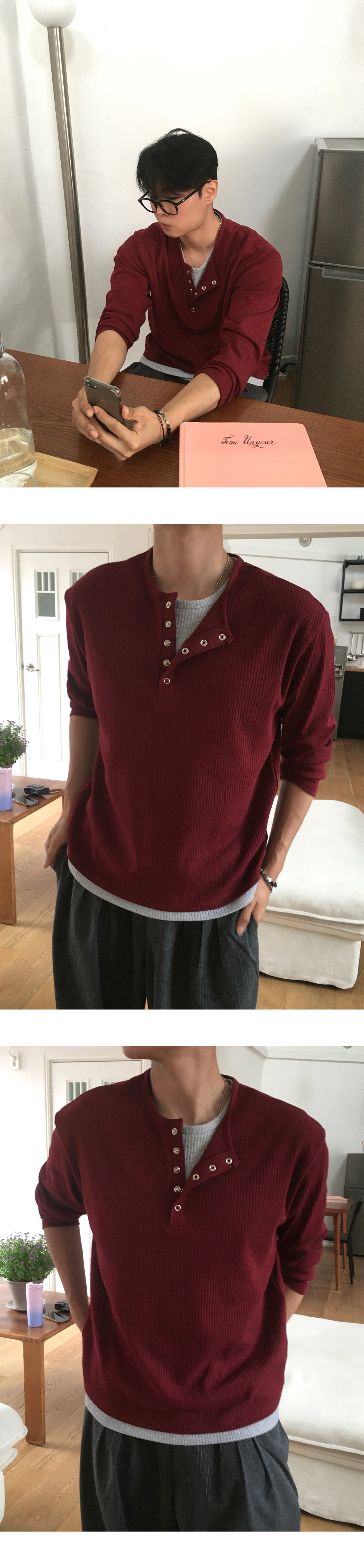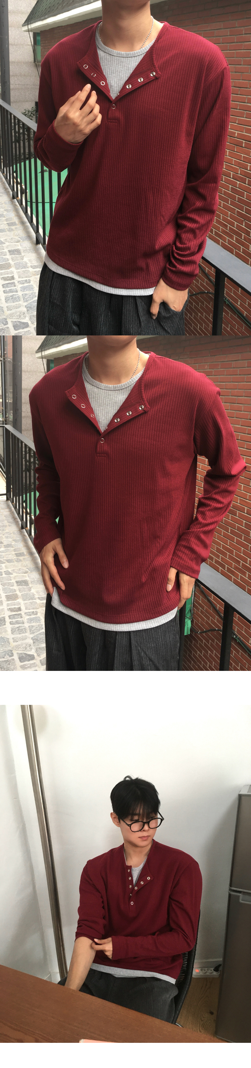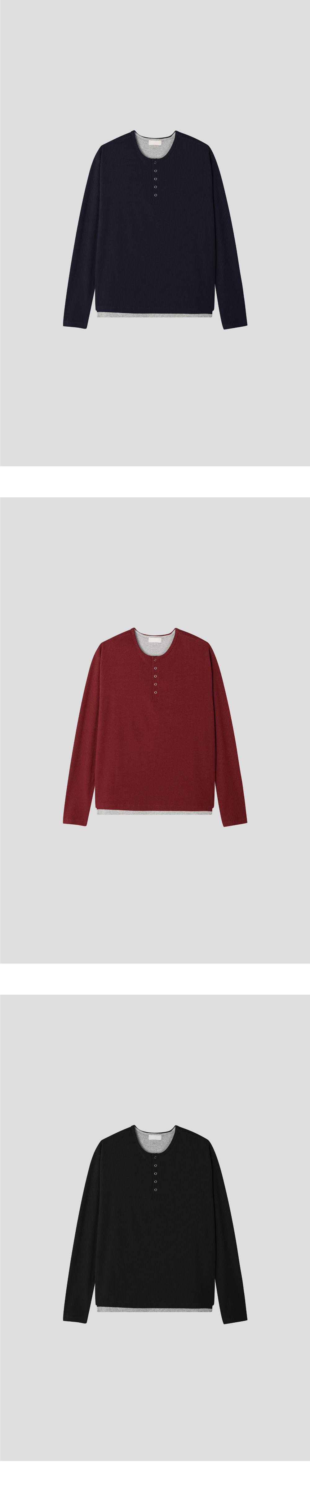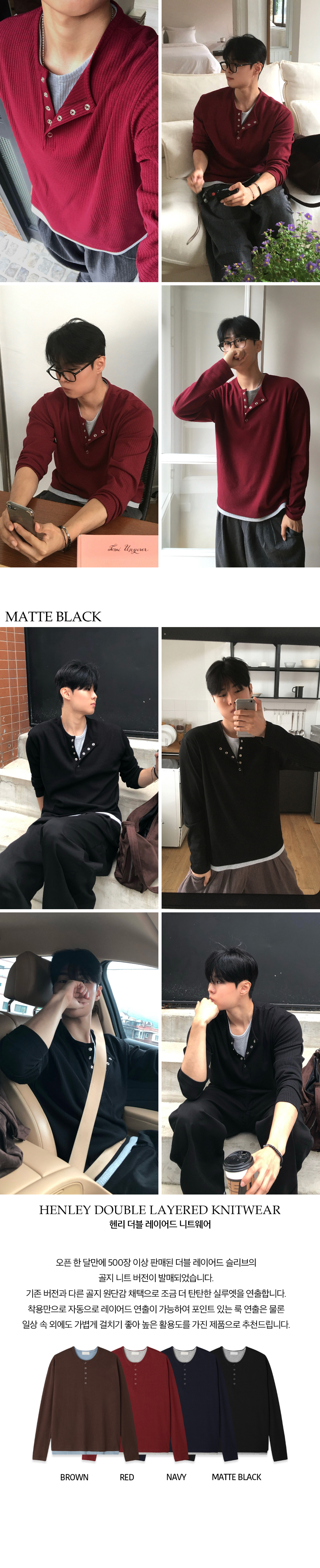 (4 color) ヘンリーネック レイヤード ニット
