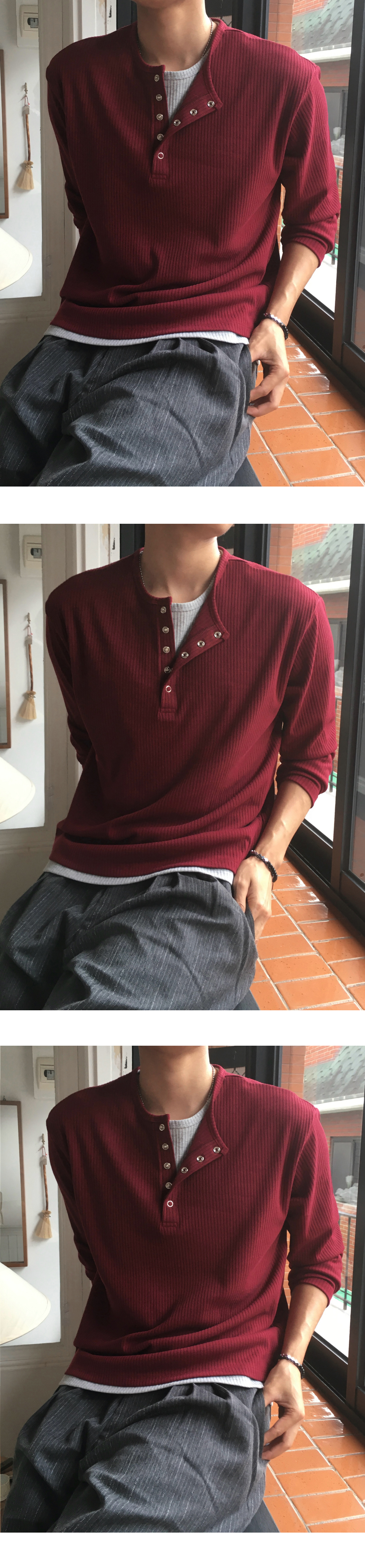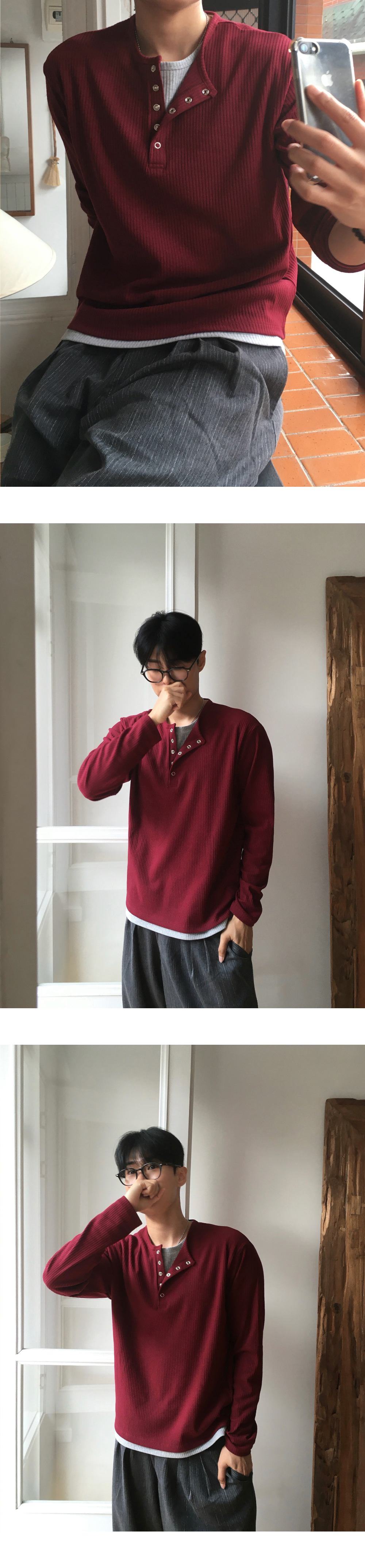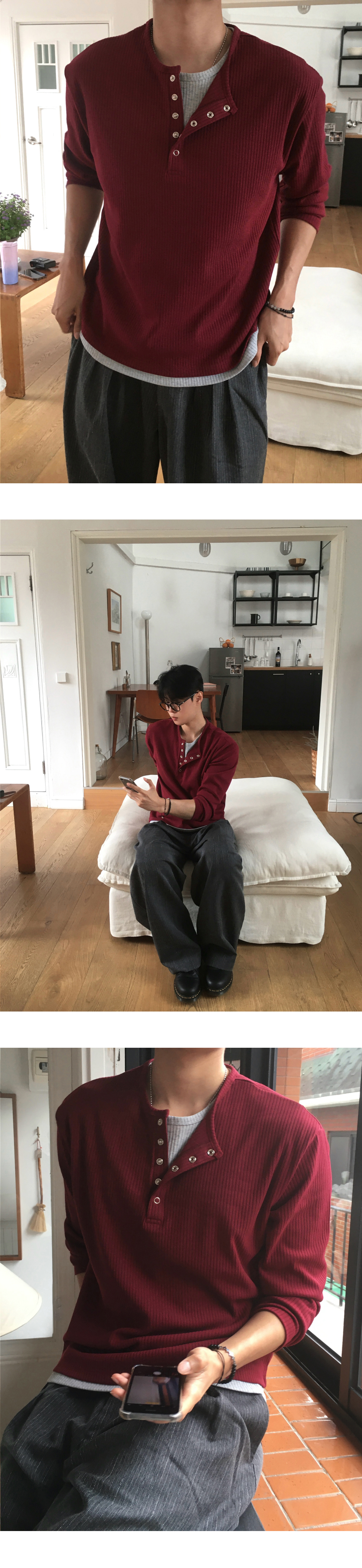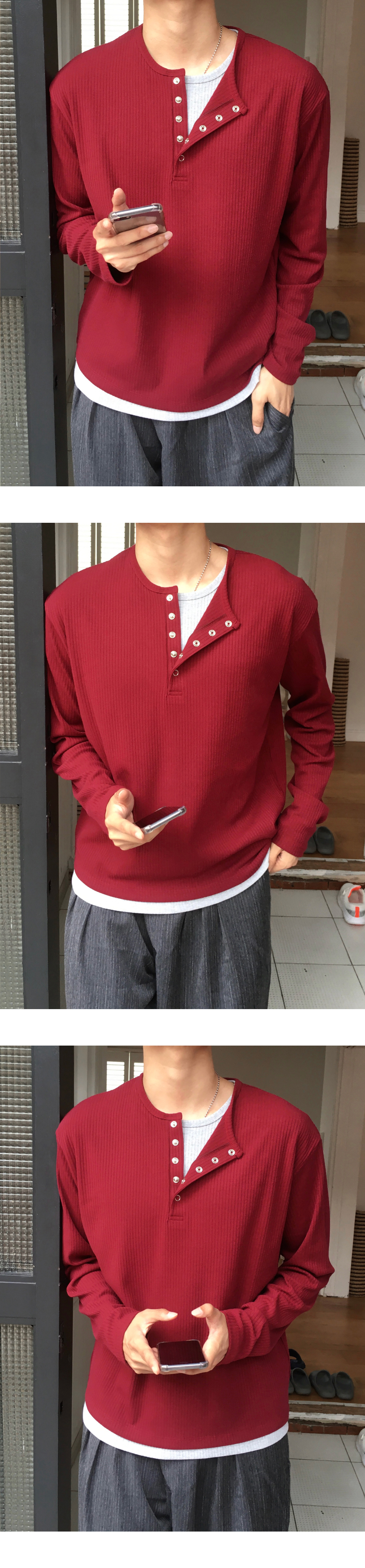 (4 color) ヘンリーネック レイヤード ニット
