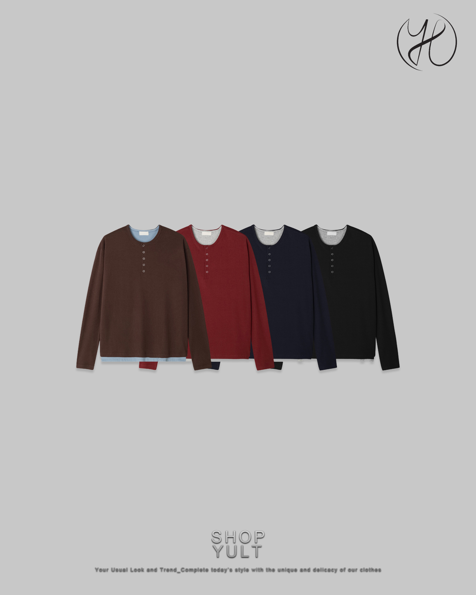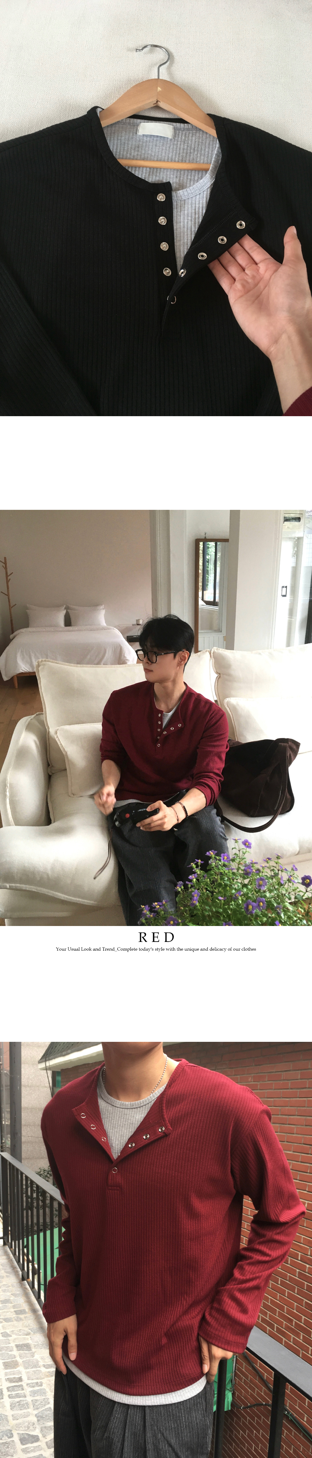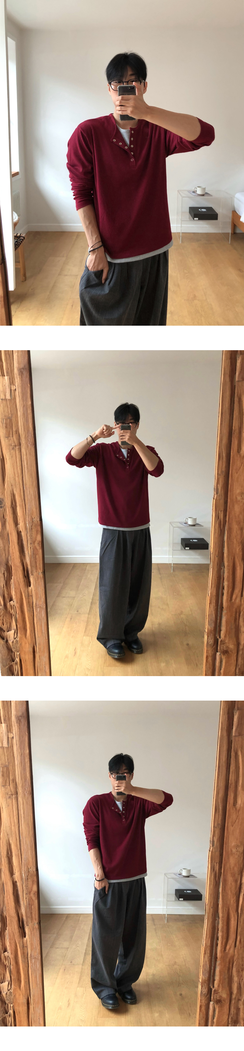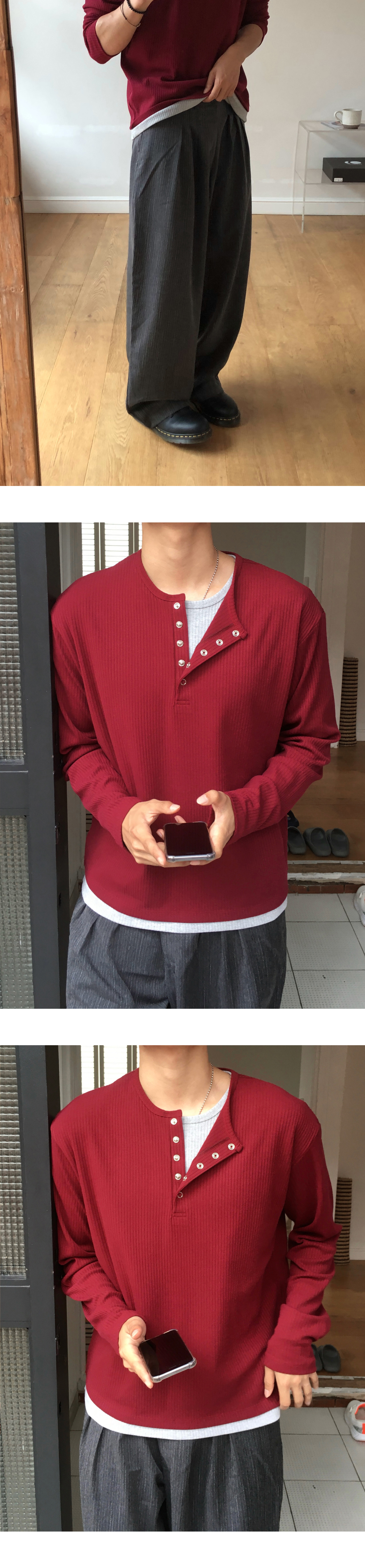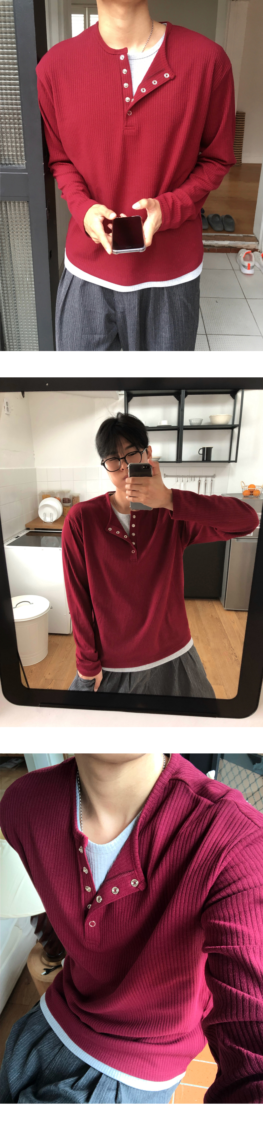 (4 color) ヘンリーネック レイヤード ニット