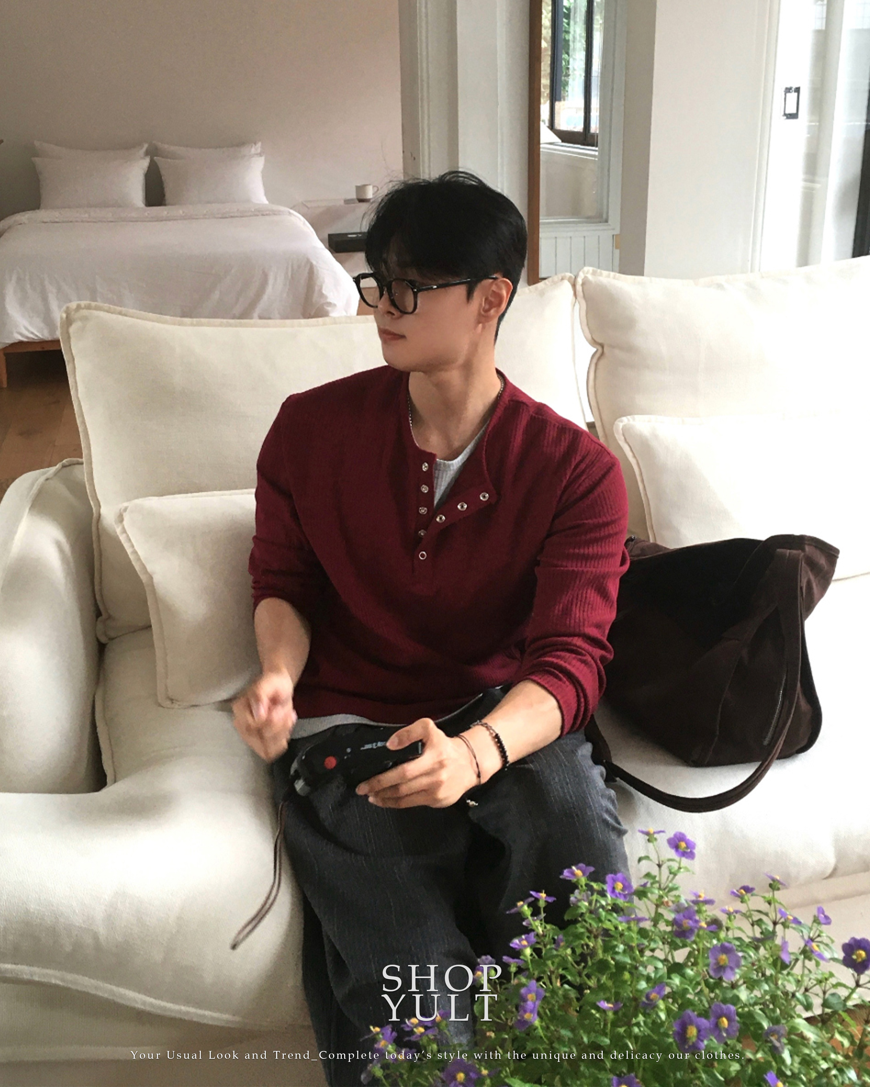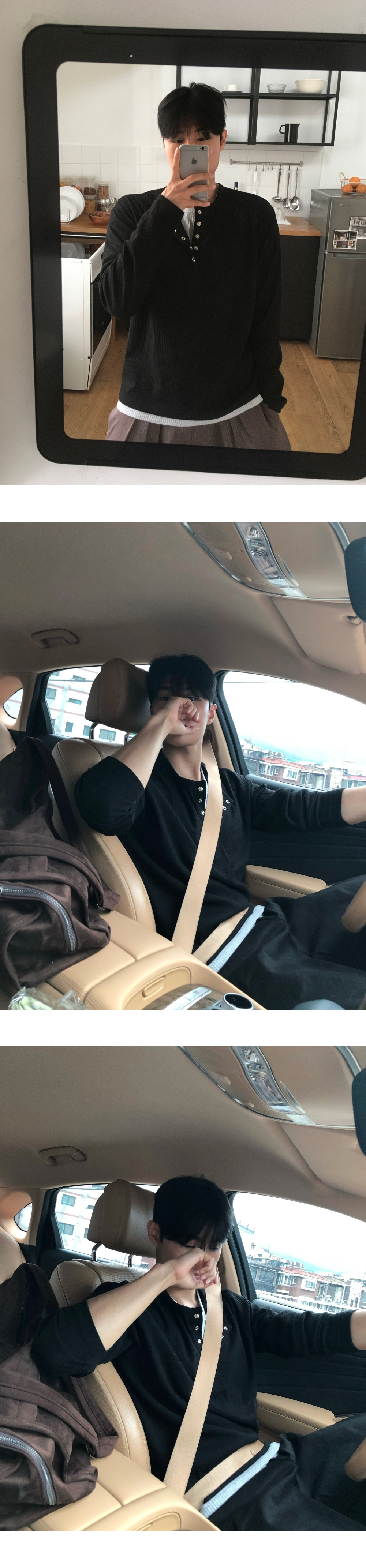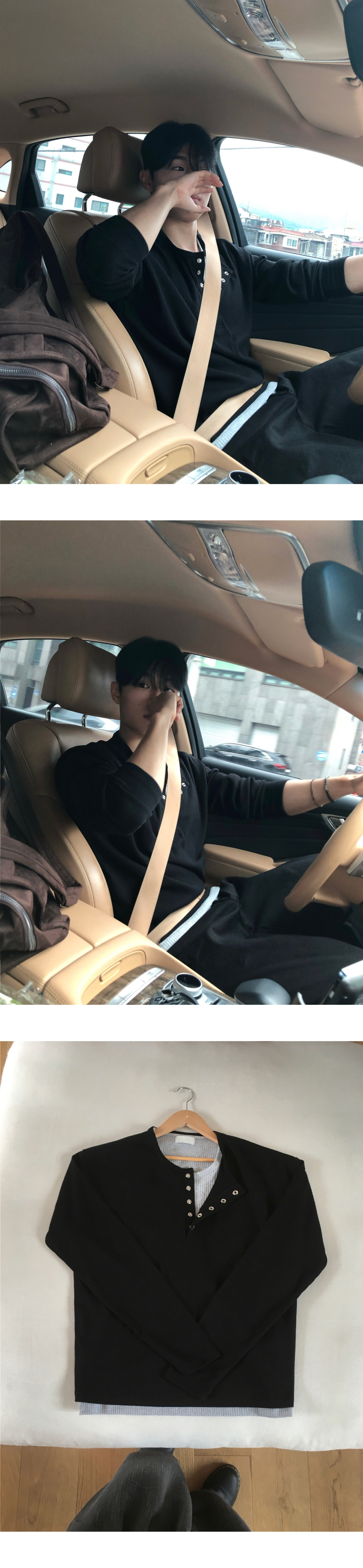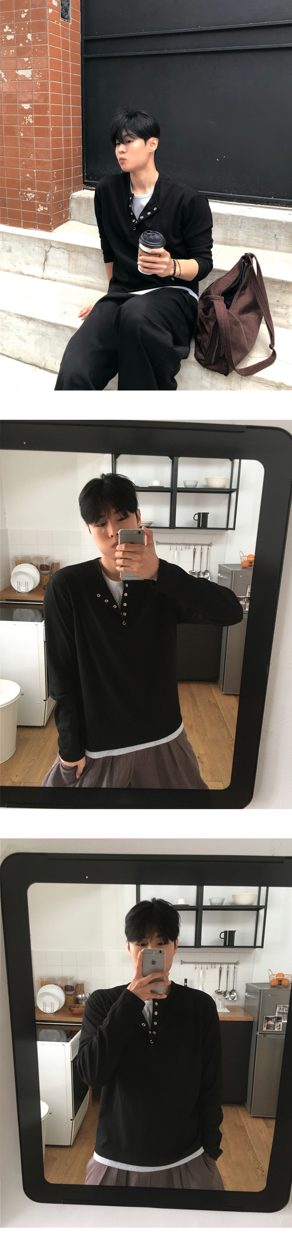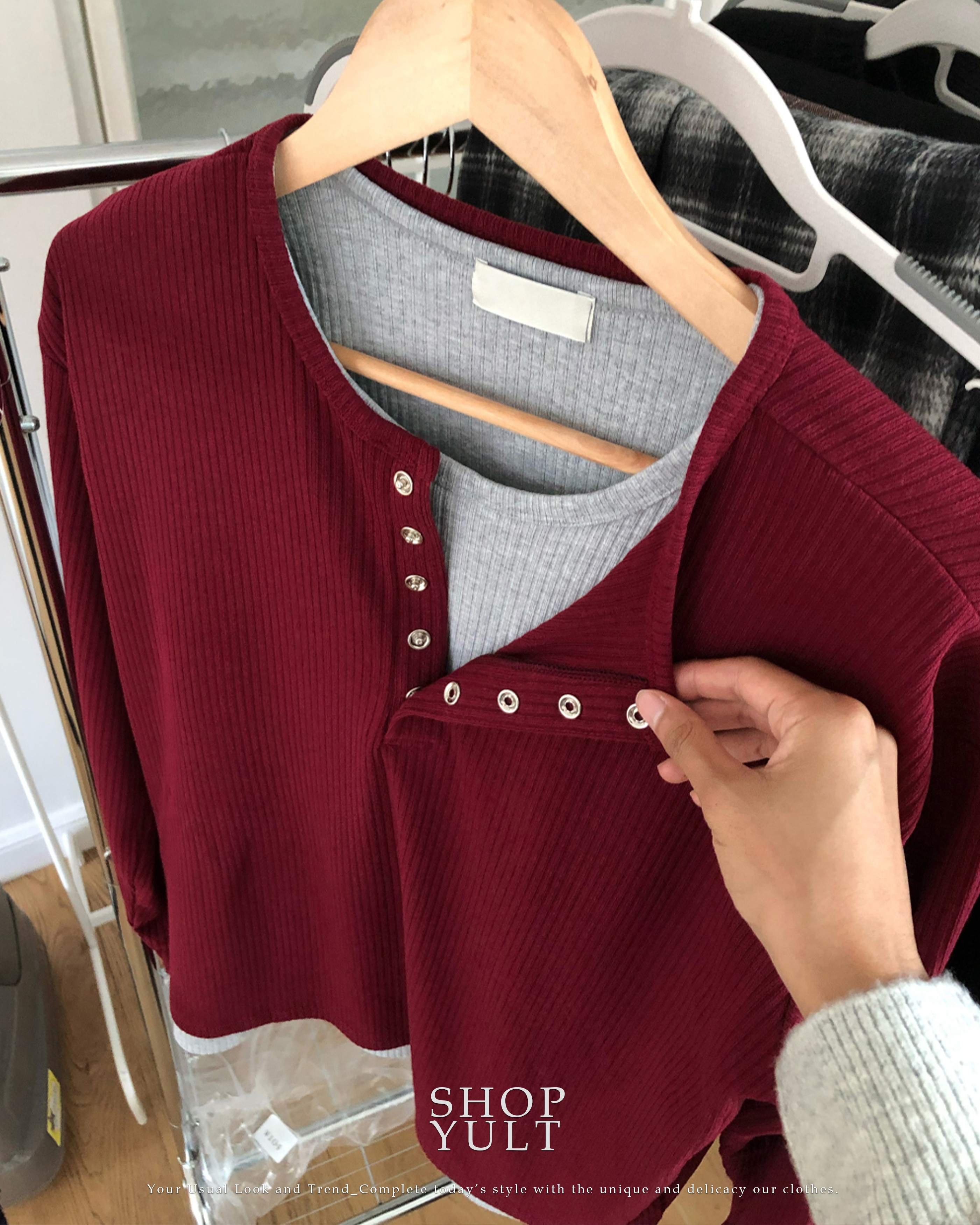(4 color) ヘンリーネック レイヤード ニット