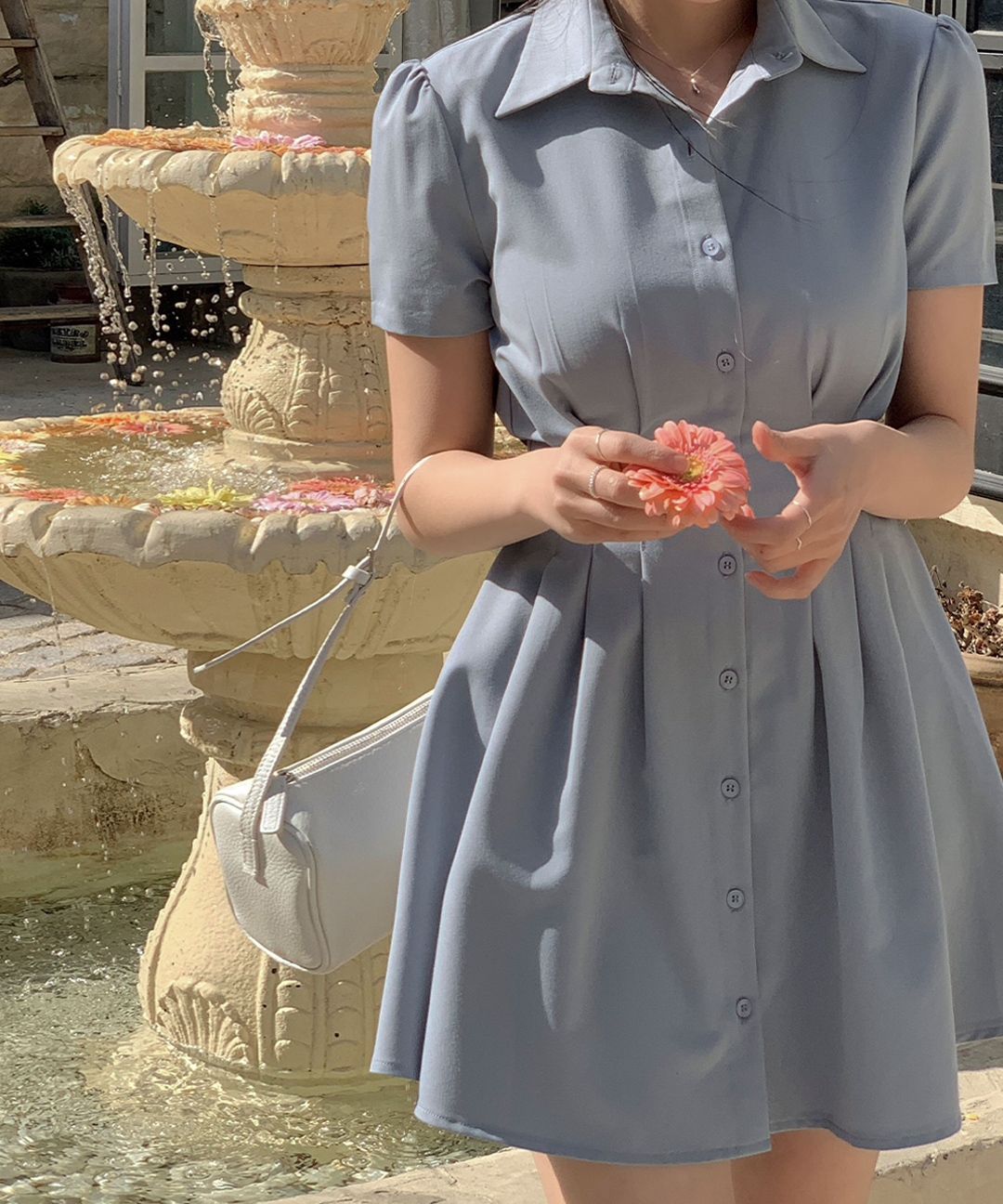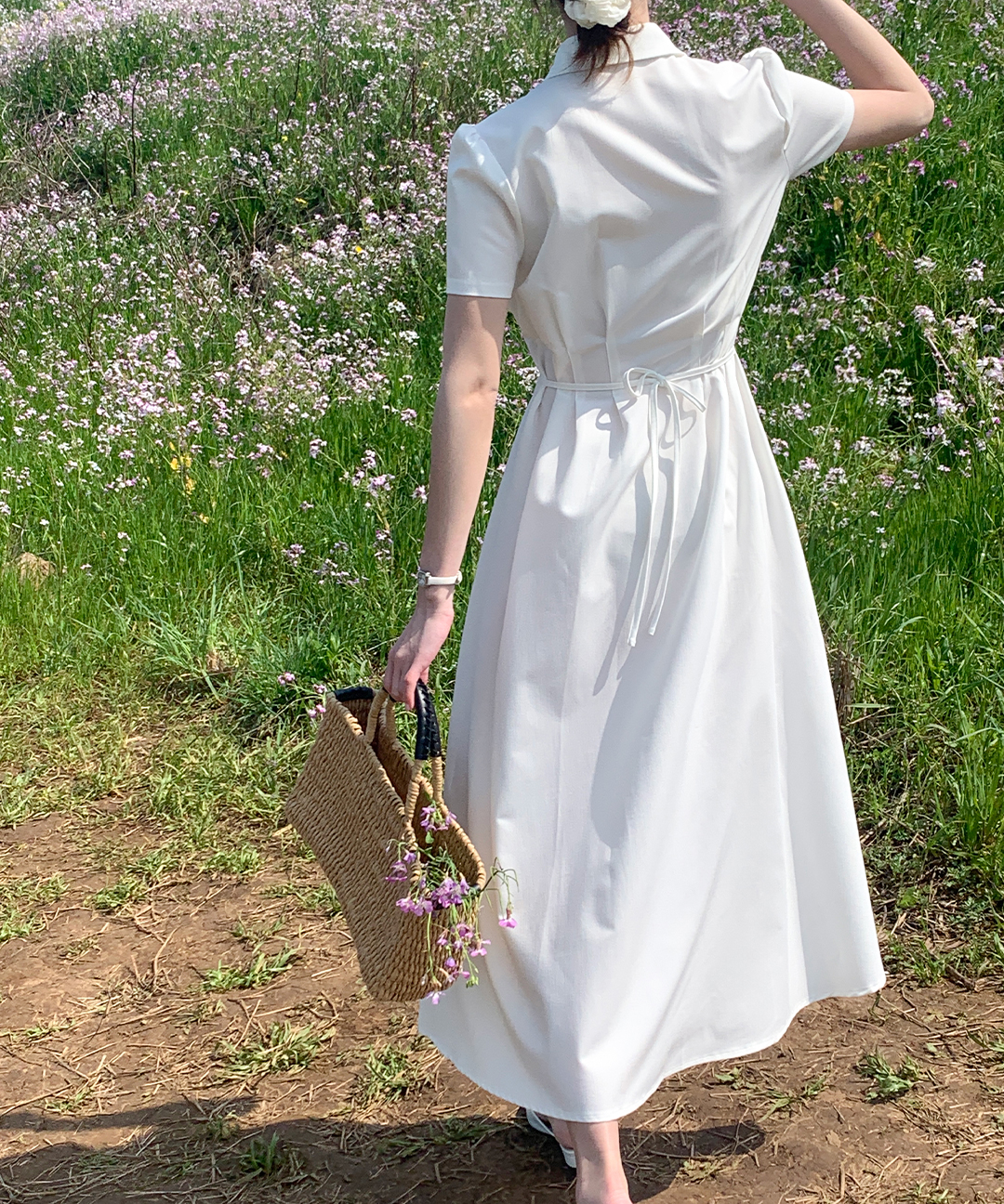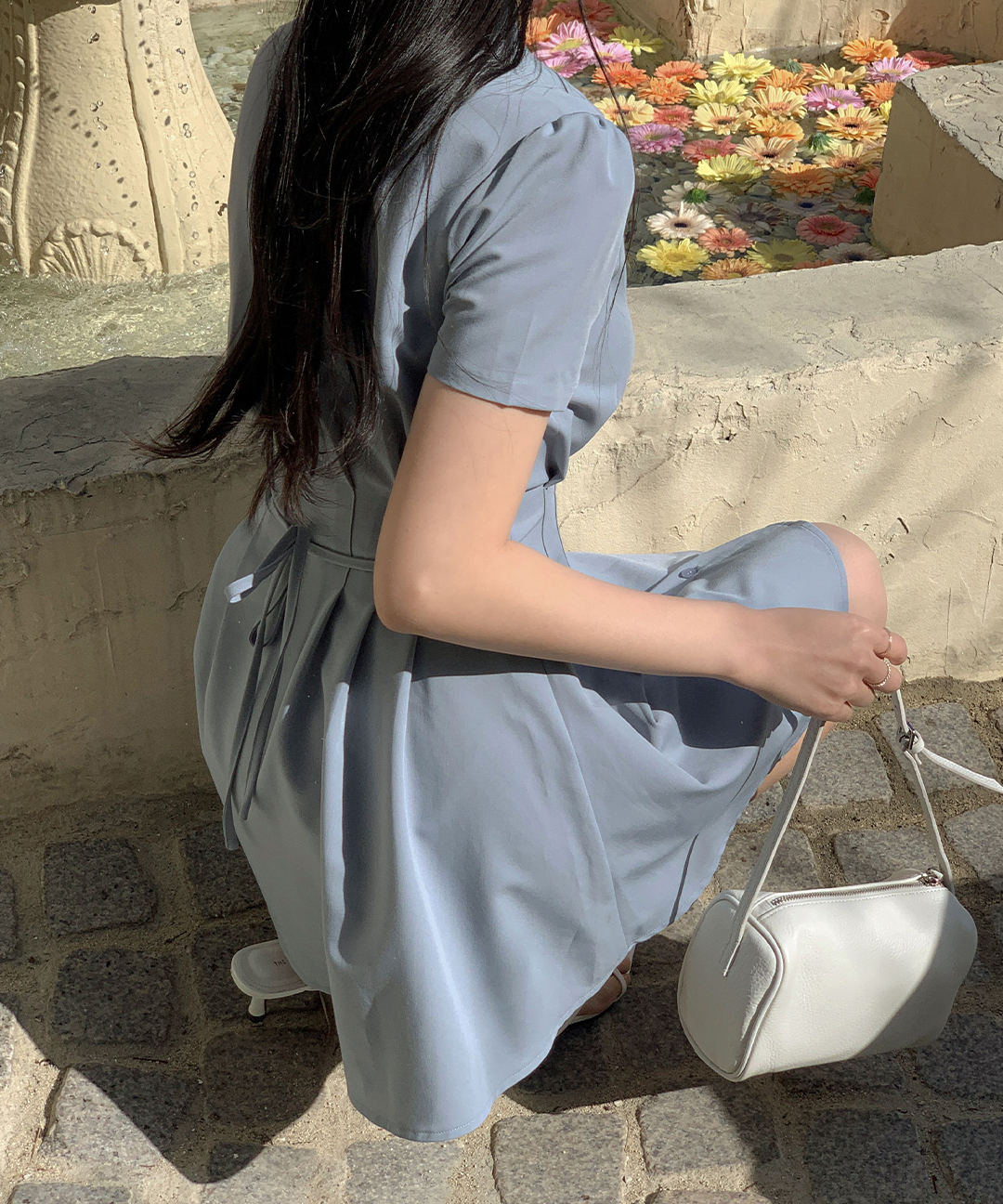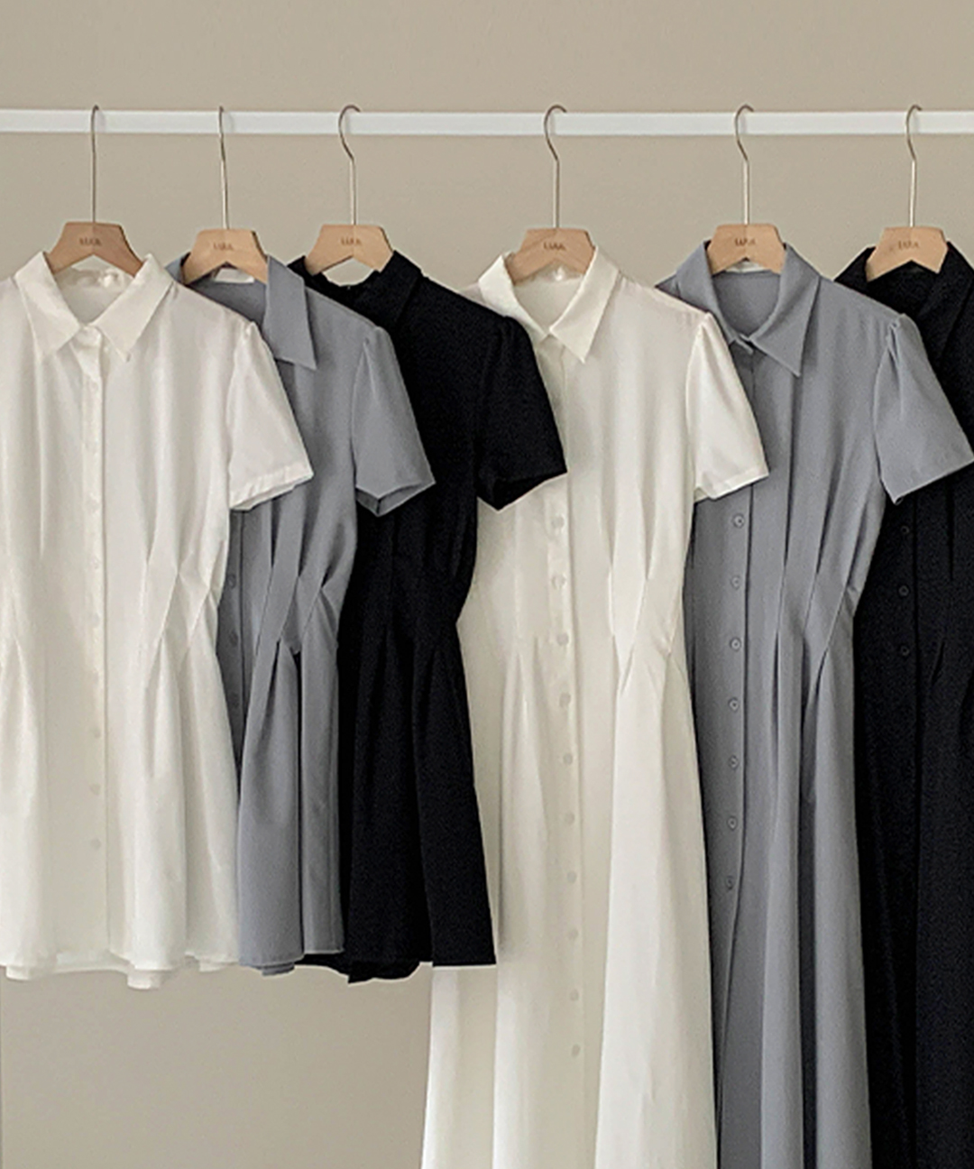 【オケージョン】[original/S-XL]タック入りストラップシャツワンピース