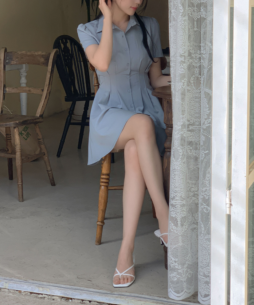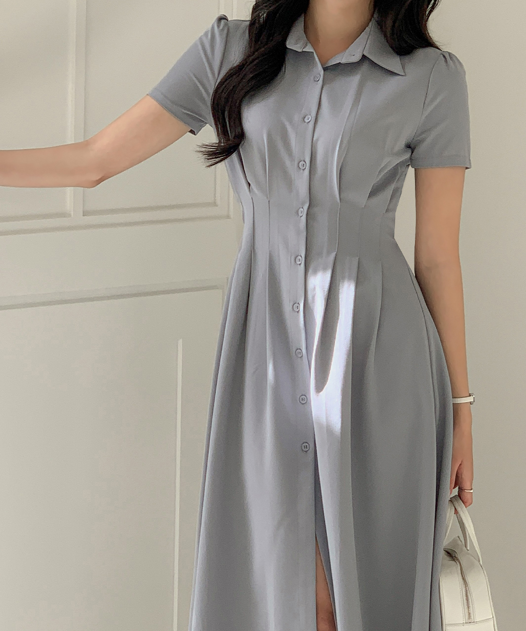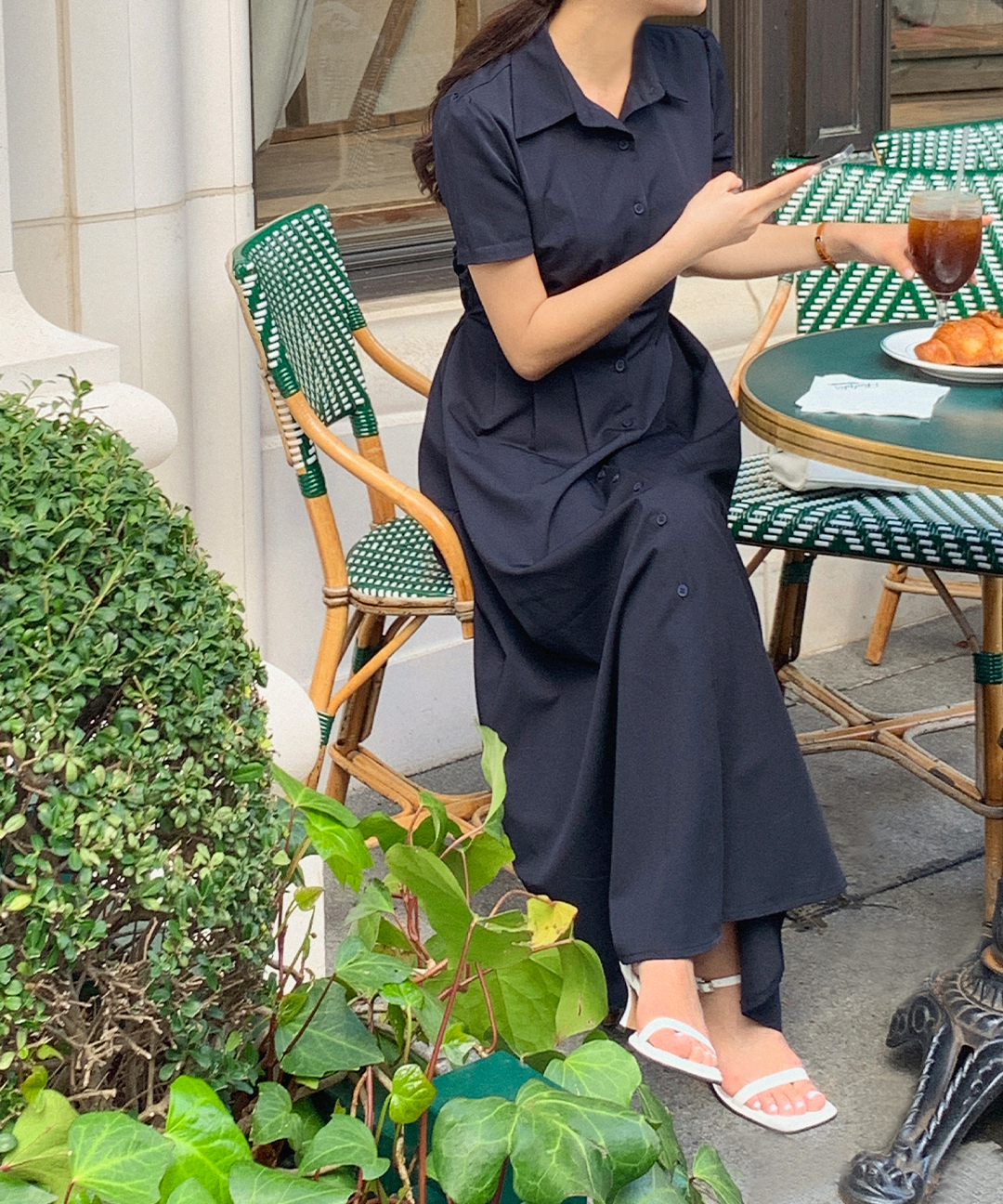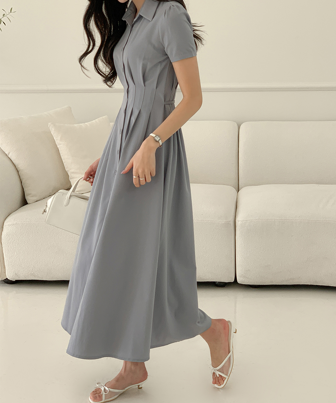 【オケージョン】[original/S-XL]タック入りストラップシャツワンピース