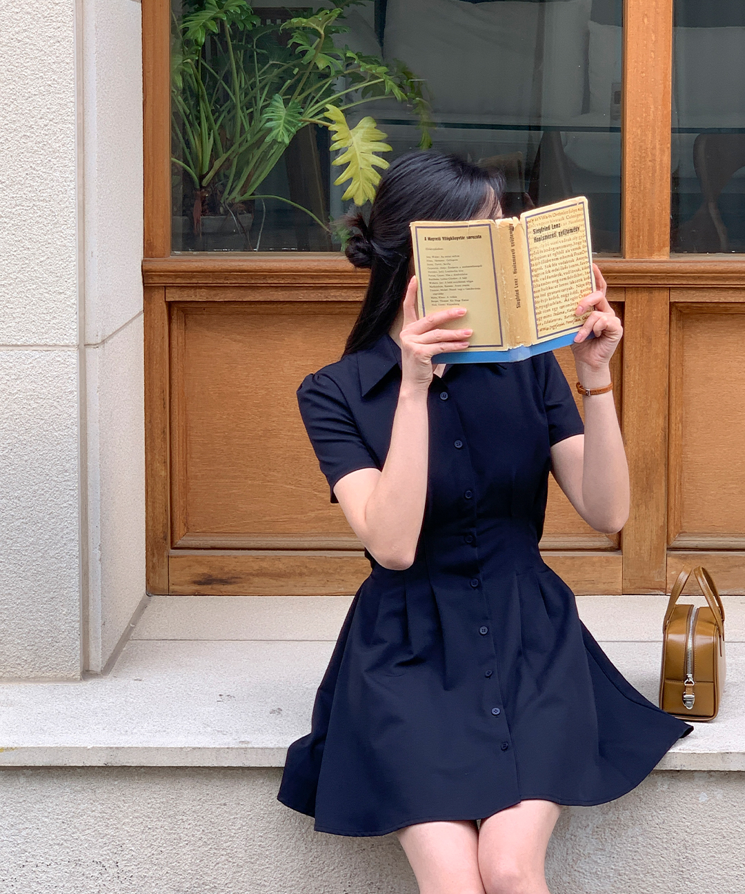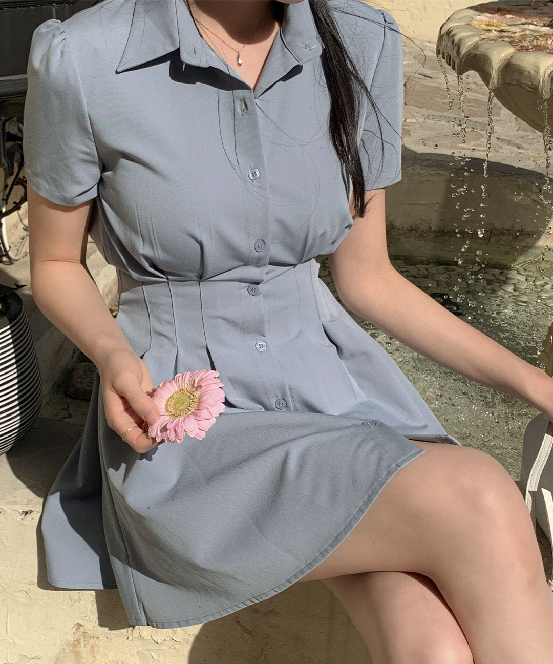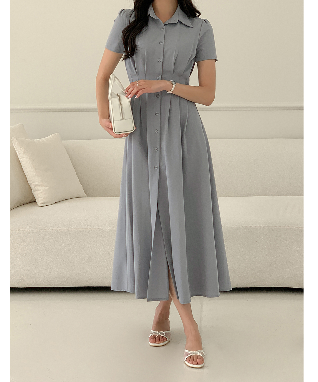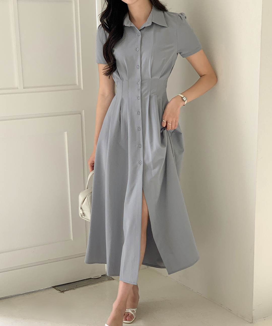 【オケージョン】[original/S-XL]タック入りストラップシャツワンピース