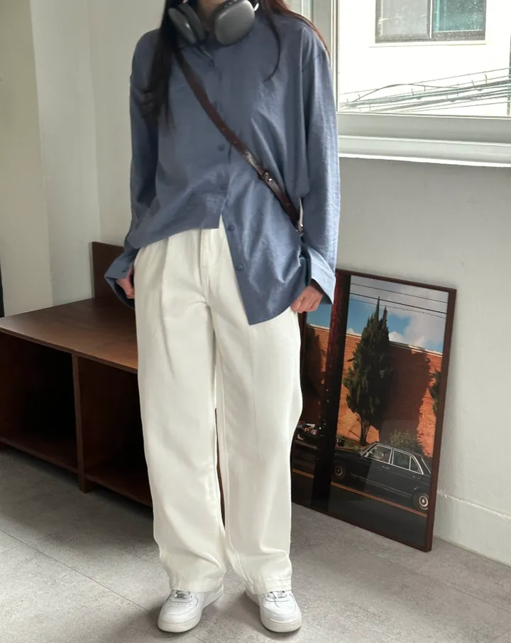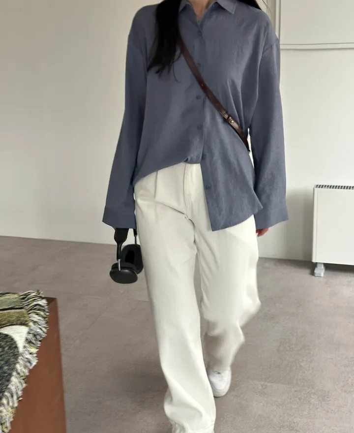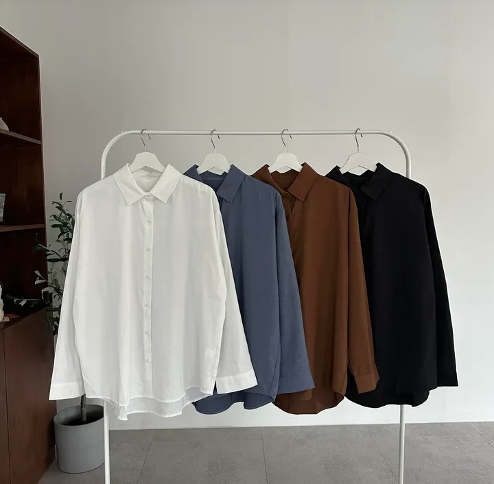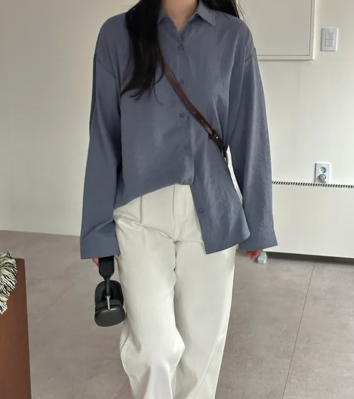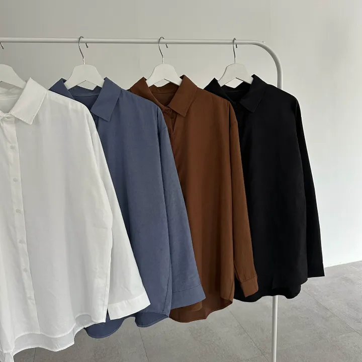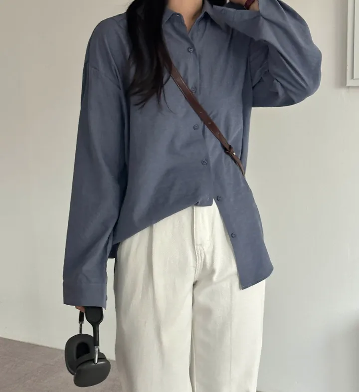 ウォッシュルーズフィットカラー長袖シャツ[4color]