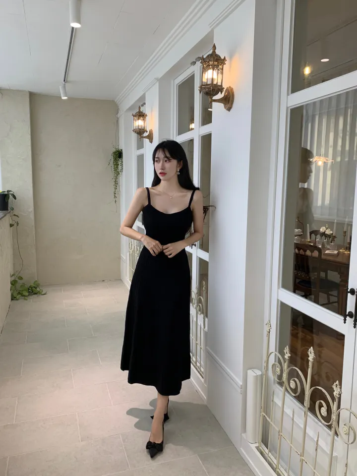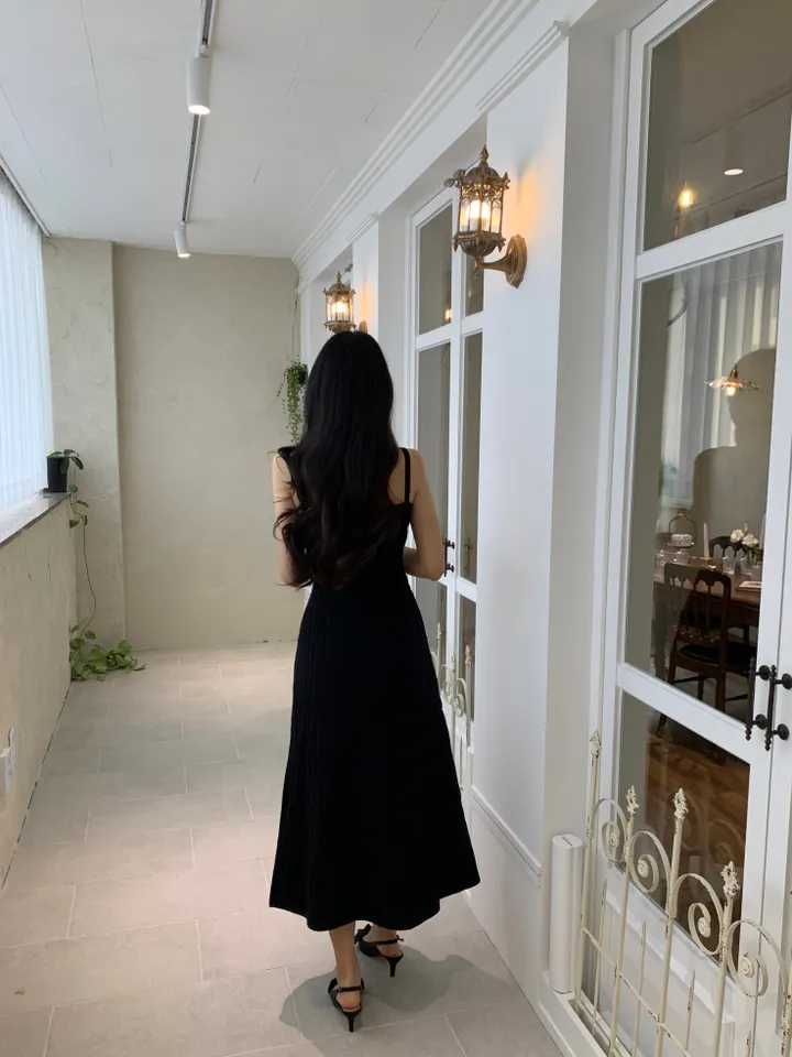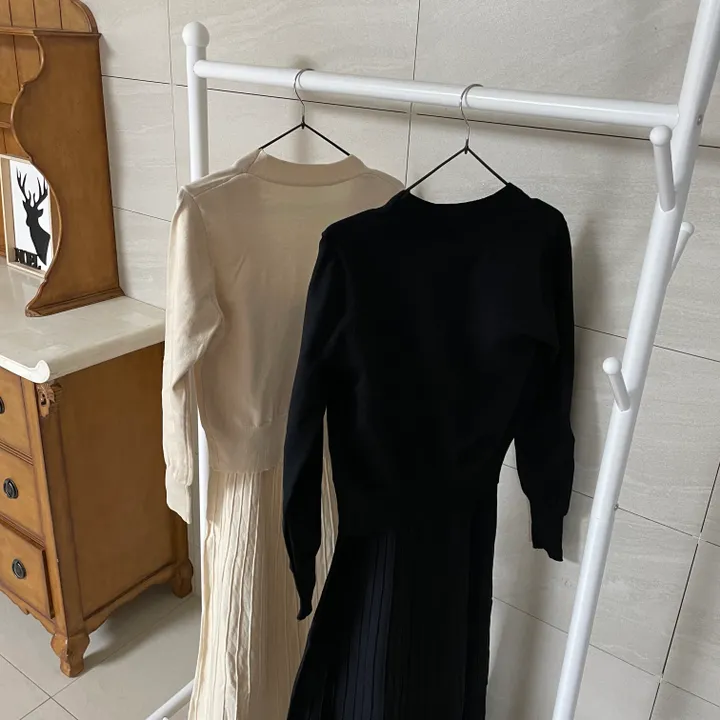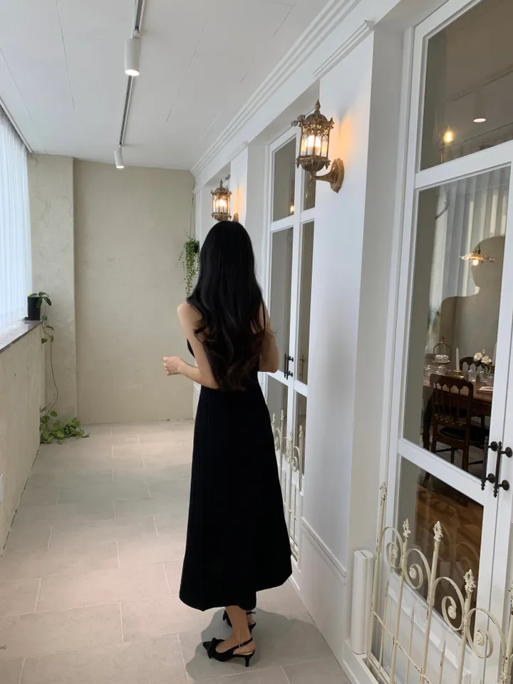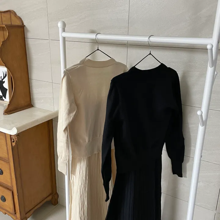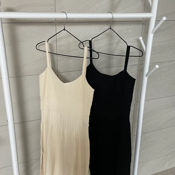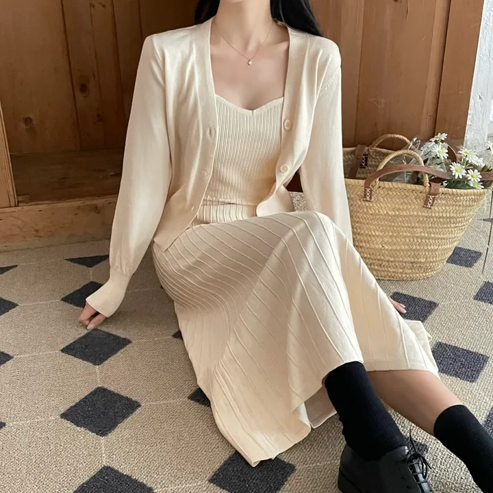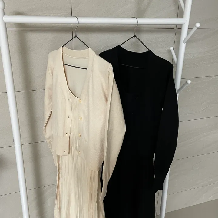 [SET] カーディガン+ノースリーブプリーツロングワンピースセットアップ